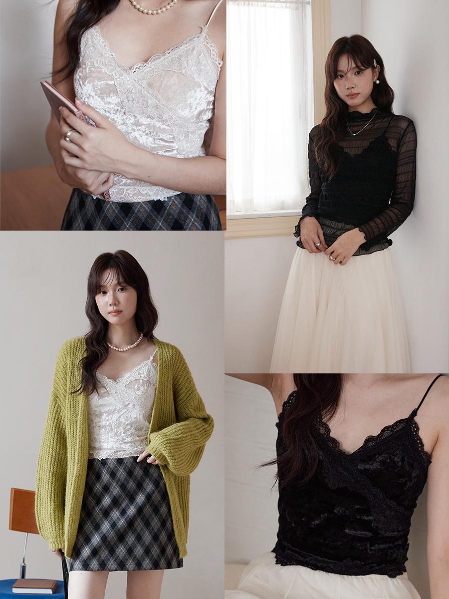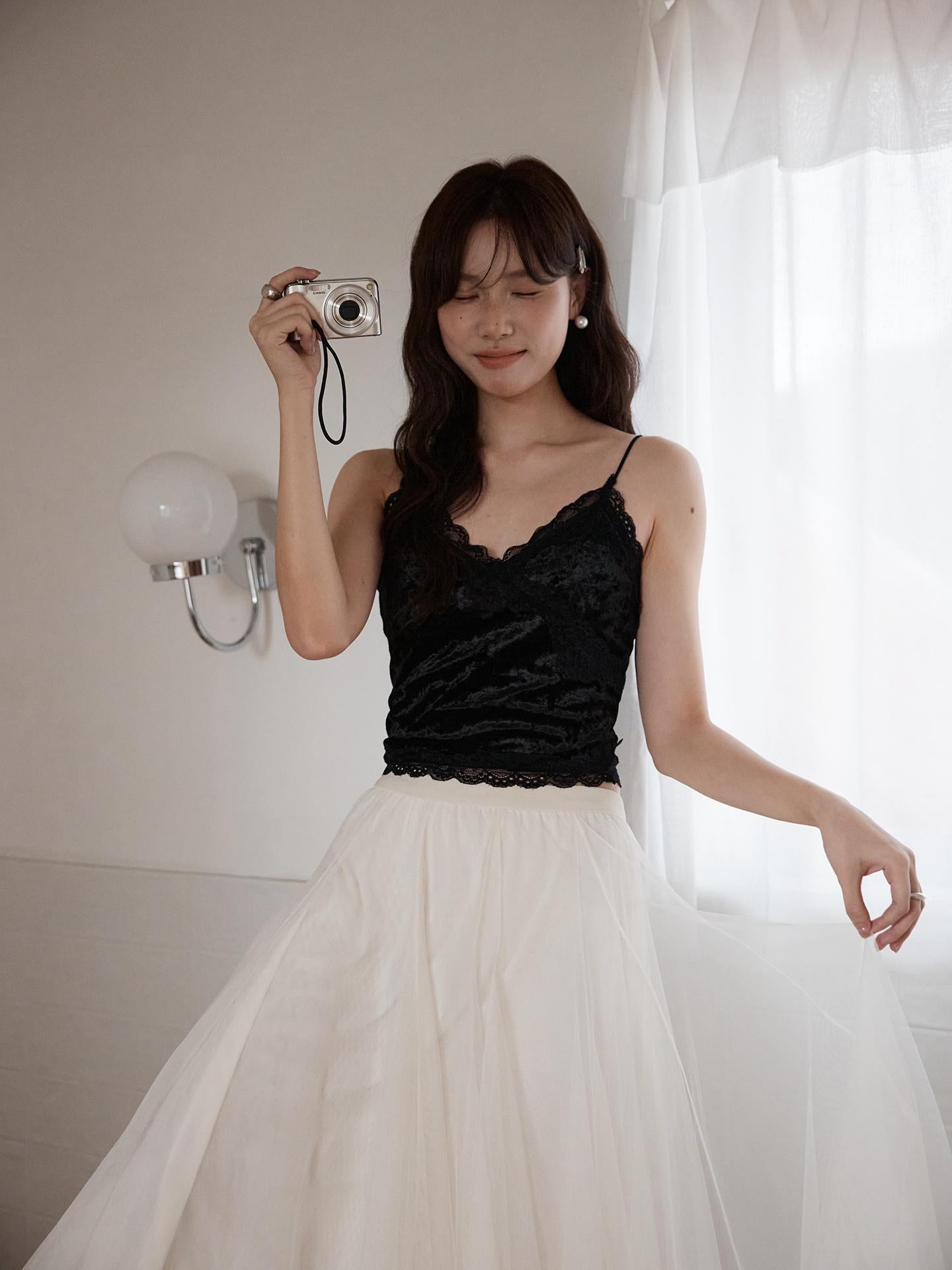 3. 【C7281】秋上新!法式復古絲絨吊帶女背心(帶胸墊)