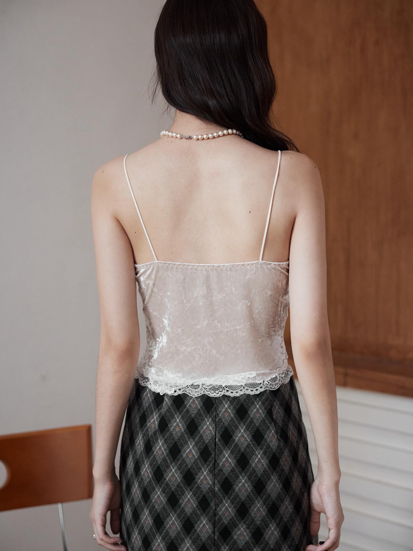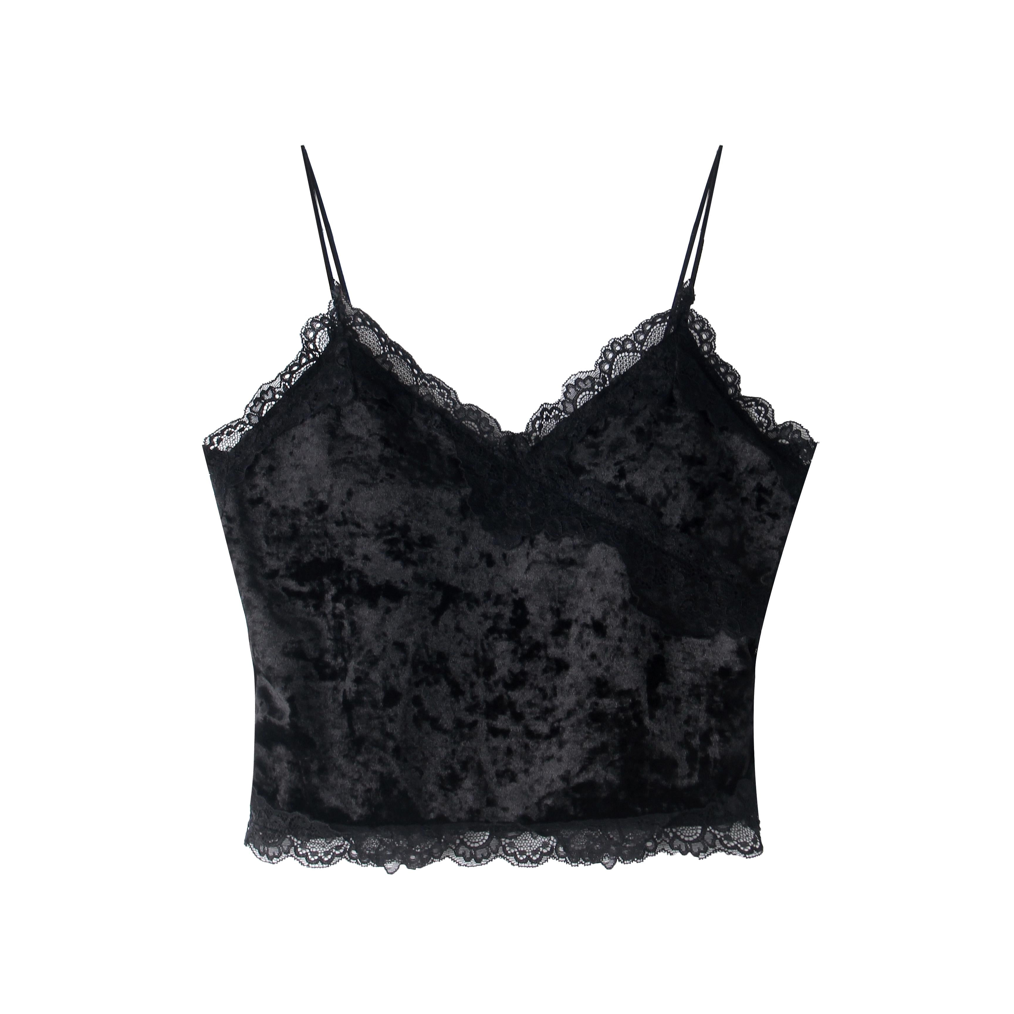 【C7281】秋上新!法式復古絲絨吊帶女背心(帶胸墊)