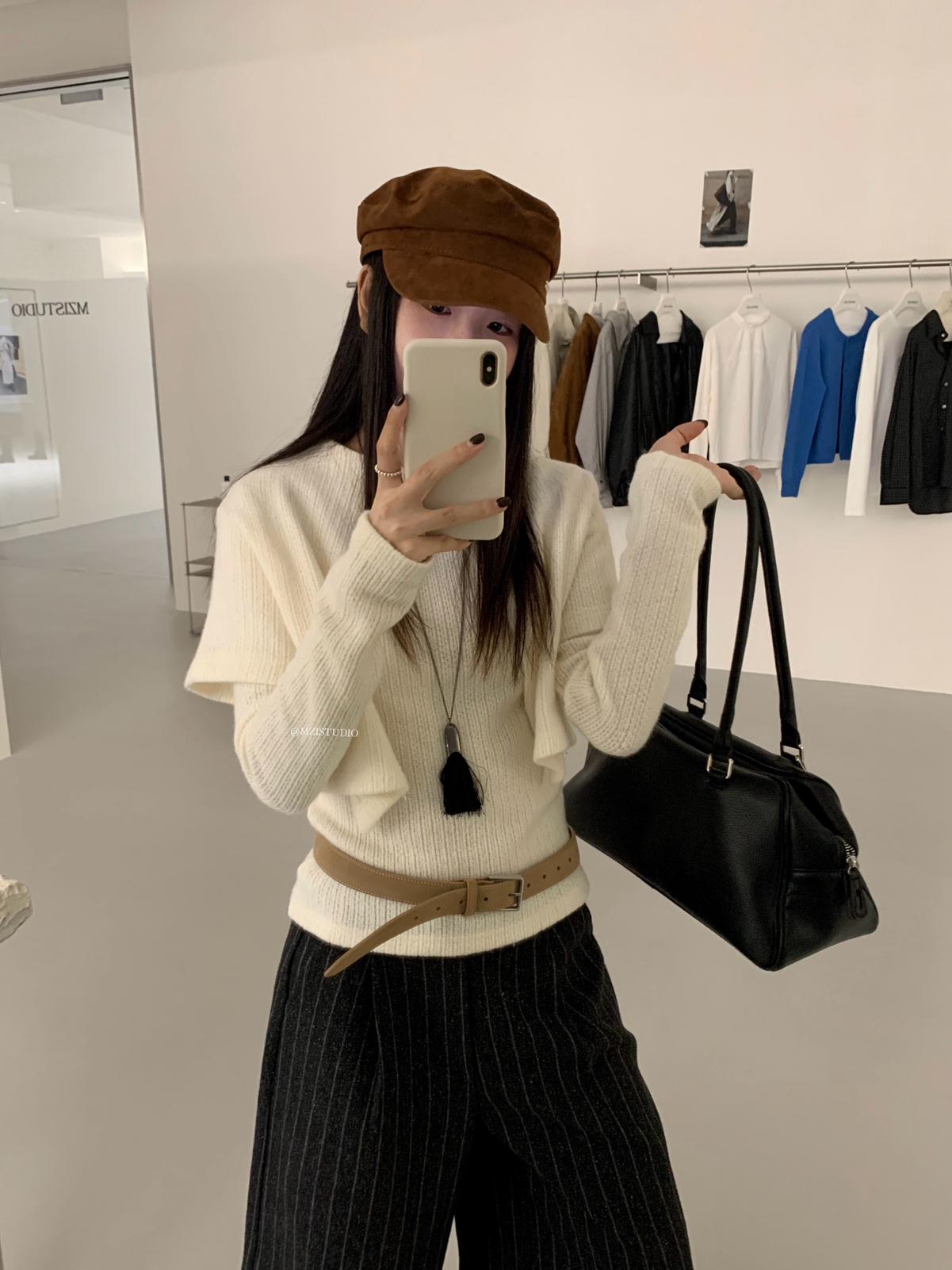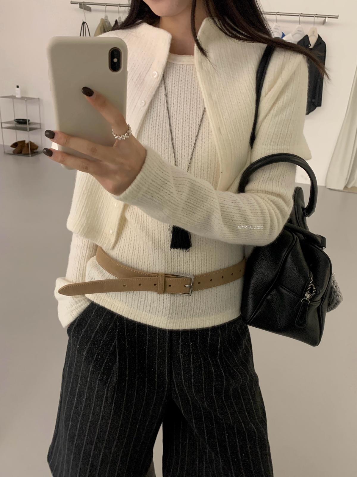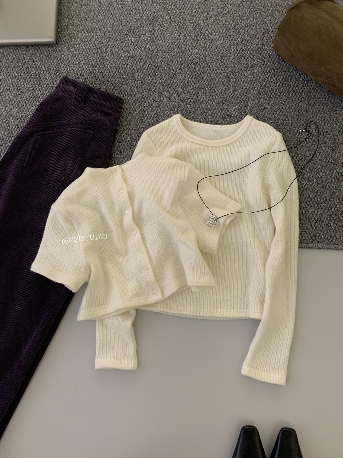 3. 【C7287】高智清冷感羊毛高級質感針織開衫+修身簡約長袖針織衫套裝(含5%羊毛)