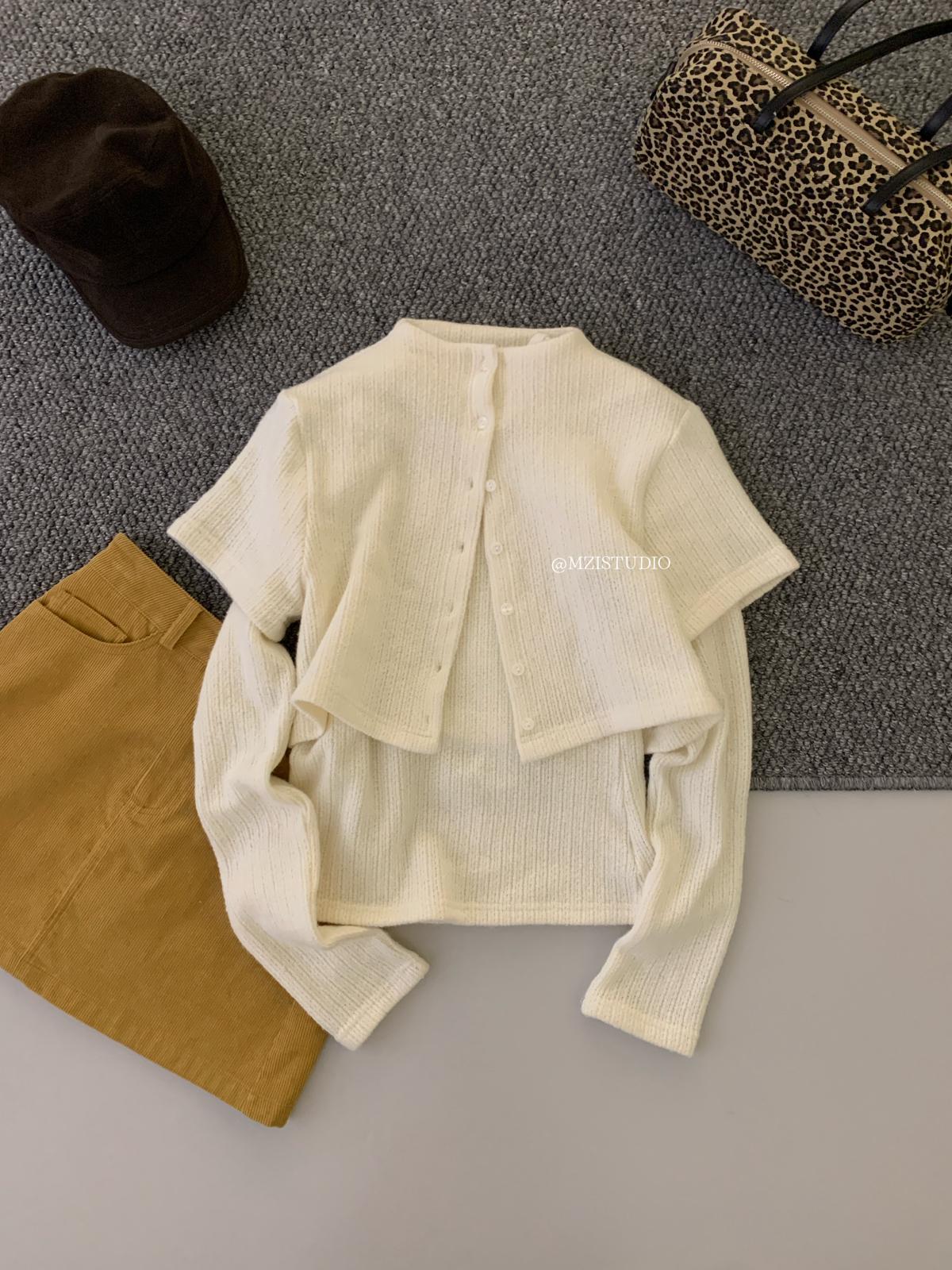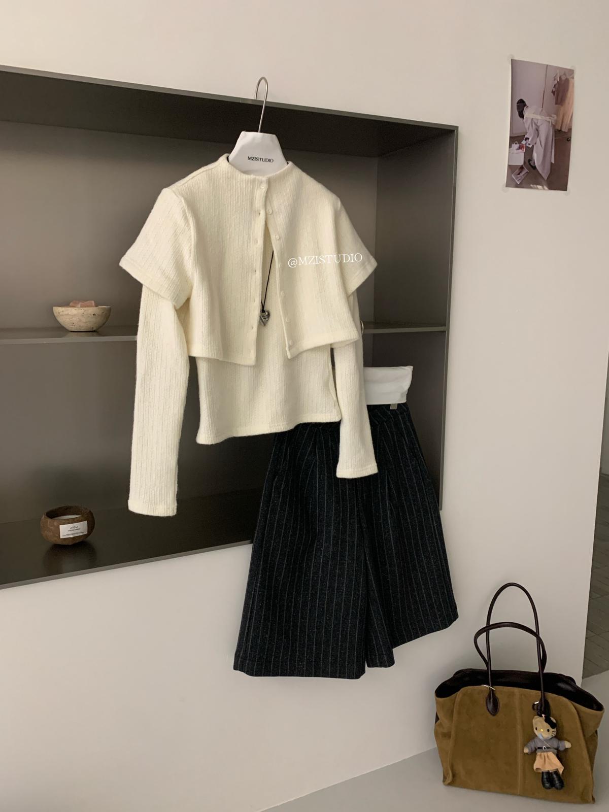 【C7287】高智清冷感羊毛高級質感針織開衫+修身簡約長袖針織衫套裝(含5%羊毛)