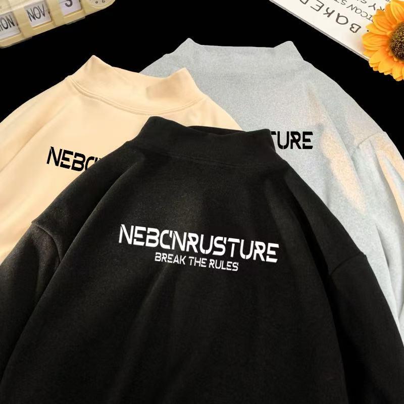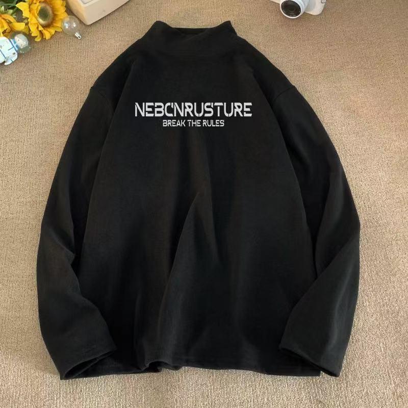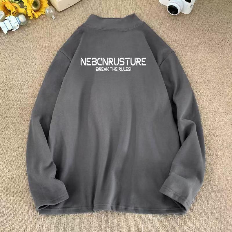 【YS2284】美式半高領寬鬆休閒長袖T恤