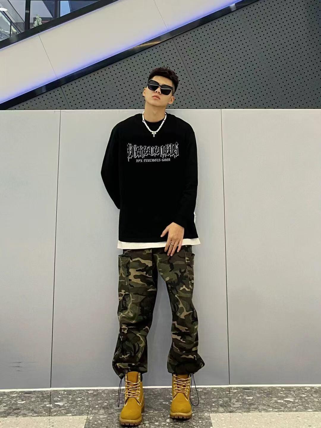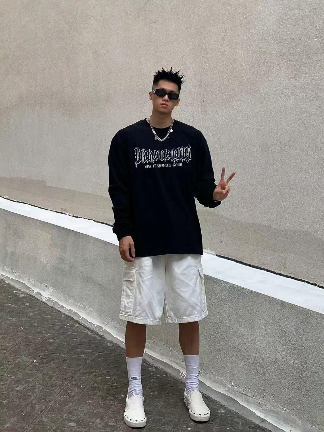 【YS2288】美式時尚潮流簡約寬鬆休閒百搭螺紋長袖T恤