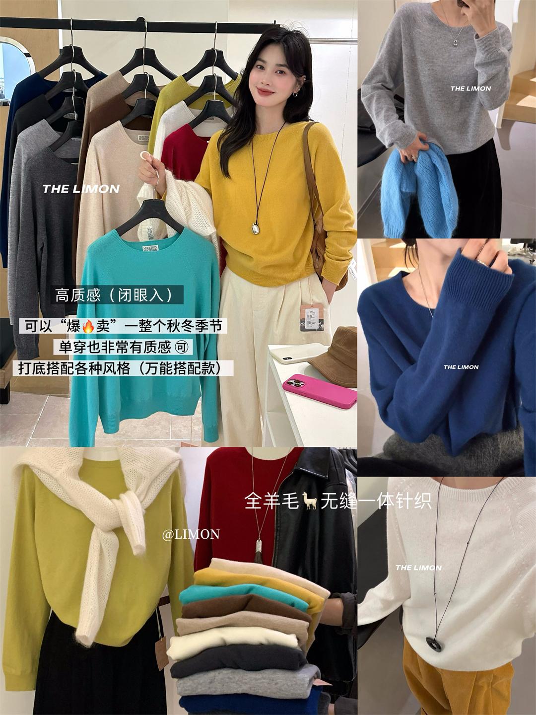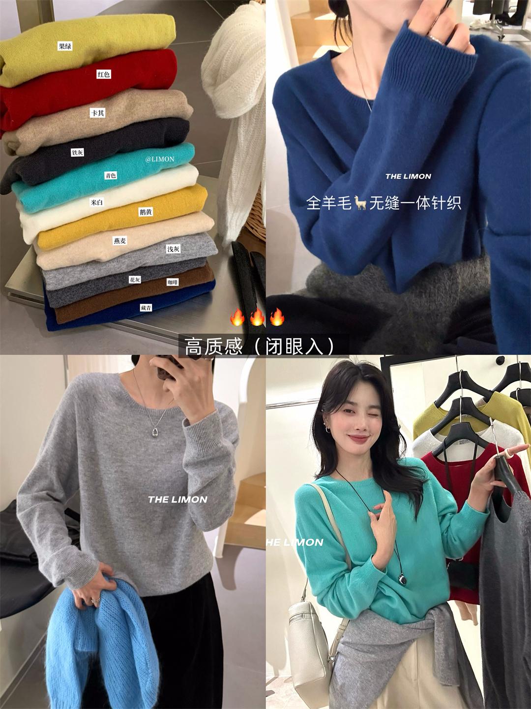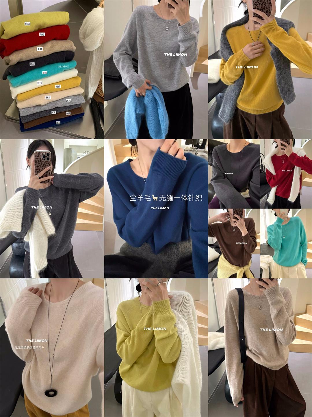 【C7306】圓領單穿打底全羊毛無縫一體百搭保暖毛衣(含100%羊毛)