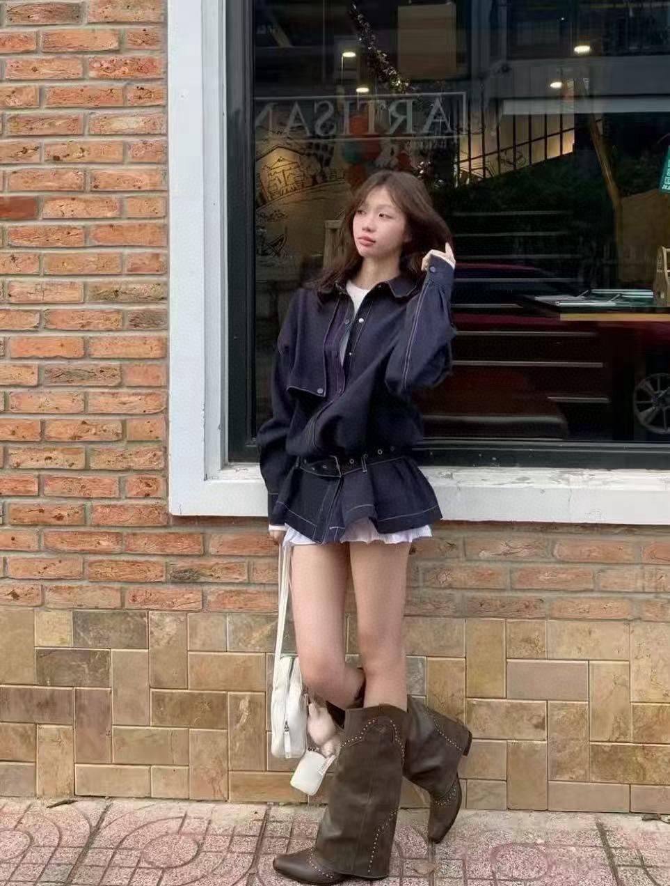 3. 【C7324】腰帶廓形美式復古寬鬆氣質短外套(配腰帶)