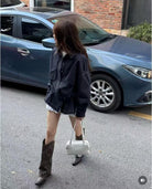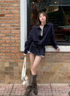 【C7324】腰帶廓形美式復古寬鬆氣質短外套(配腰帶)