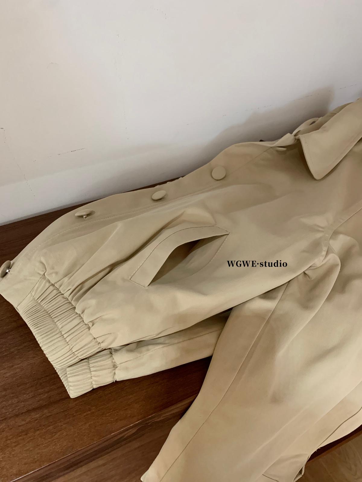 3. 【C7327】韓系減齡波邊設計短款風衣2025新款小衆工裝短外套