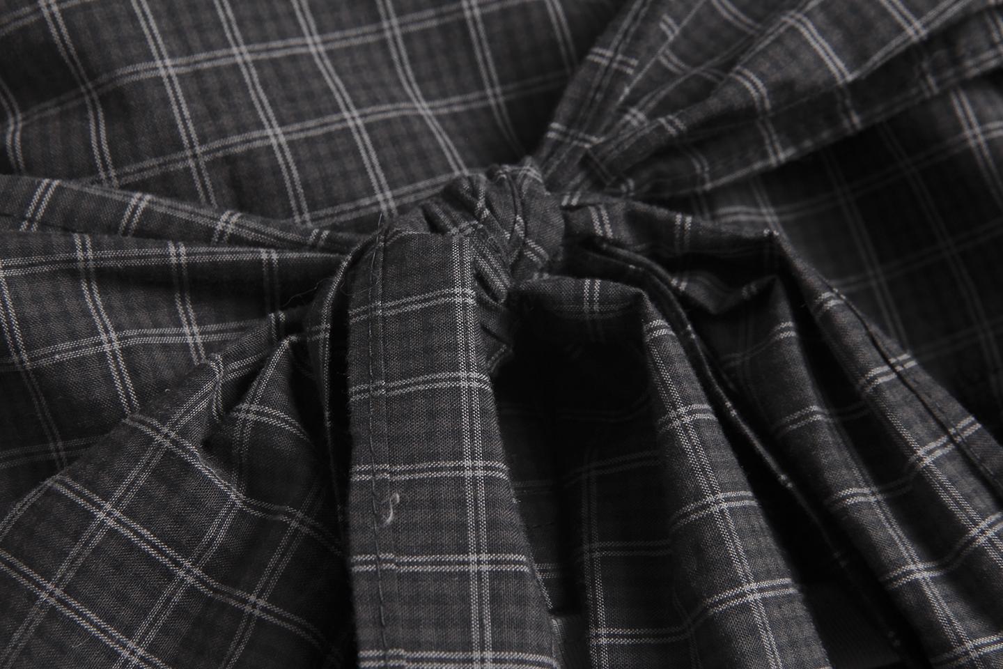 【C7338】秋上新!格紋拼接綁帶上衣長袖T恤