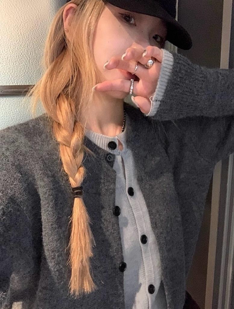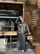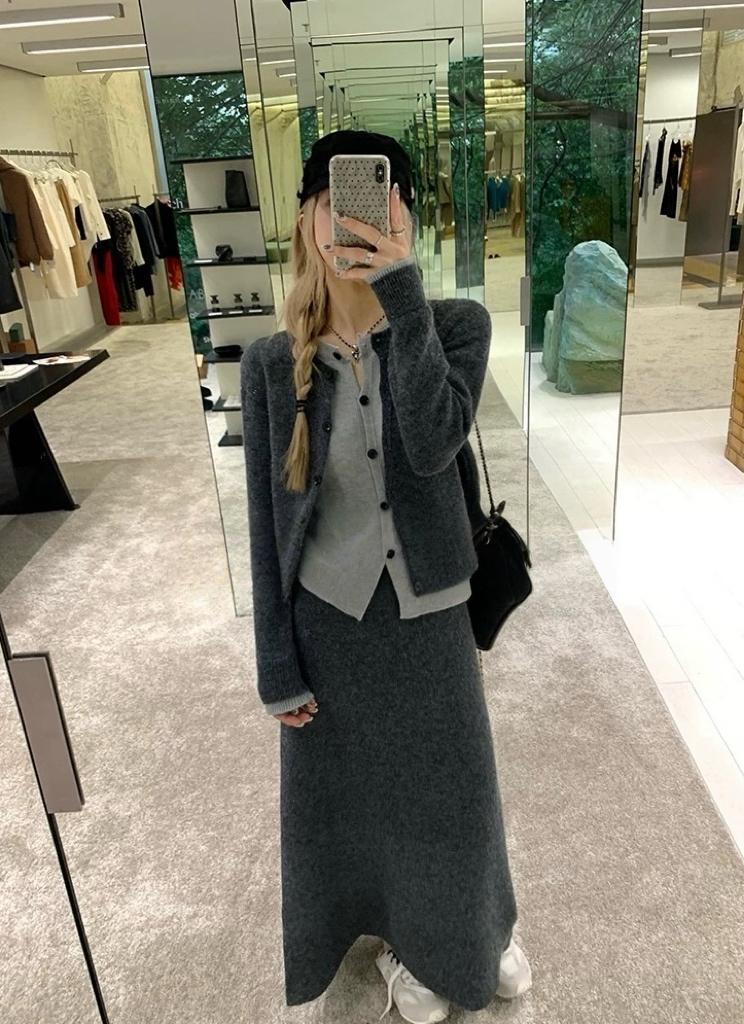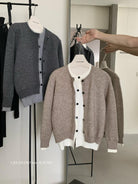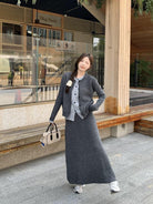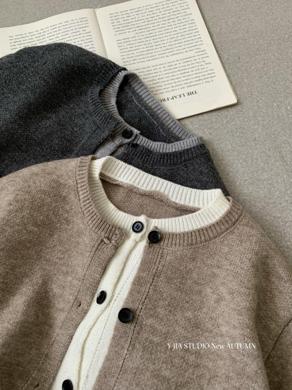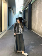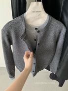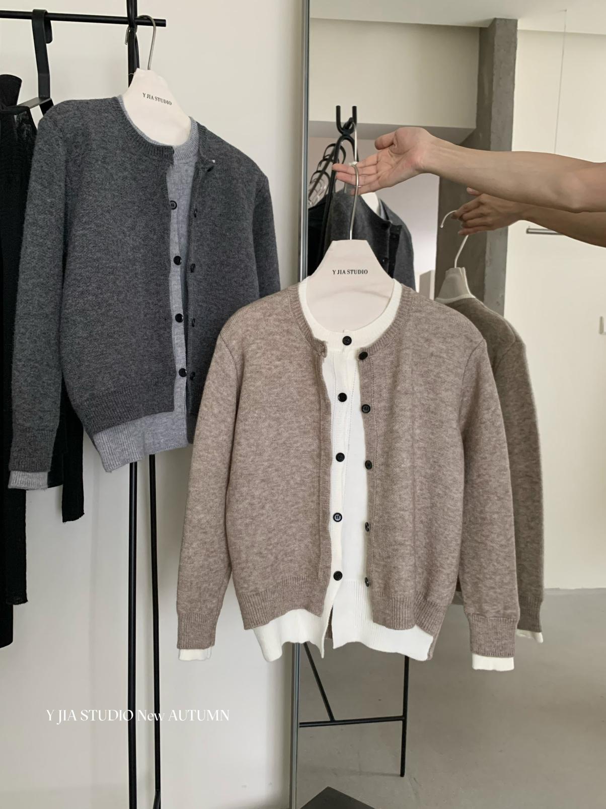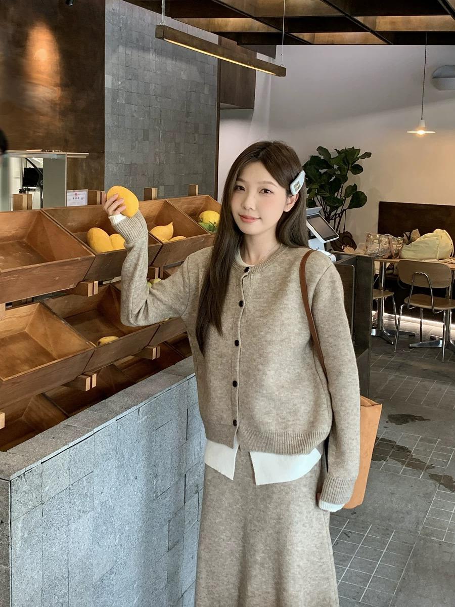 【C7359】設計感撞色假兩件針織開衫+半身裙套裝