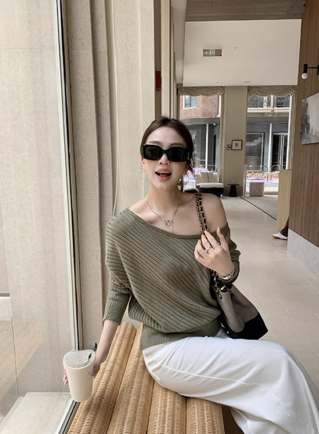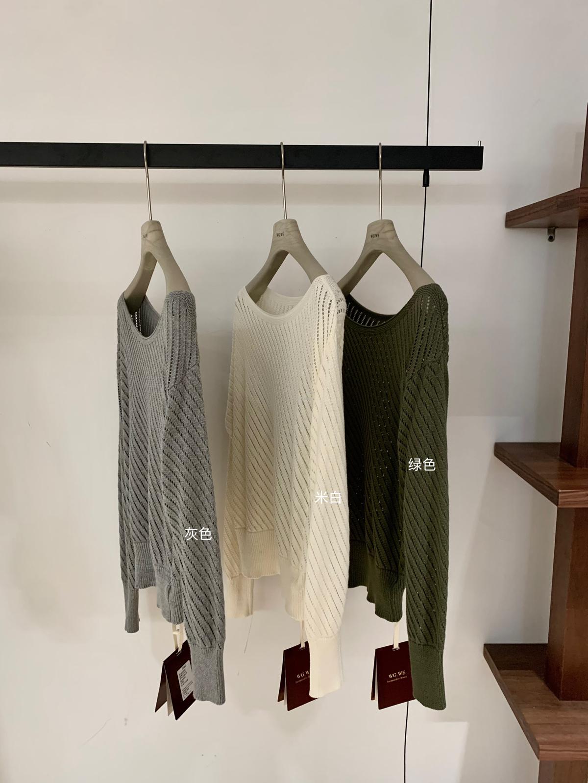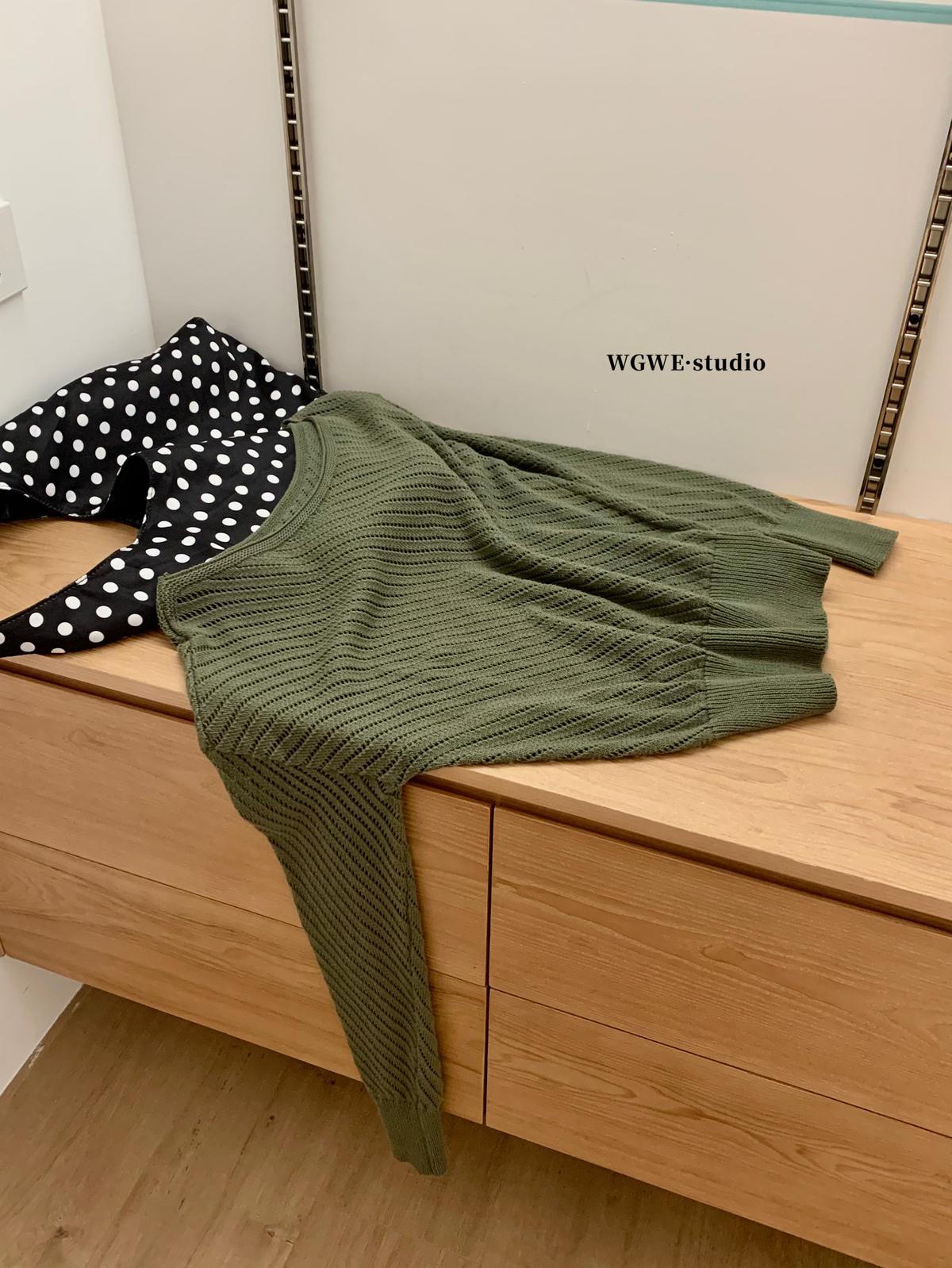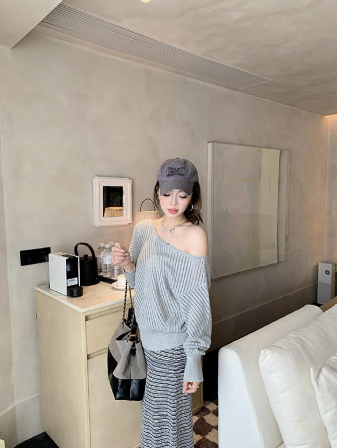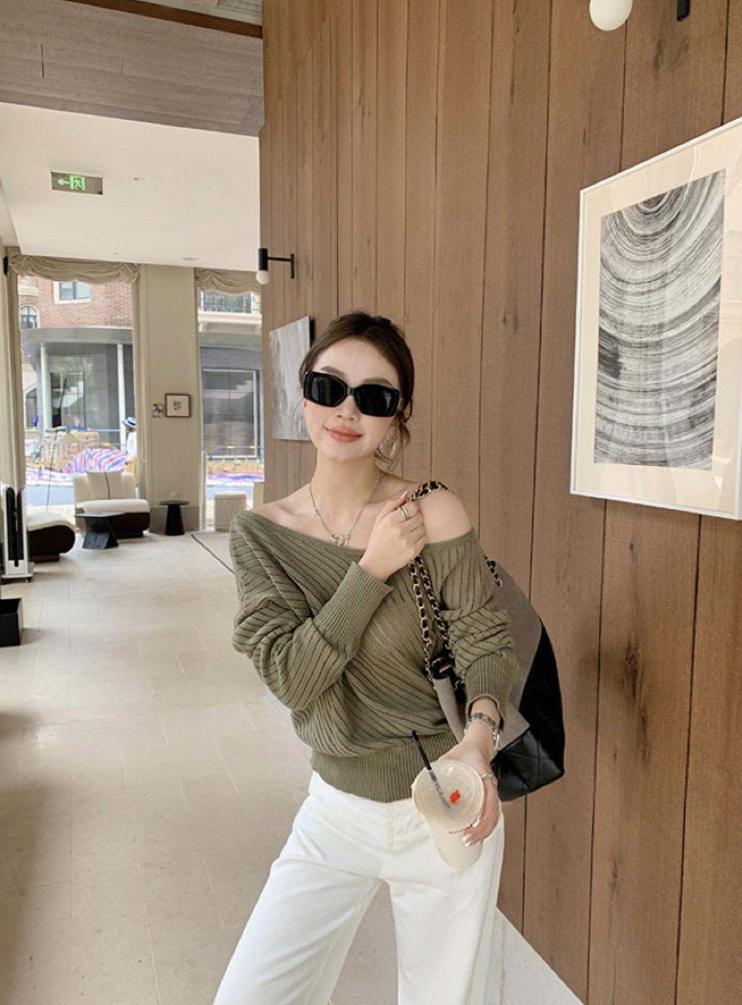 【C7363】斜肩針織衫新款秋季顯瘦氛圍感鏤空針織衫