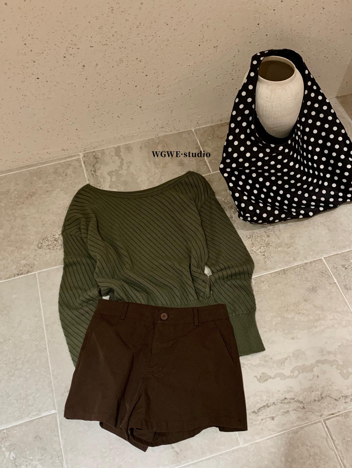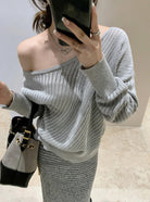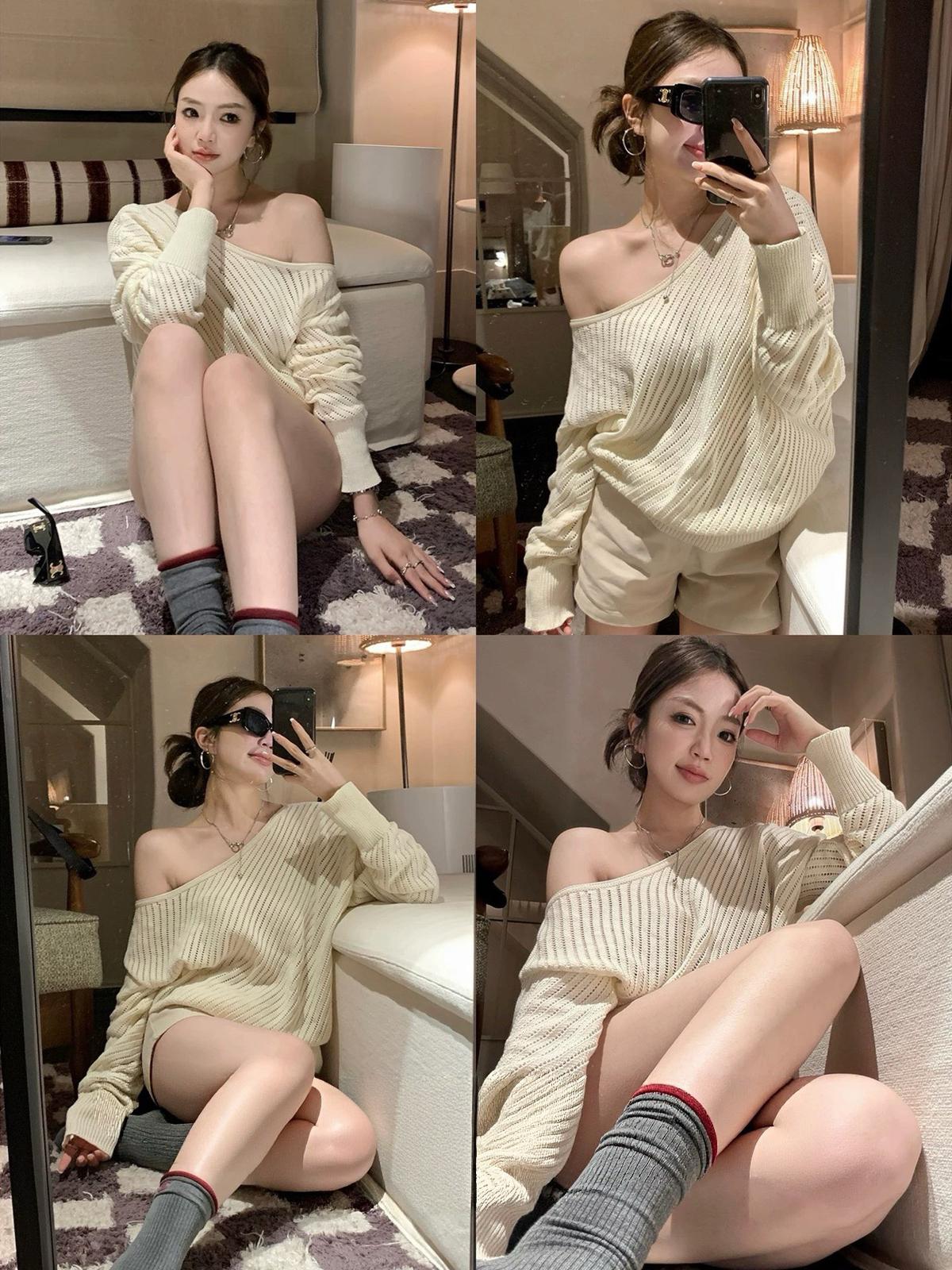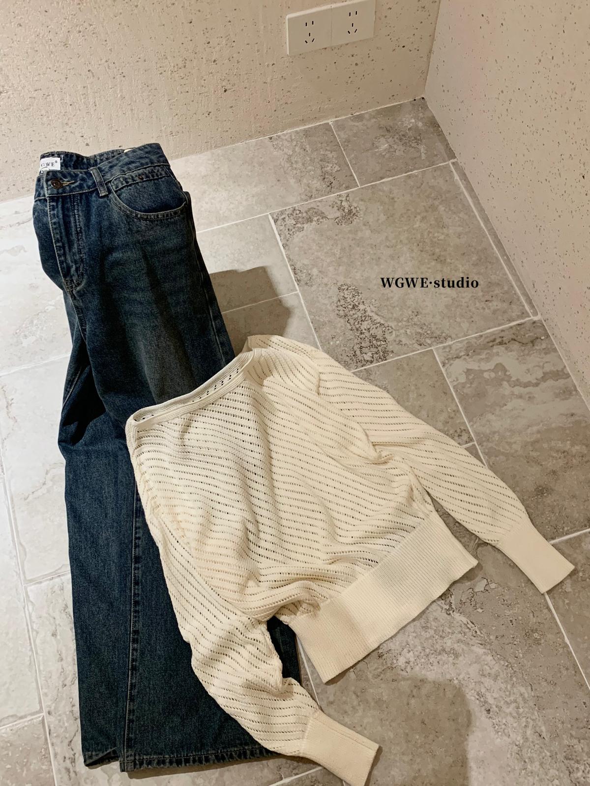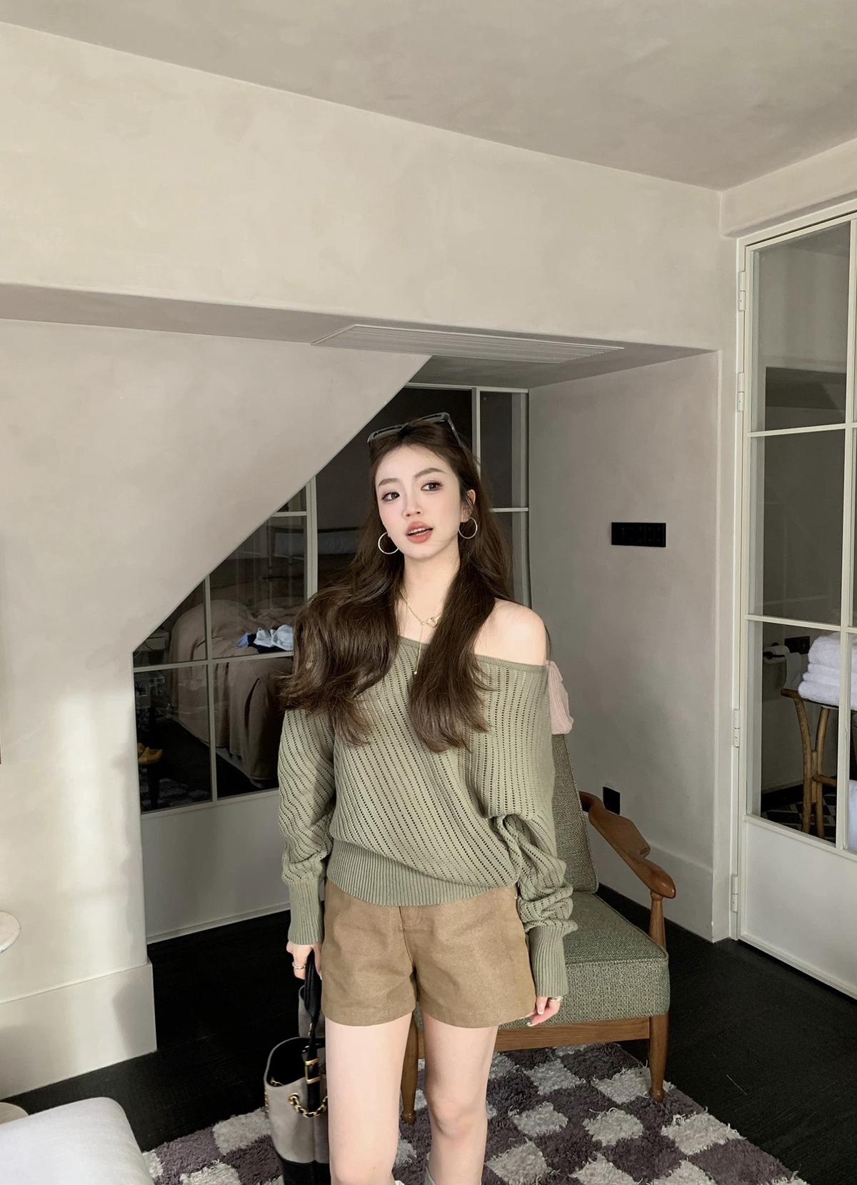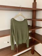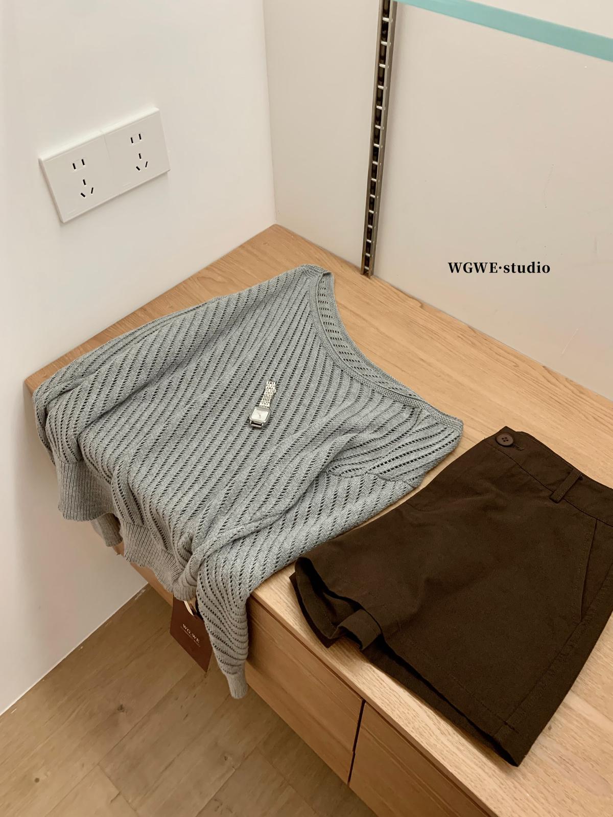 【C7363】斜肩針織衫新款秋季顯瘦氛圍感鏤空針織衫