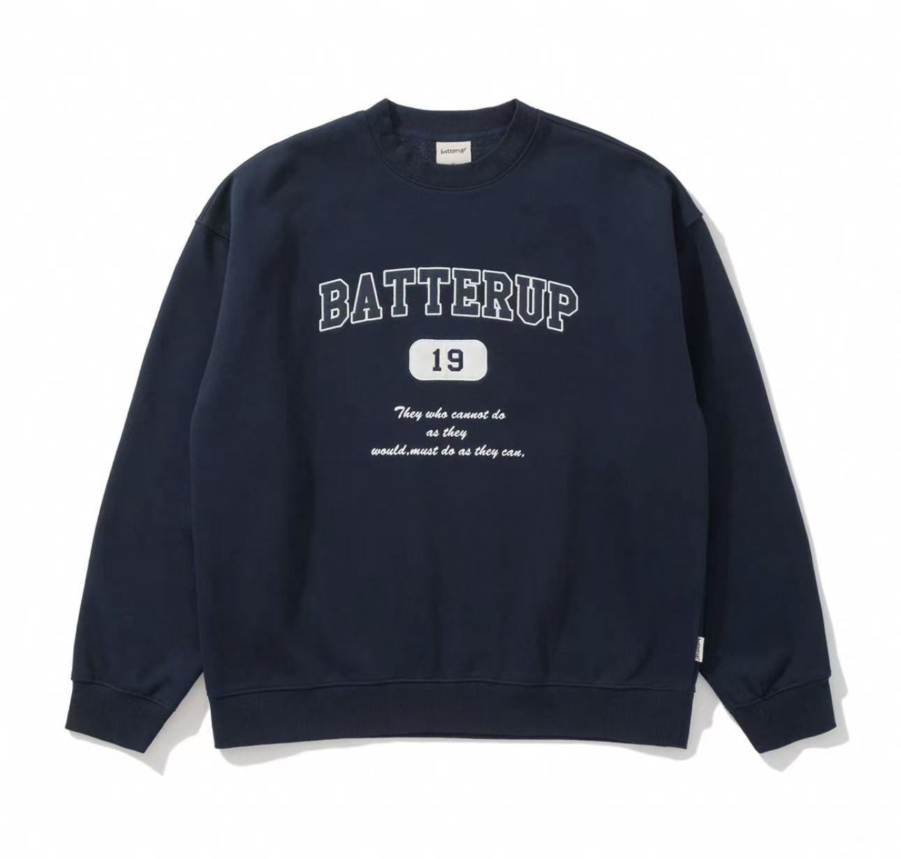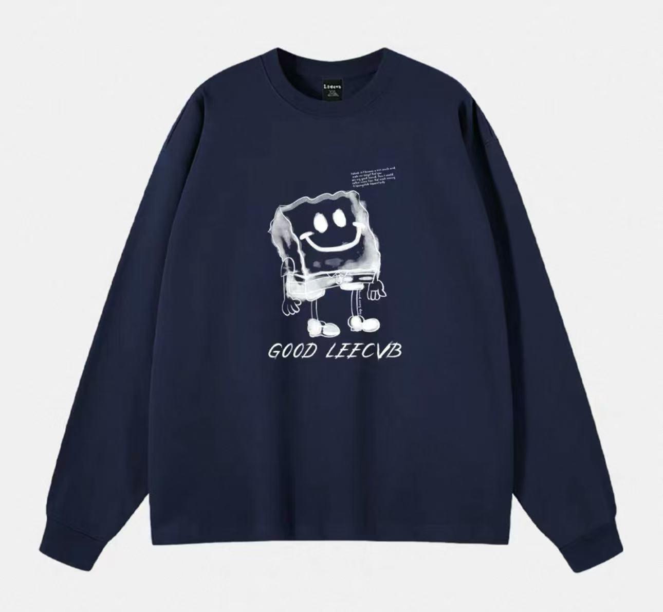 【YS2317】美式時尚潮流圓領印花寬鬆休閒長袖衛衣--藏青色