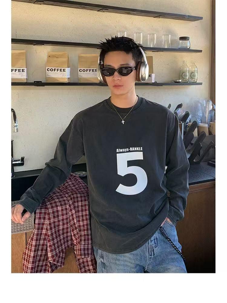 【YS2314】美式時尚潮流圓領打底長袖T恤
