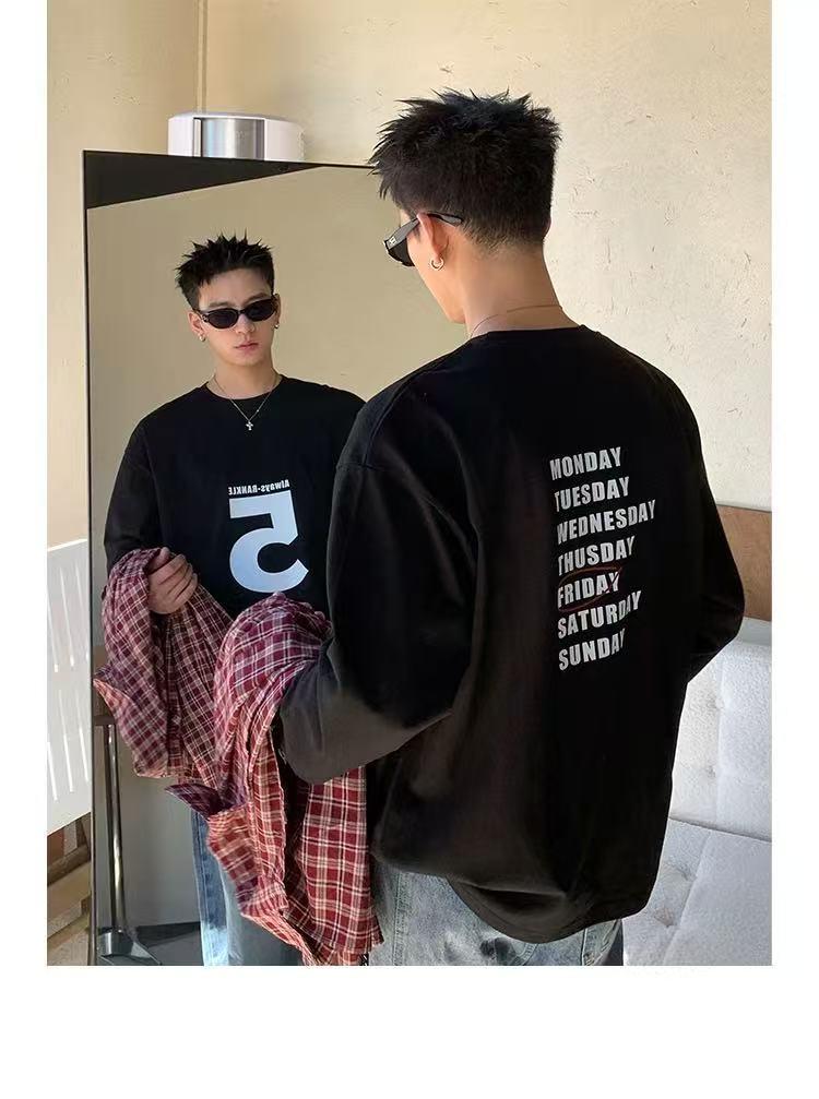【YS2309】美式時尚潮流時尚打底長袖T恤