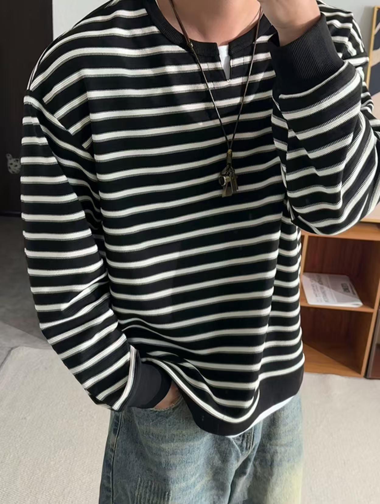 【YS2319】300G重磅假兩件亨利式領打底衫長袖衛衣