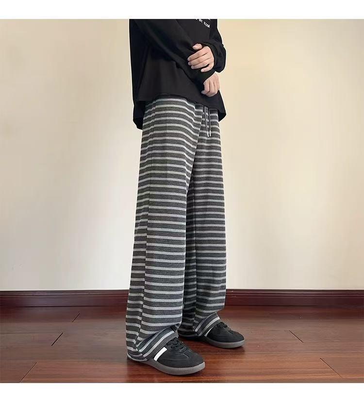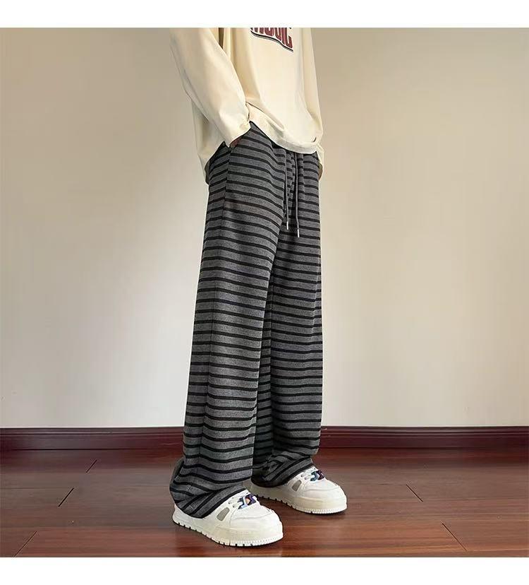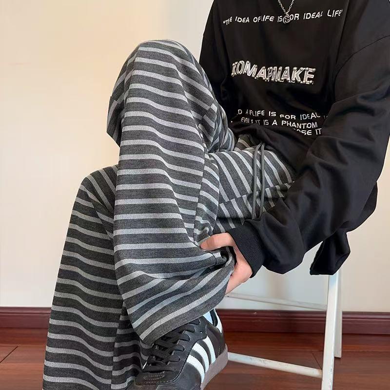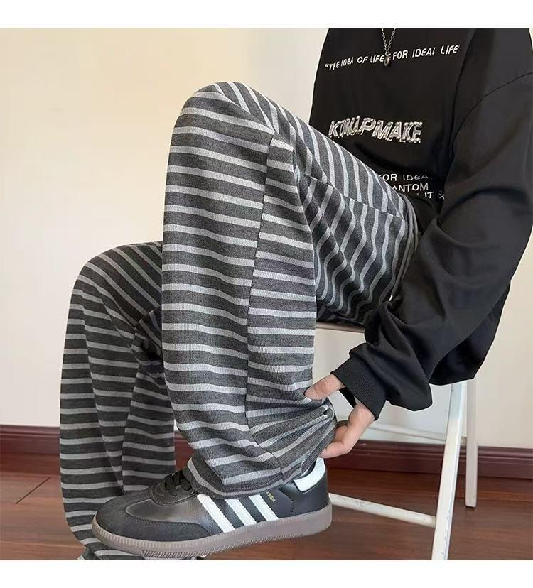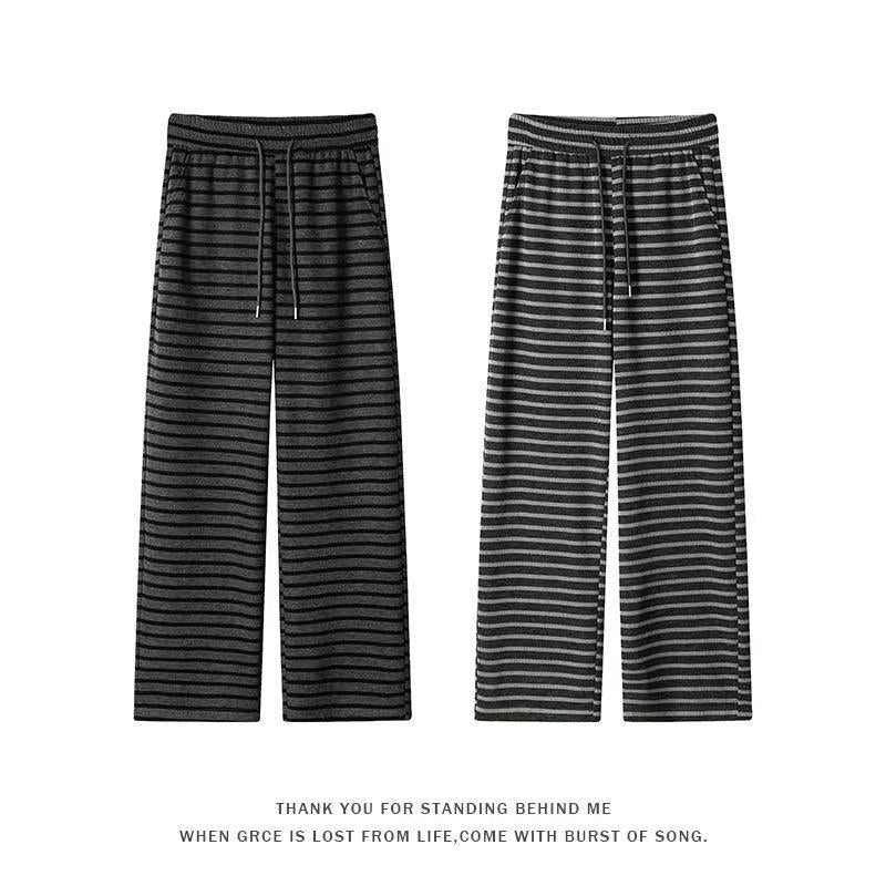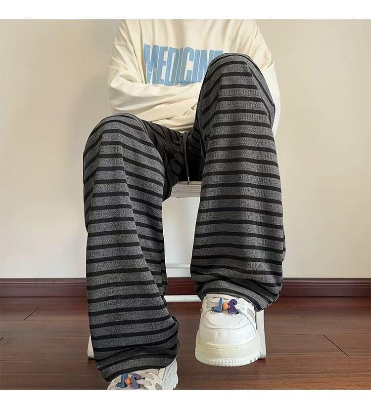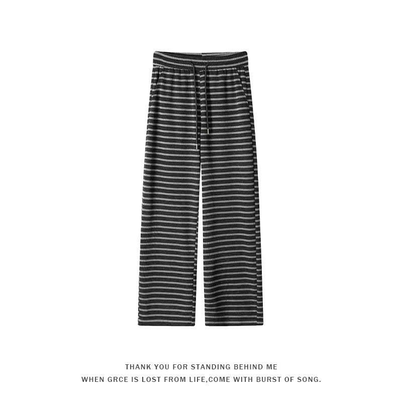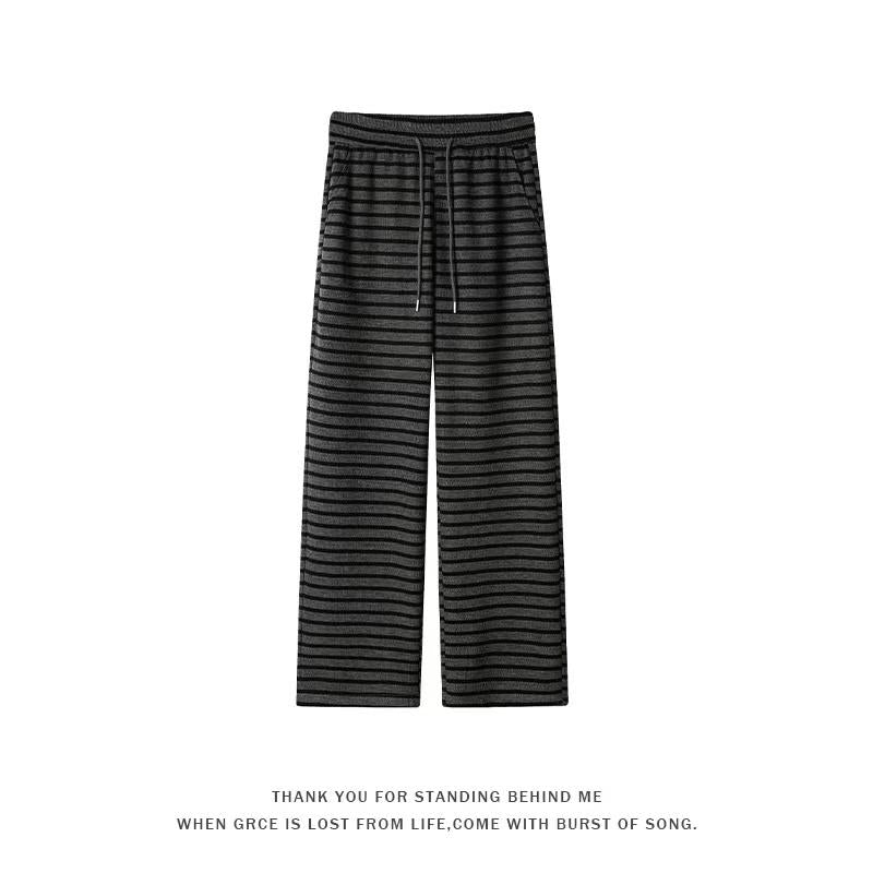 【YS2336】美式復古條紋針織紋理直筒寬鬆休閒褲