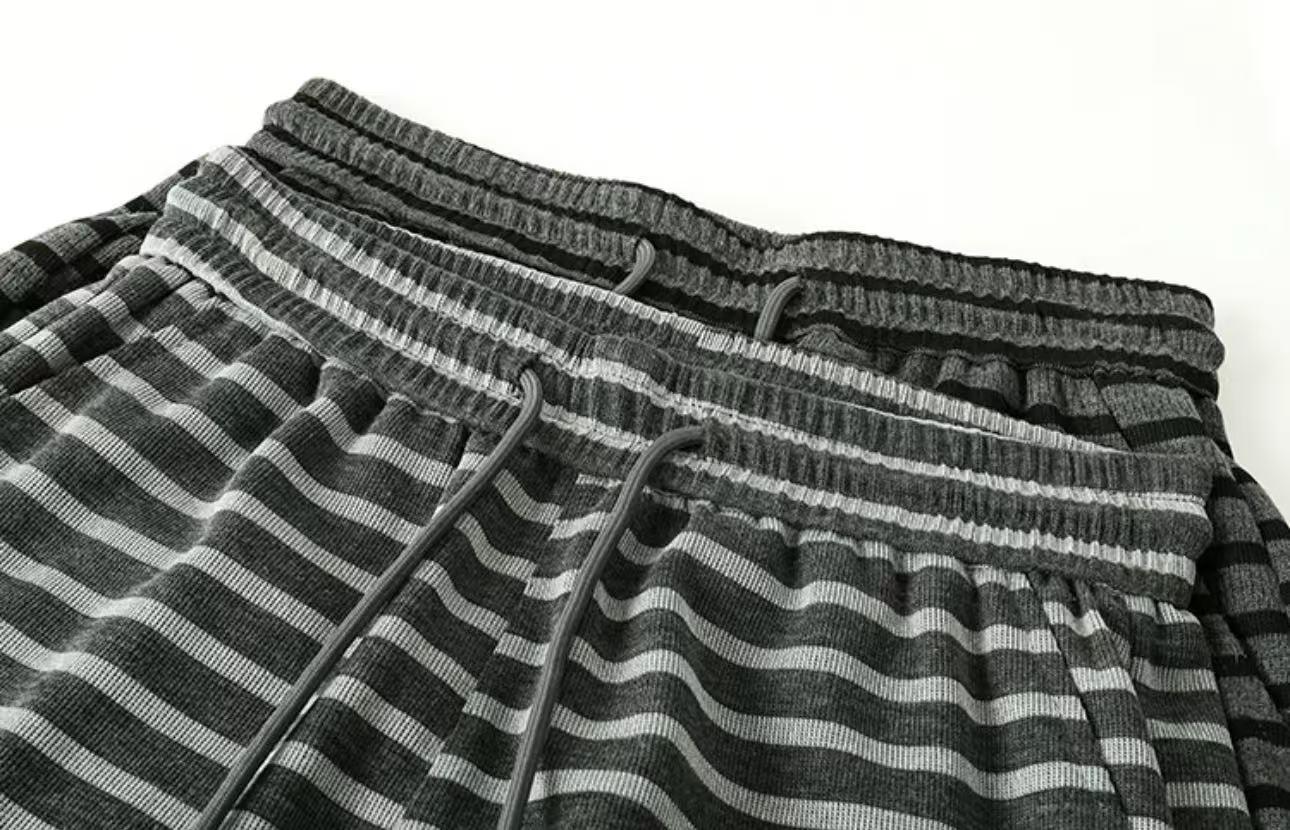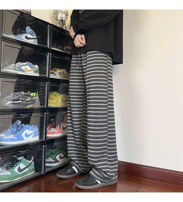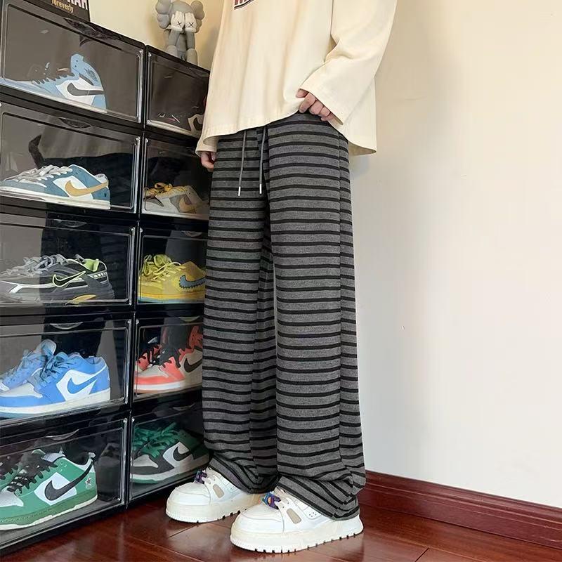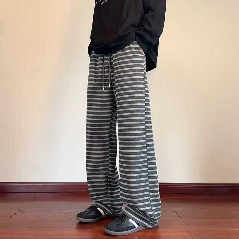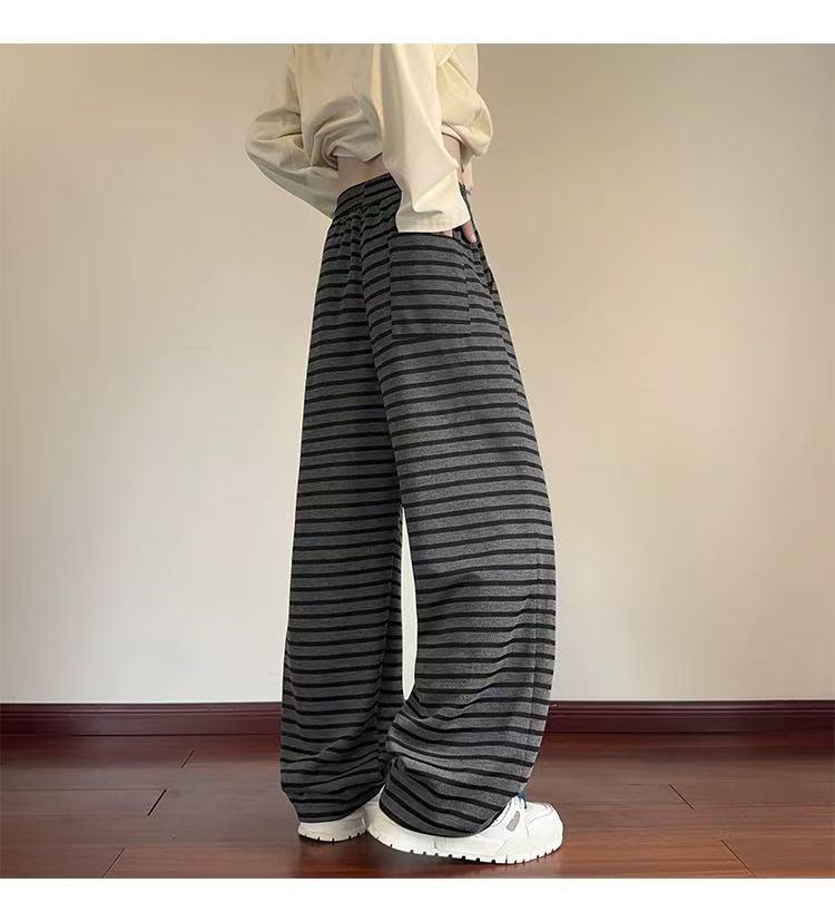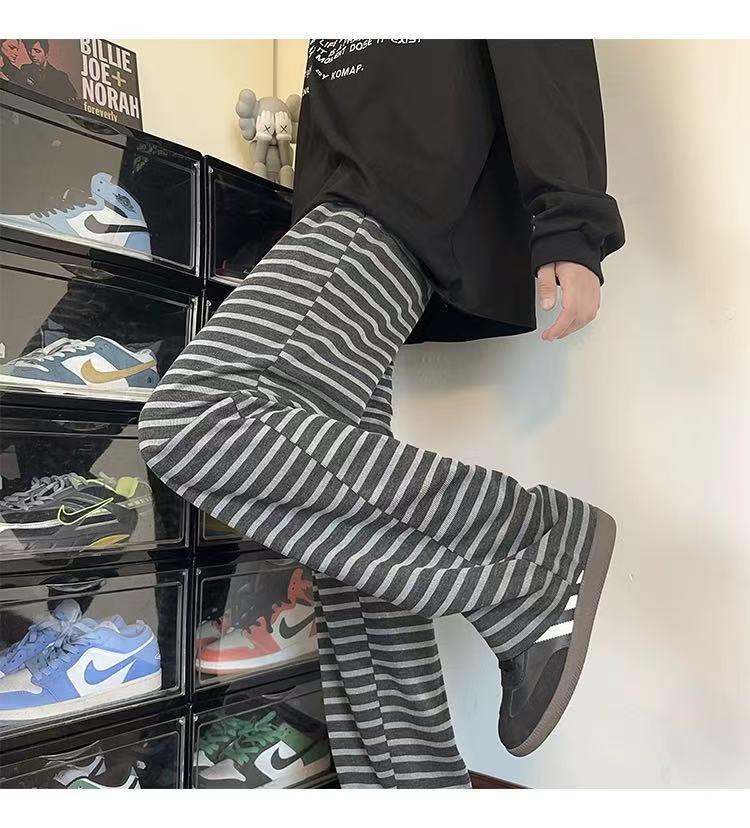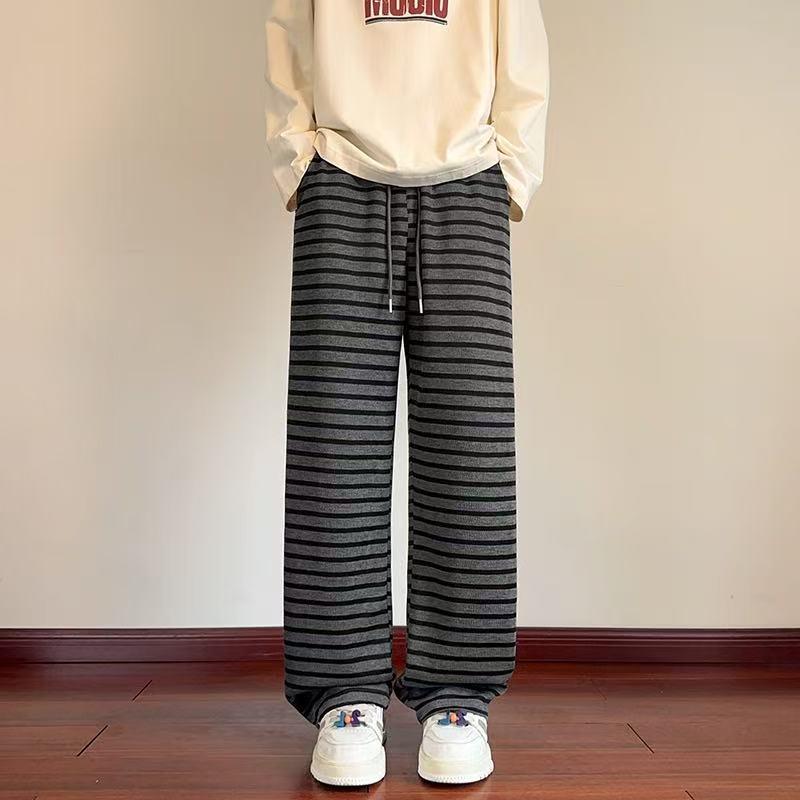 【YS2336】美式復古條紋針織紋理直筒寬鬆休閒褲
