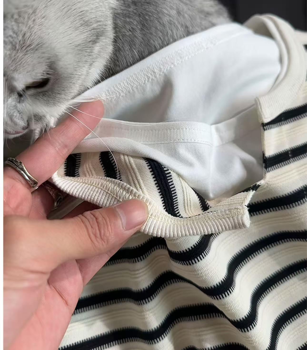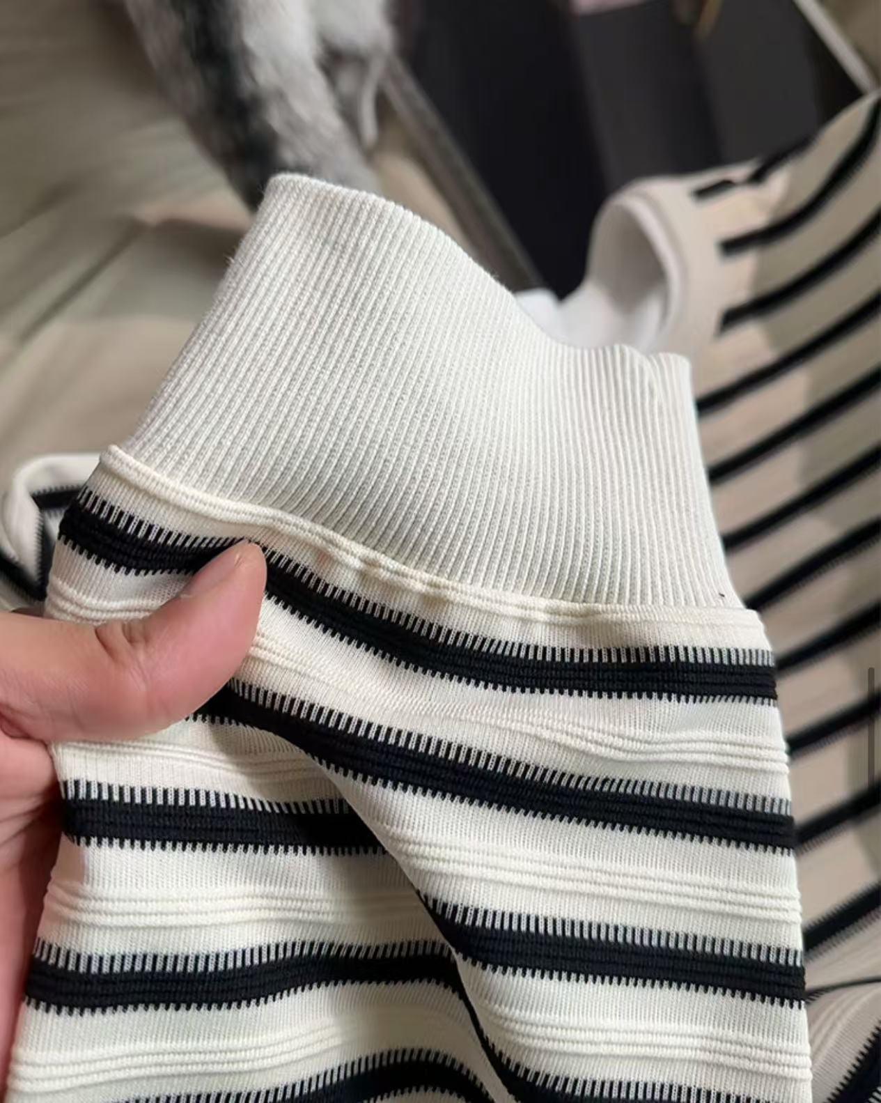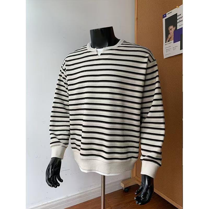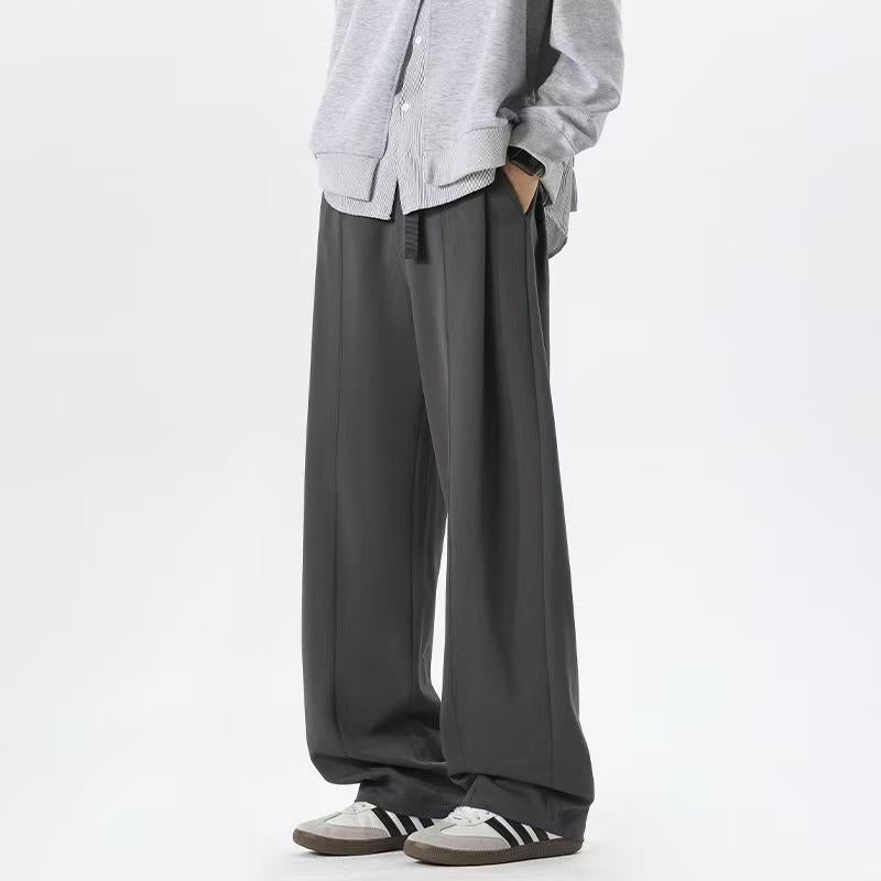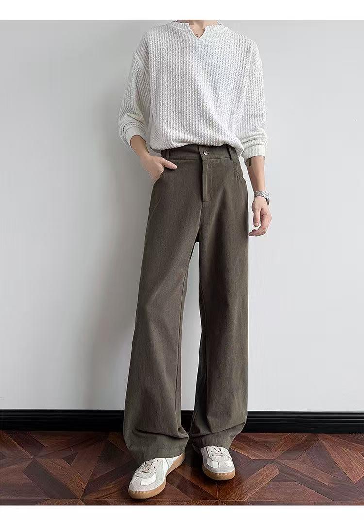 【YS2336】美式復古條紋針織紋理直筒寬鬆休閒褲