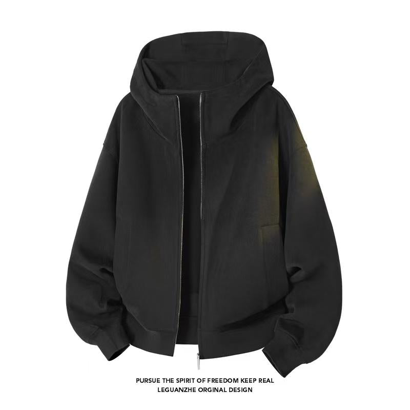 【YS2325】美式純色休閒寬鬆連帽衛衣外套