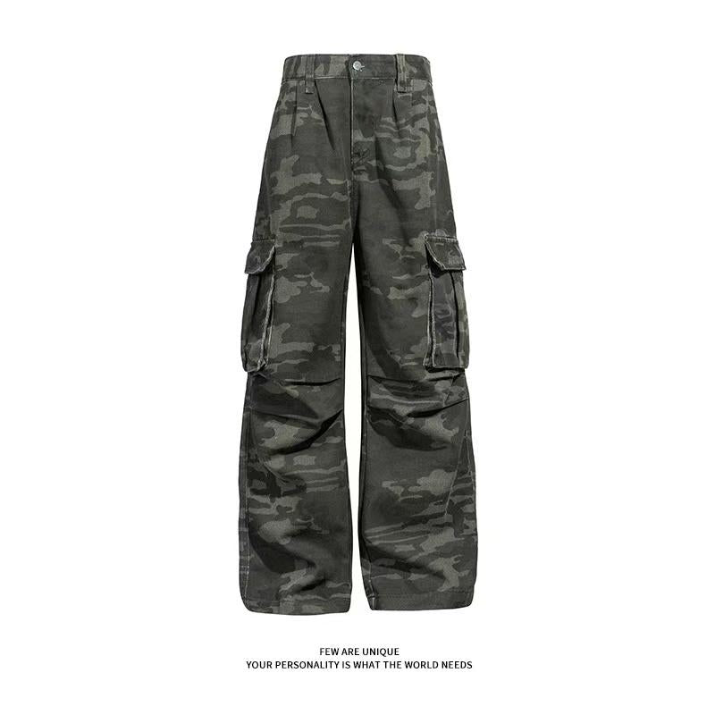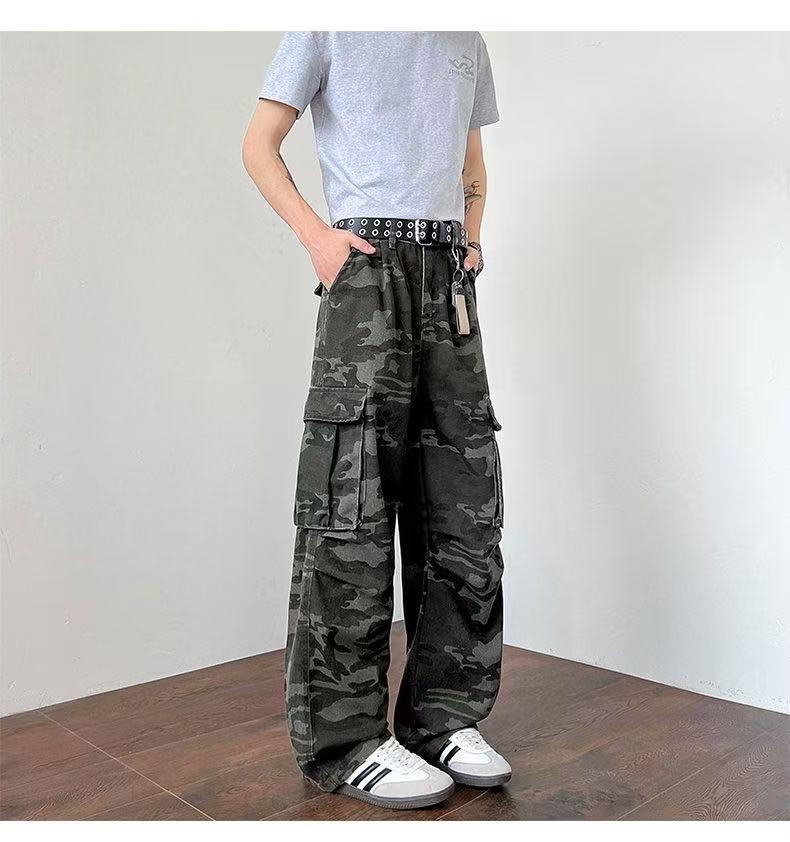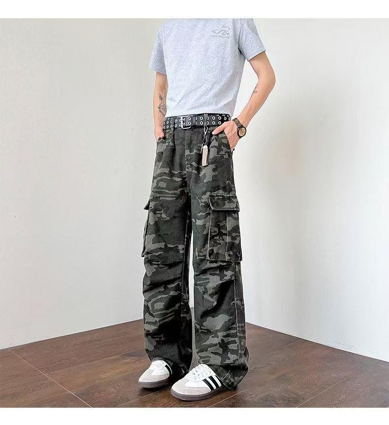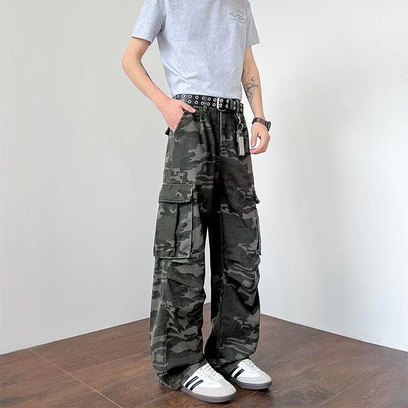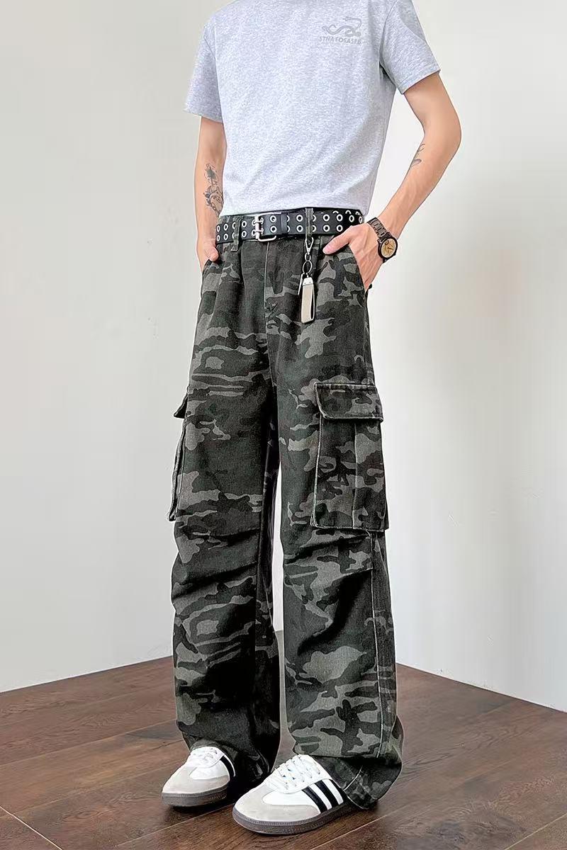 【YS2334】美式工裝復古迷彩直筒寬鬆工裝褲
