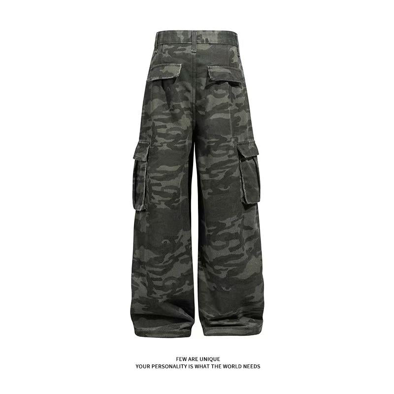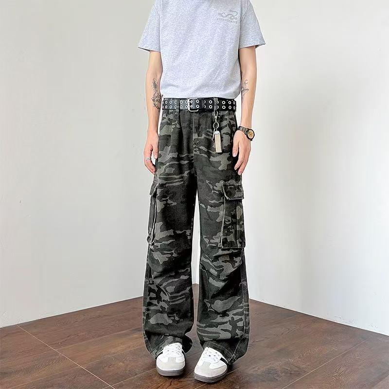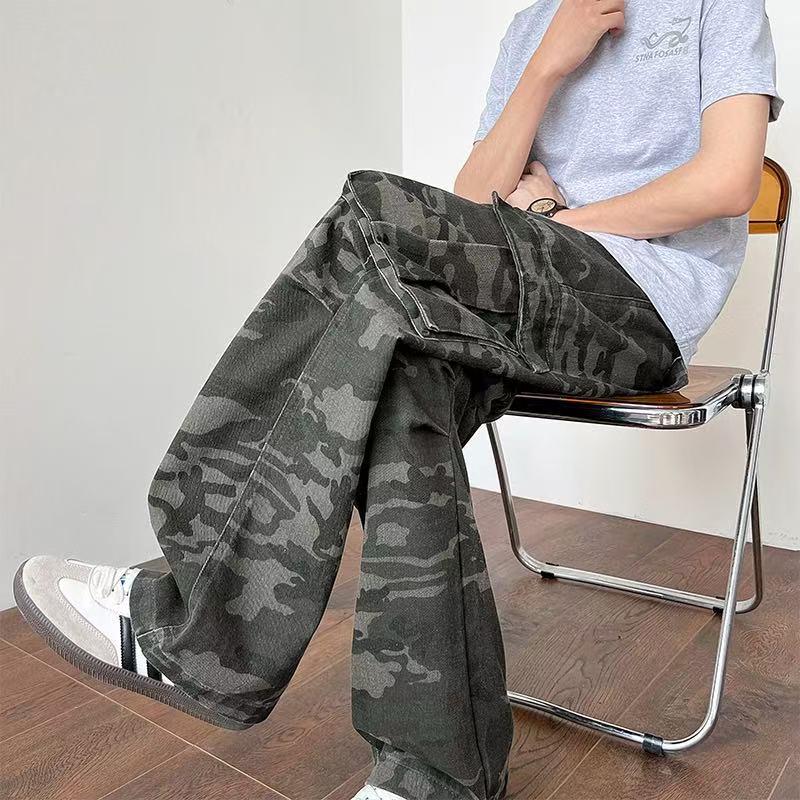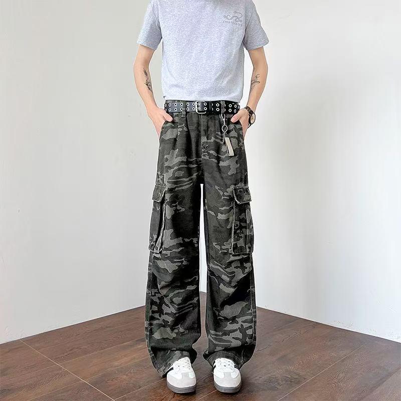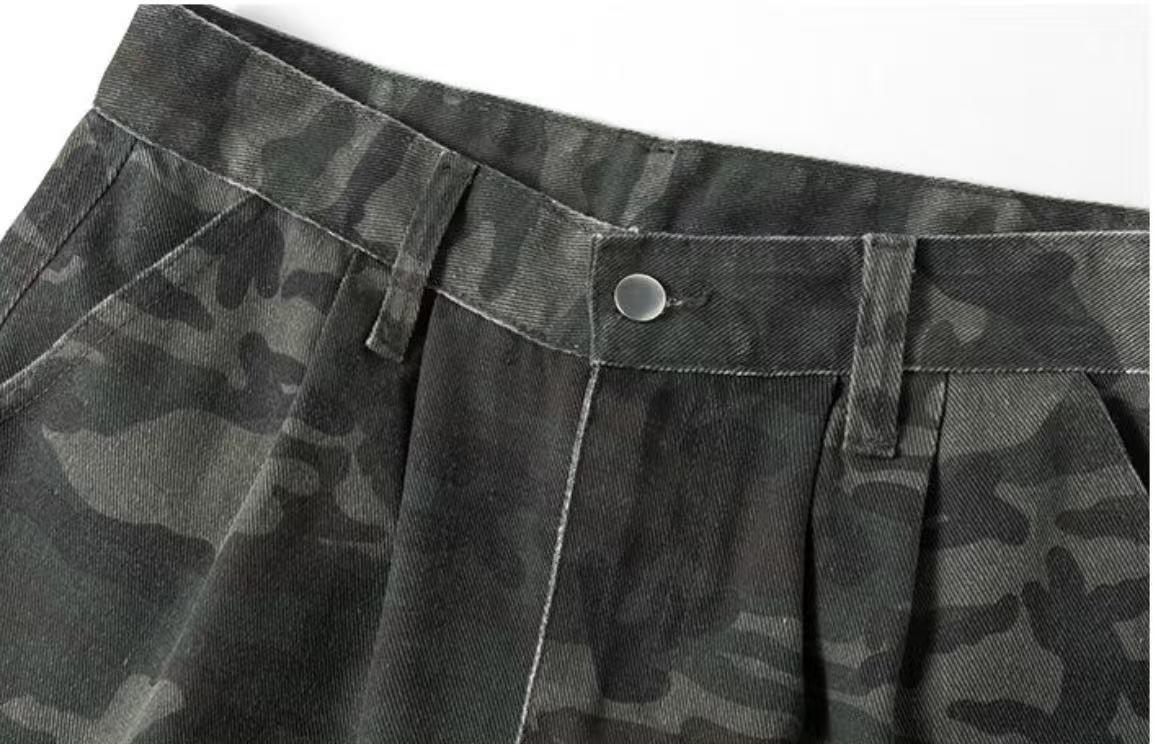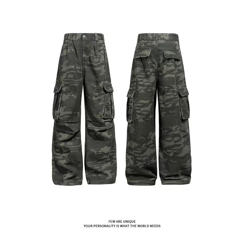 【YS2334】美式工裝復古迷彩直筒寬鬆工裝褲