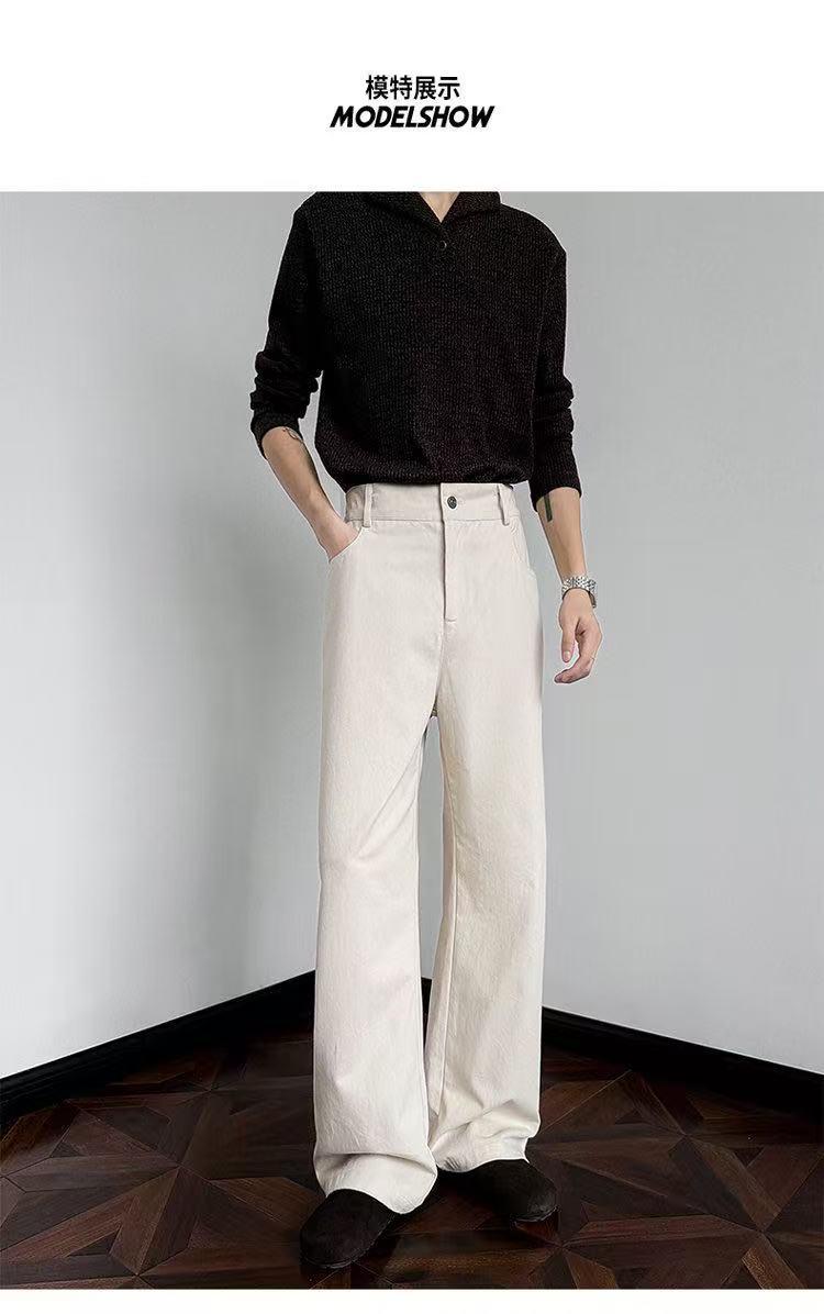 【YS2335】美式復古高街純色微喇簡約百搭休閒牛仔褲
