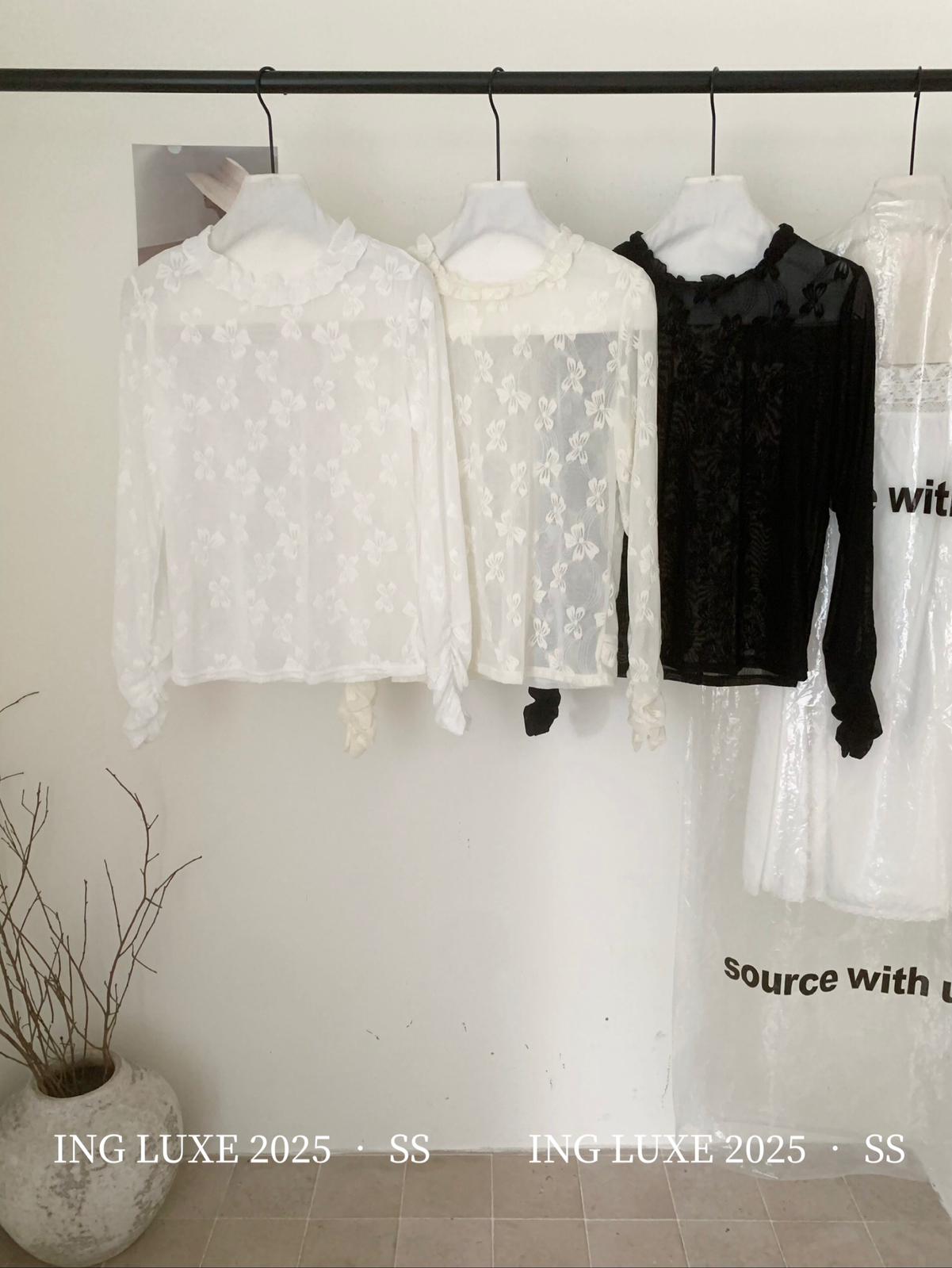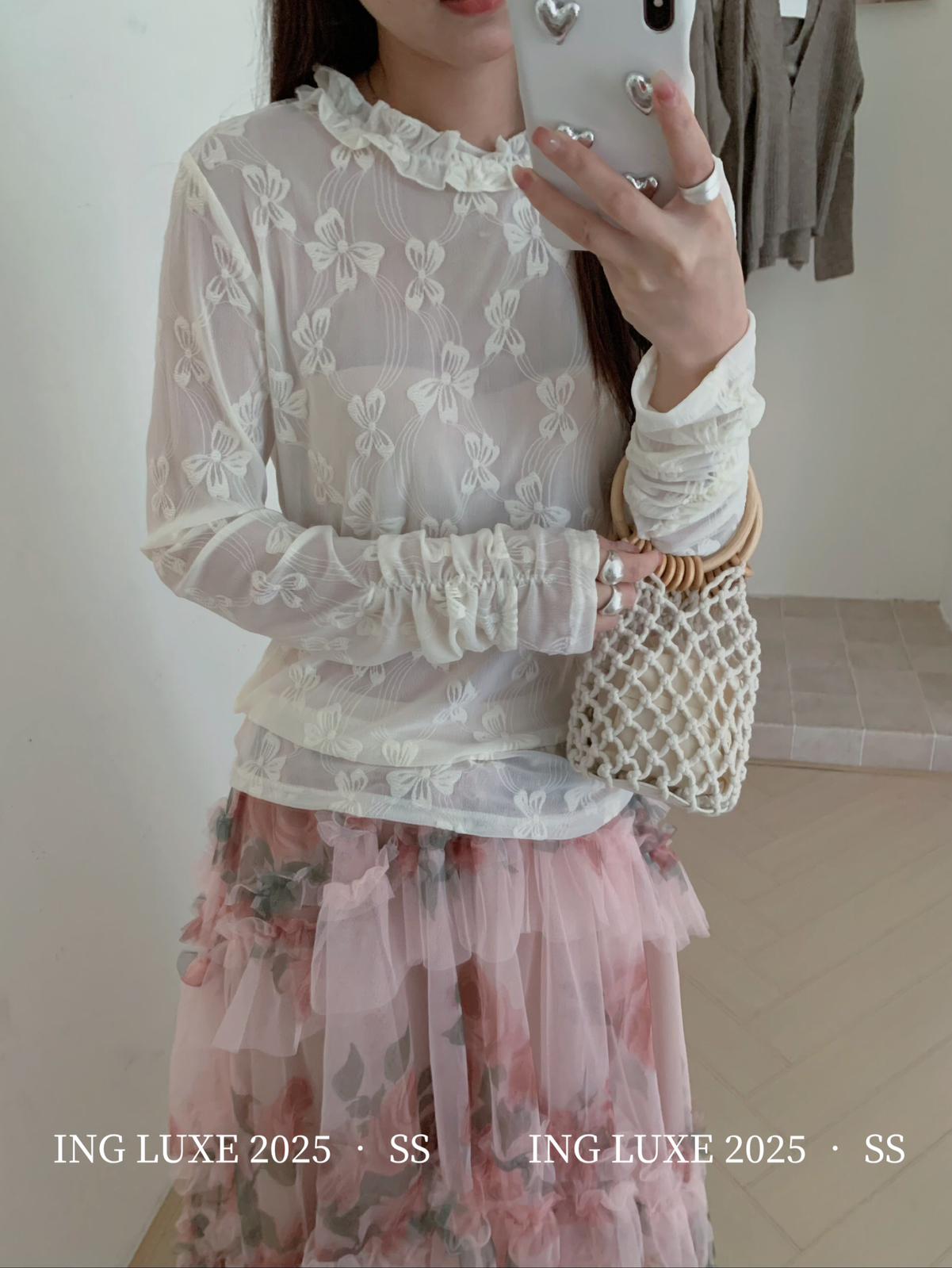 【C7375】2025秋季新款韓系修身甜美減齡顯瘦百搭蝴蝶結蕾絲疊穿內搭打底衫