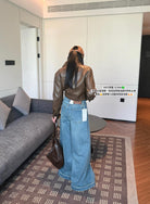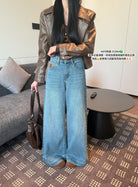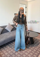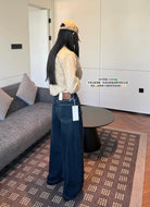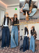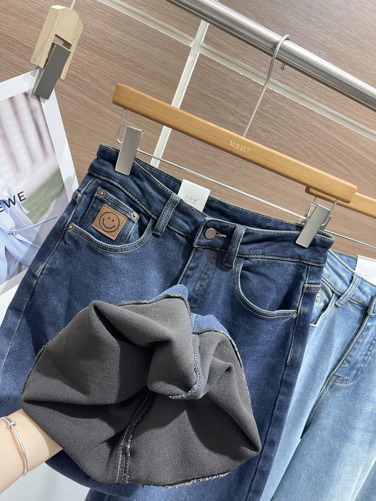 【C7379】冬季加厚保暖植絨兩色百搭笑臉皮牌彈力闊腿甩甩拖地褲牛仔褲