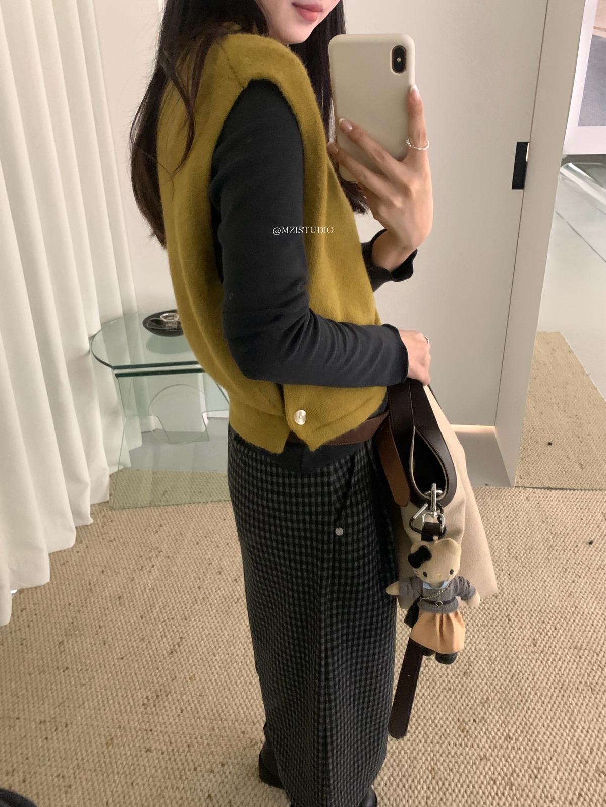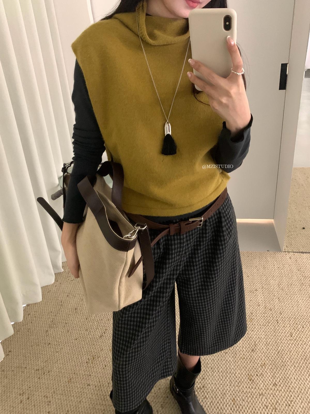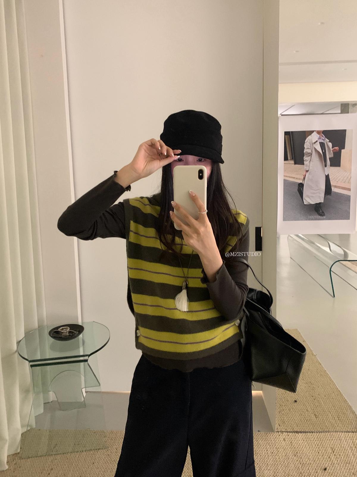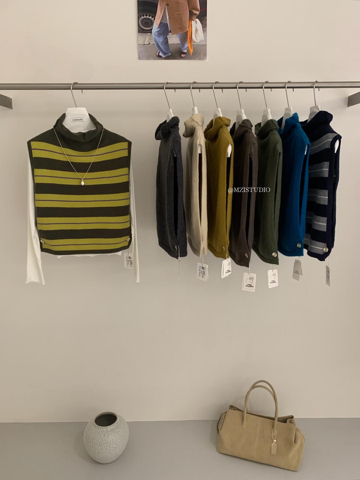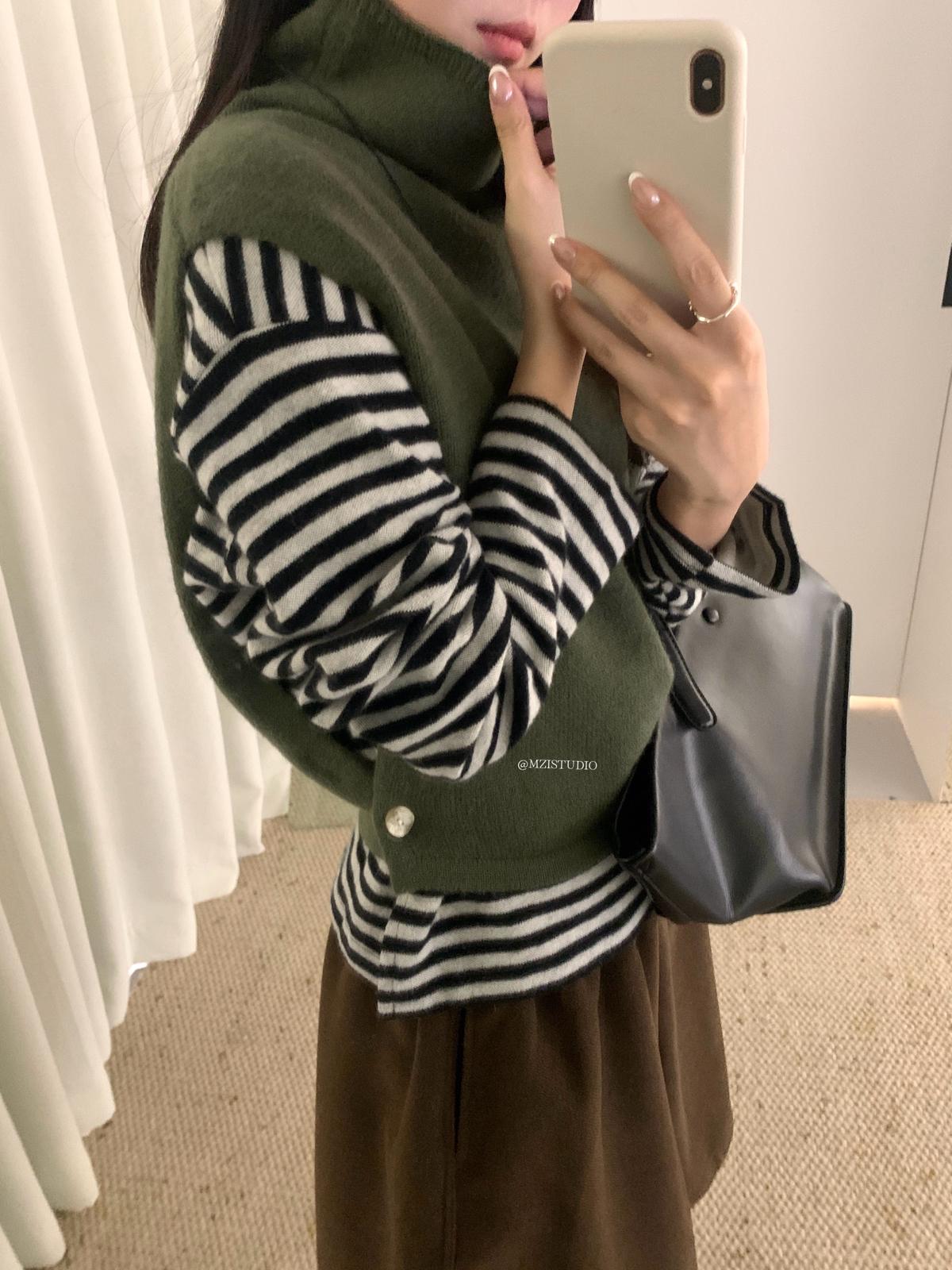3. 【C7385】成熟標杆秋冬疊穿搭配韓派小女人條紋高領修身馬甲毛衣背心