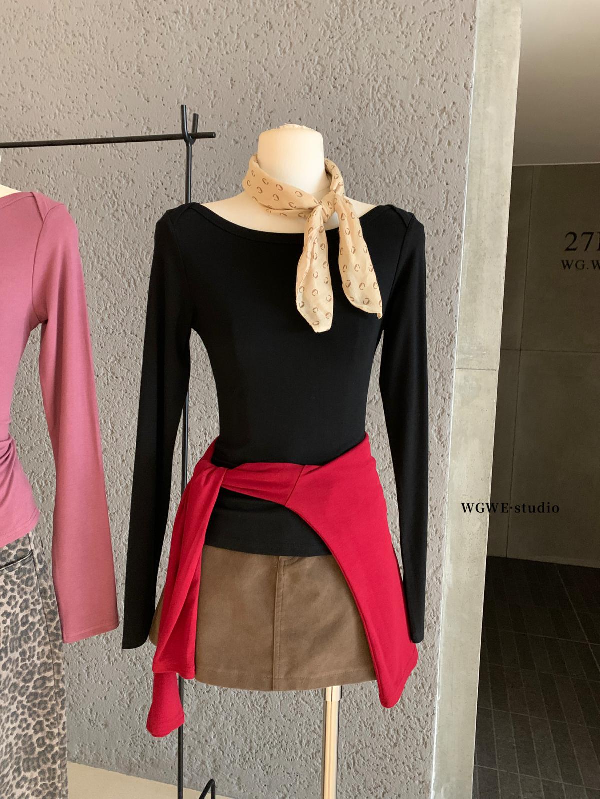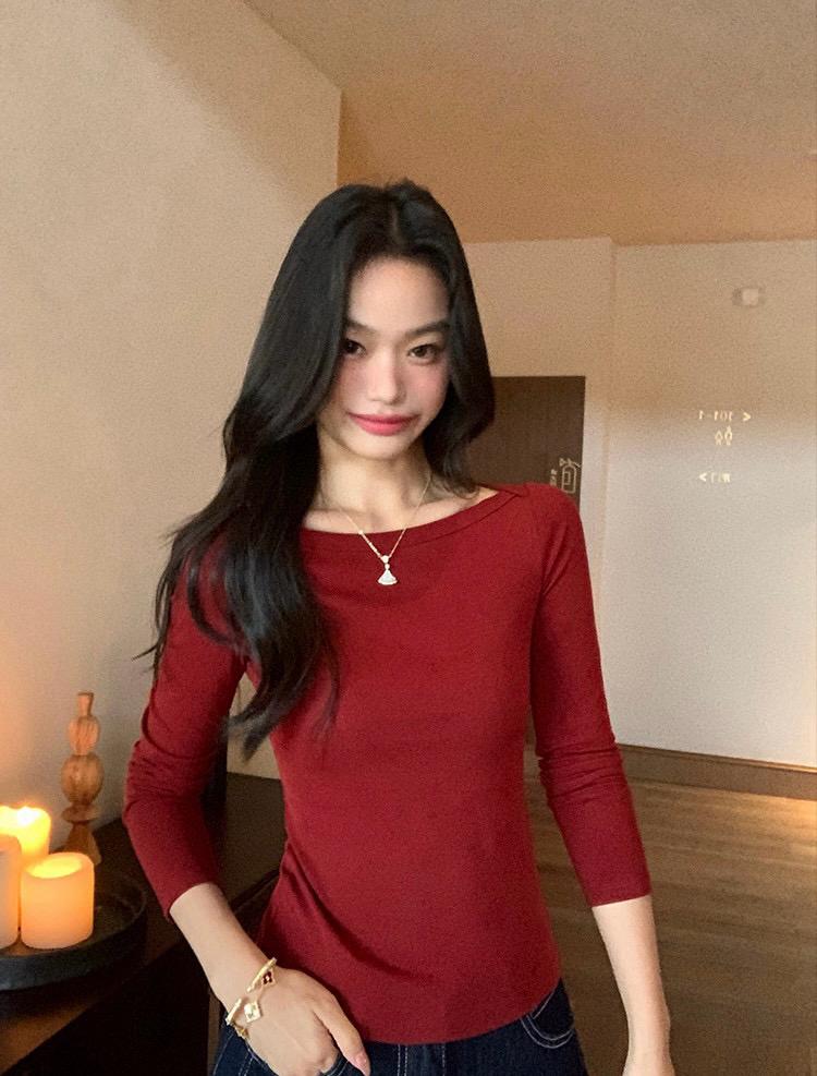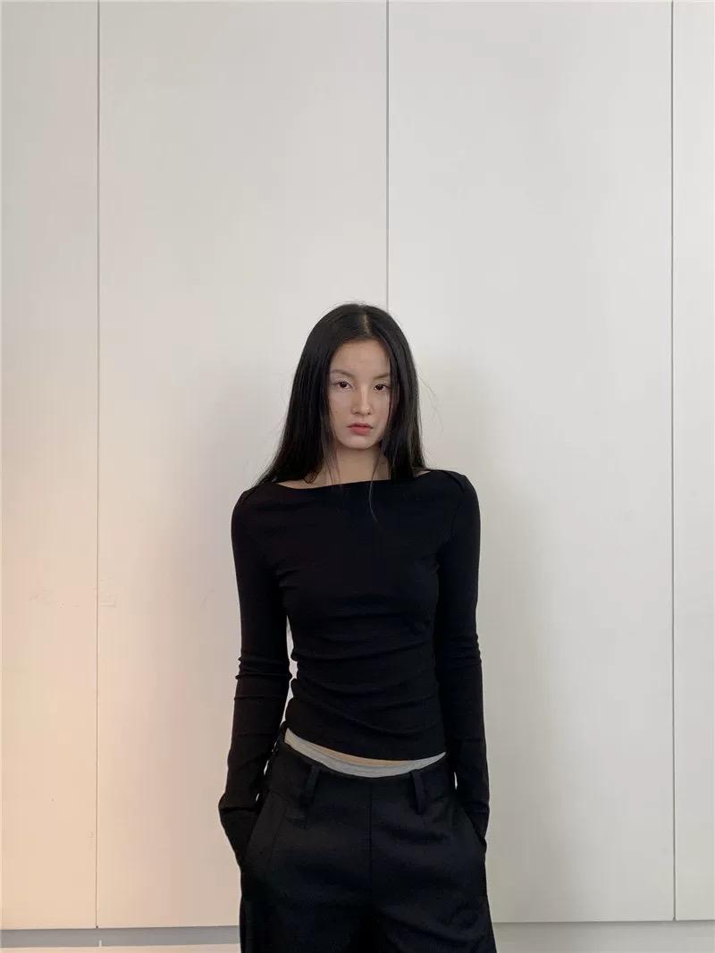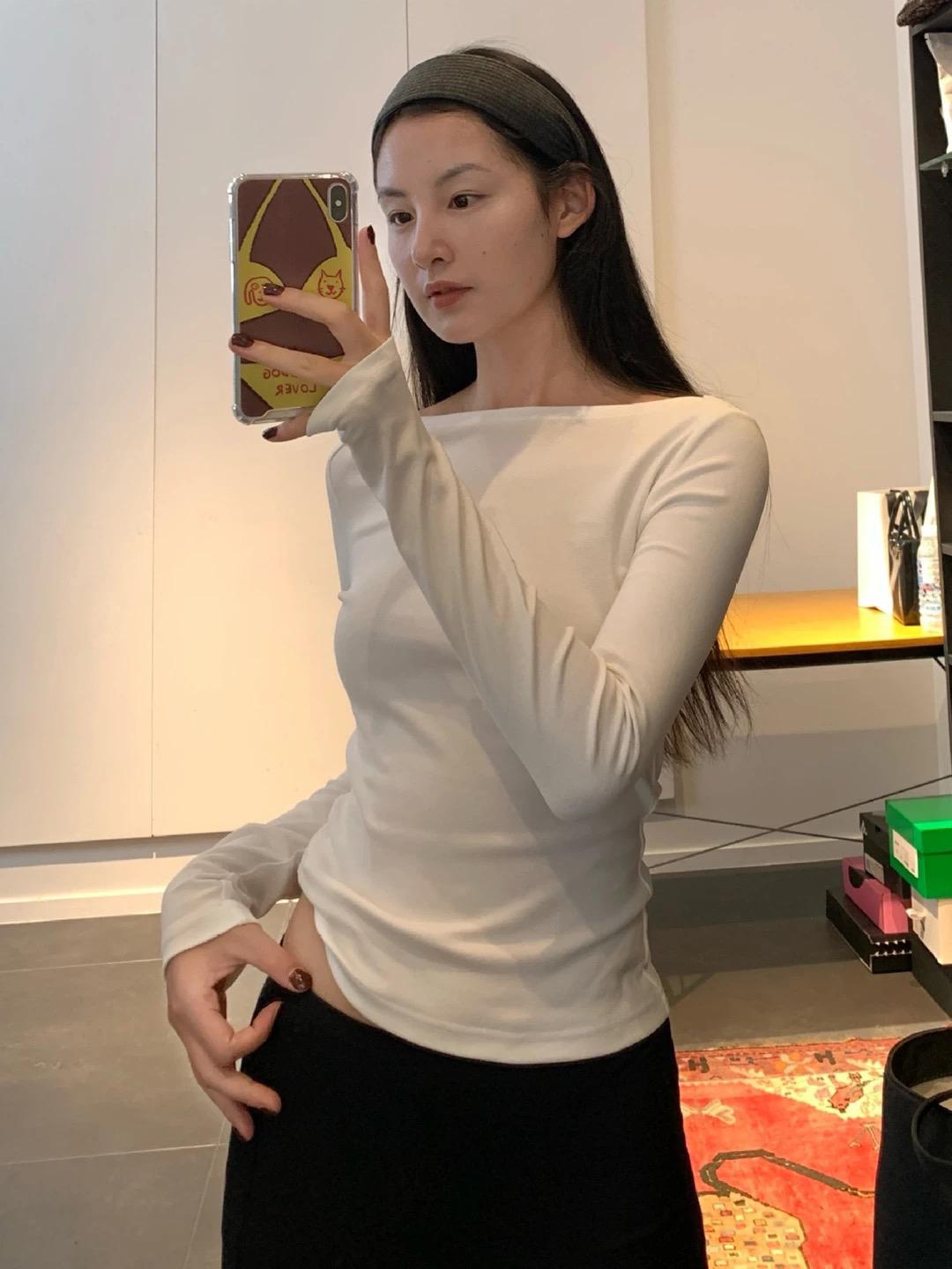 3. 【C7406】簡約設計親膚一字領打底長袖上衣長袖T恤
