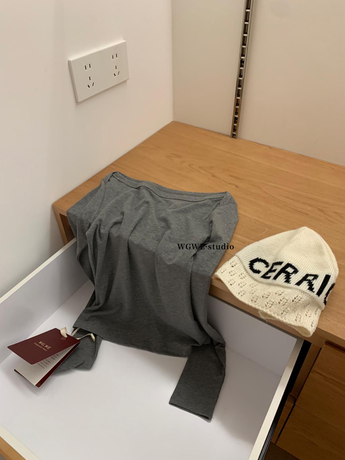 【C7406】簡約設計親膚一字領打底長袖上衣長袖T恤