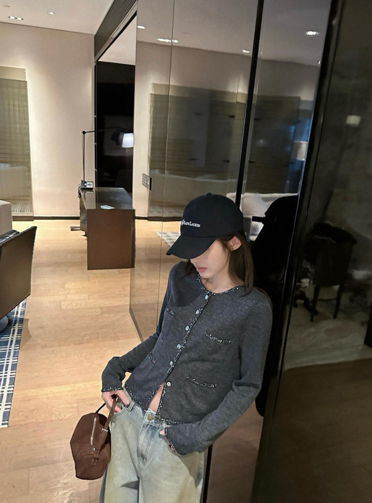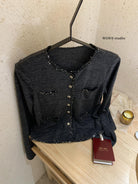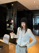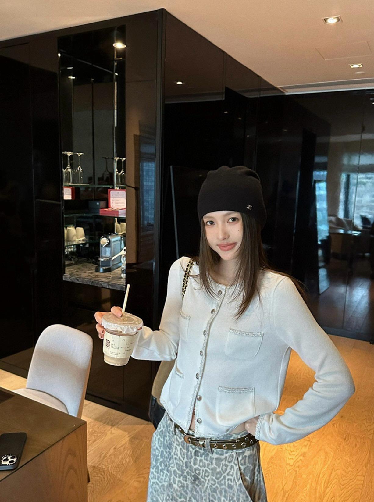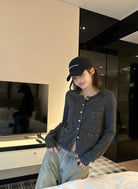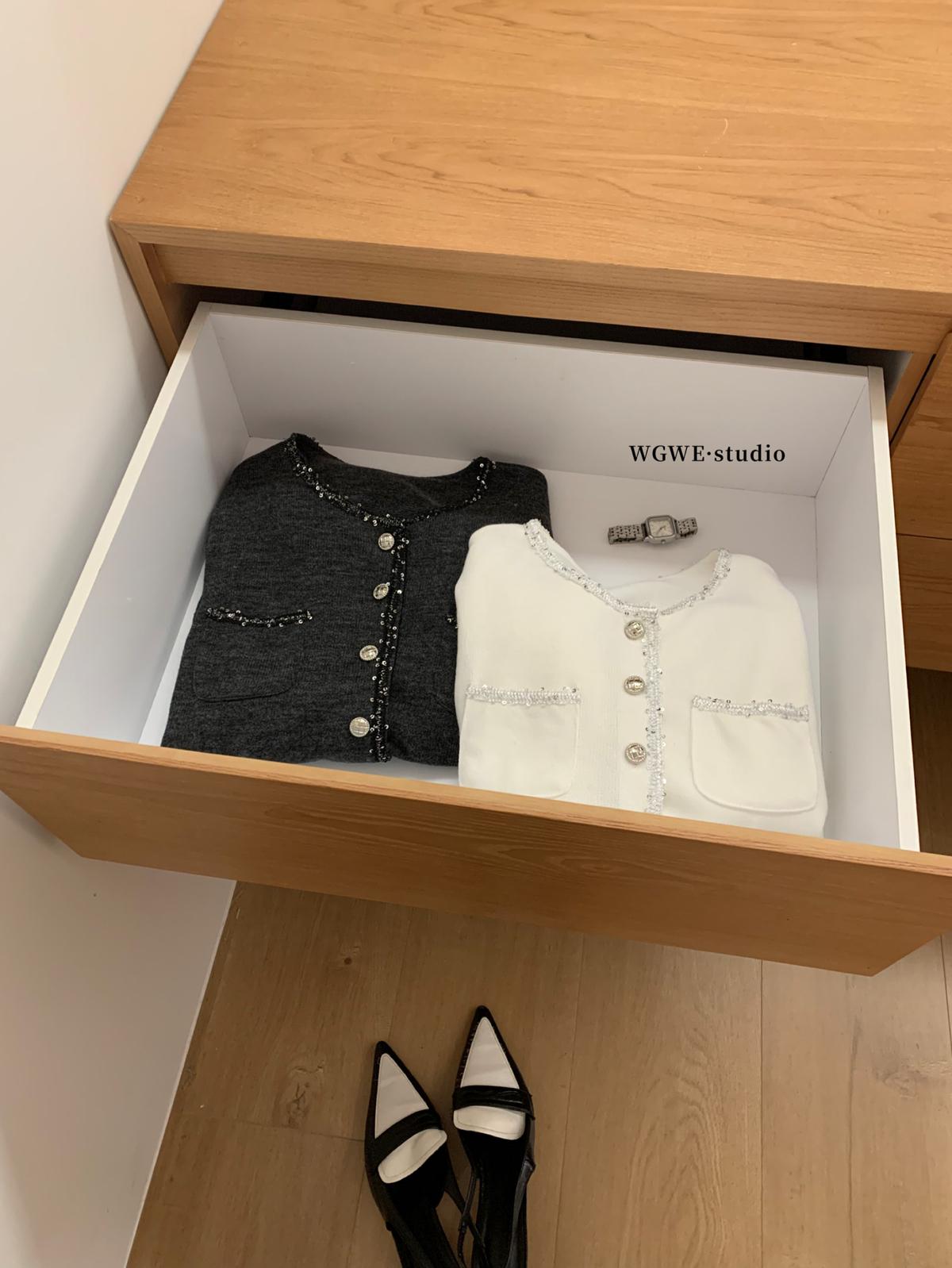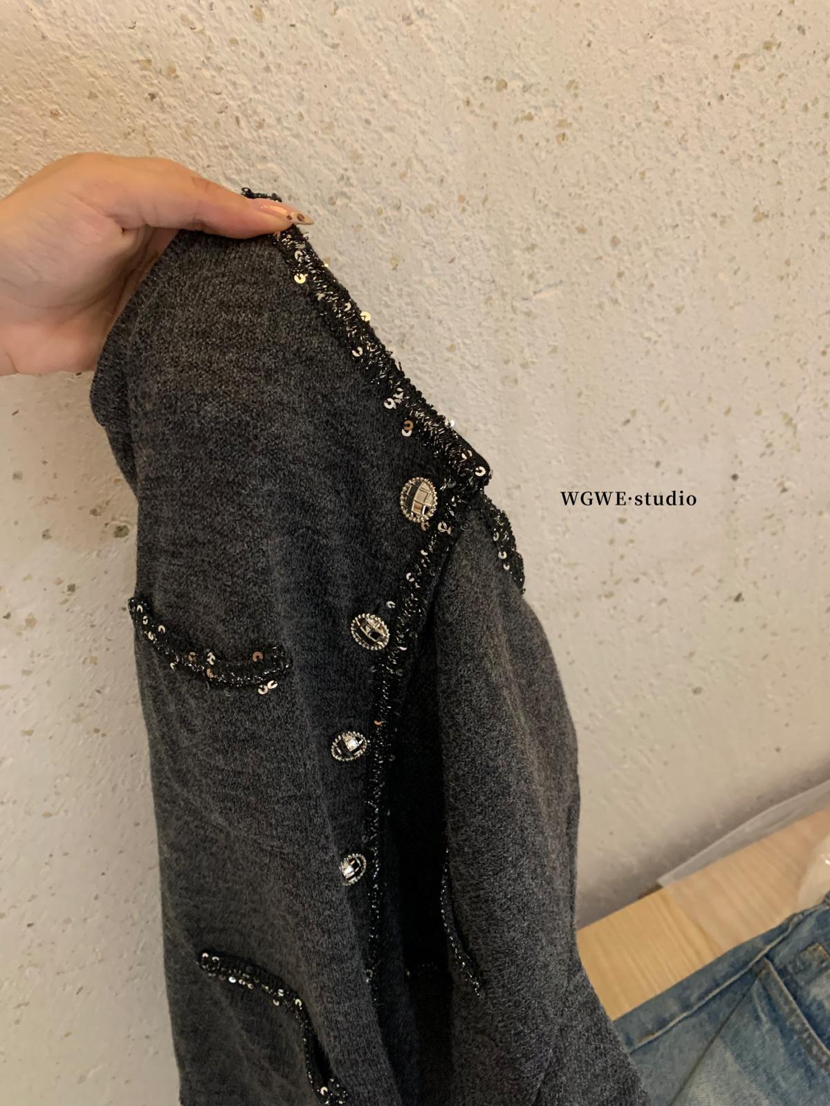 【C7407】口袋拼接長袖女小香風氣質顯瘦百搭開衫上衣針織開衫