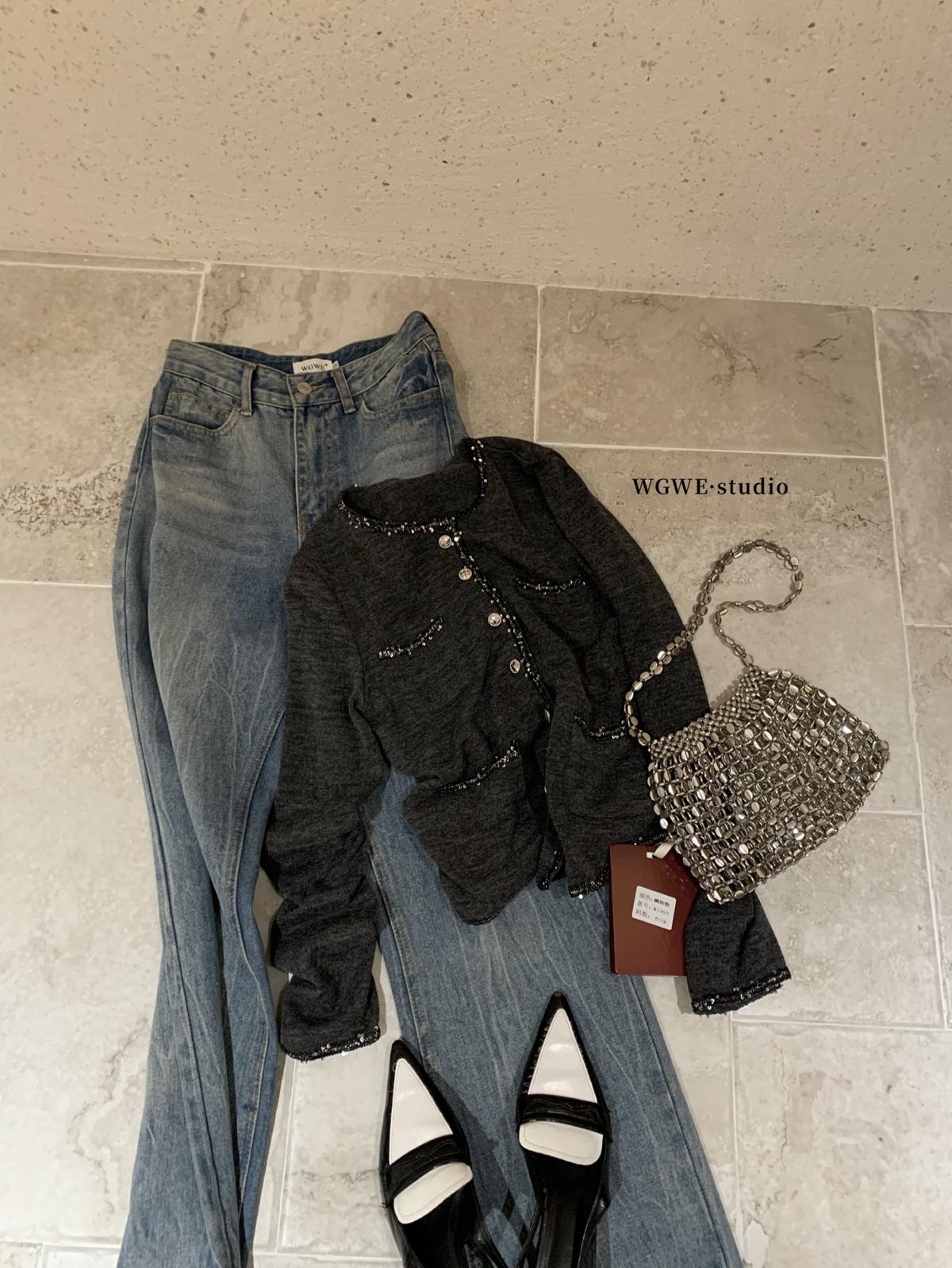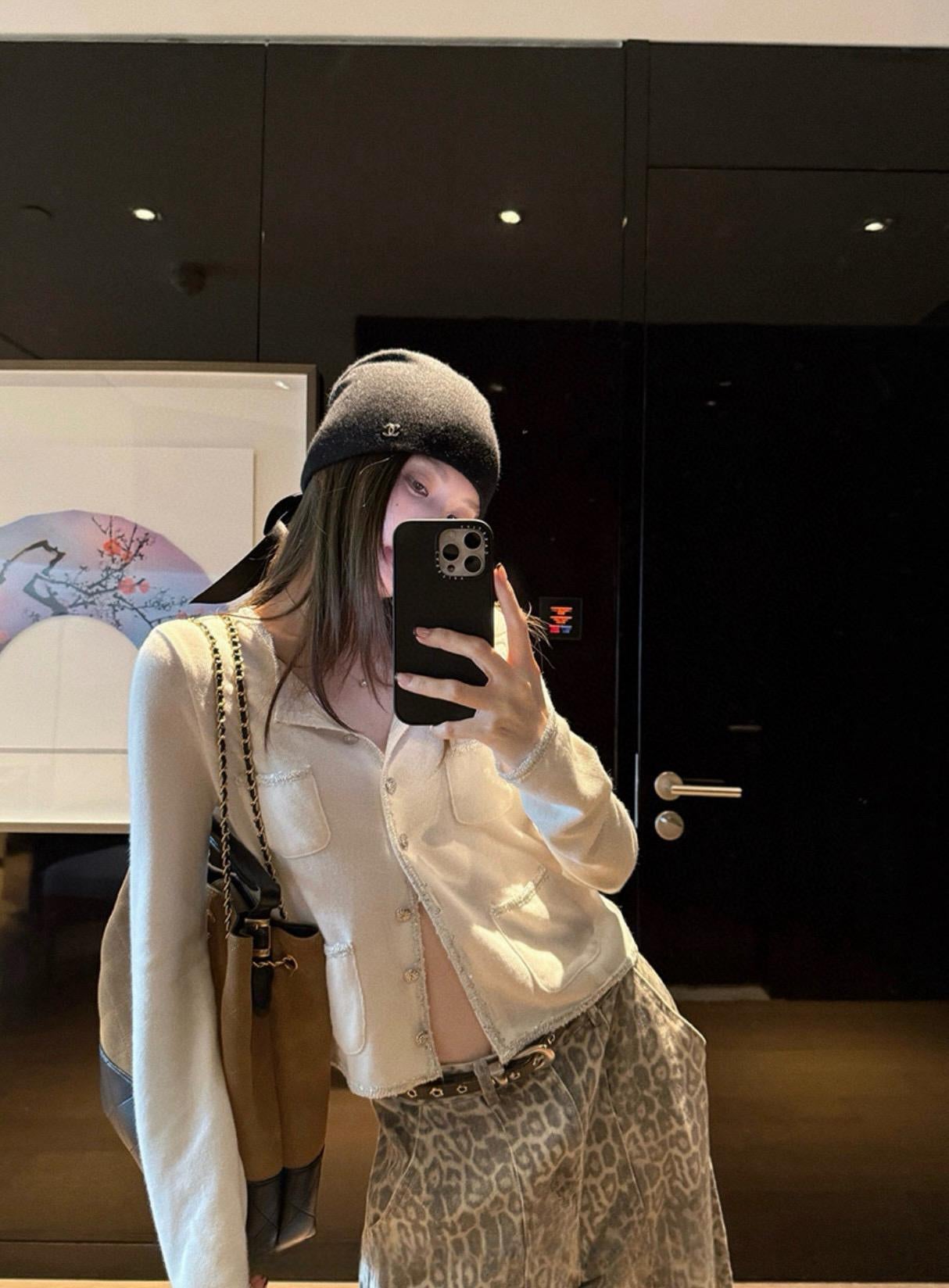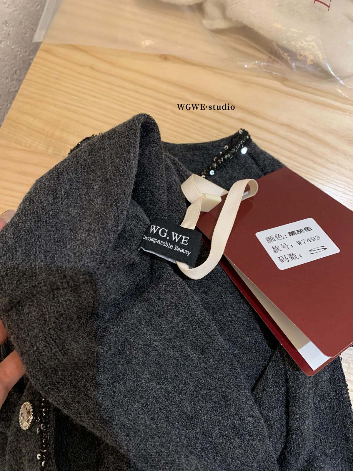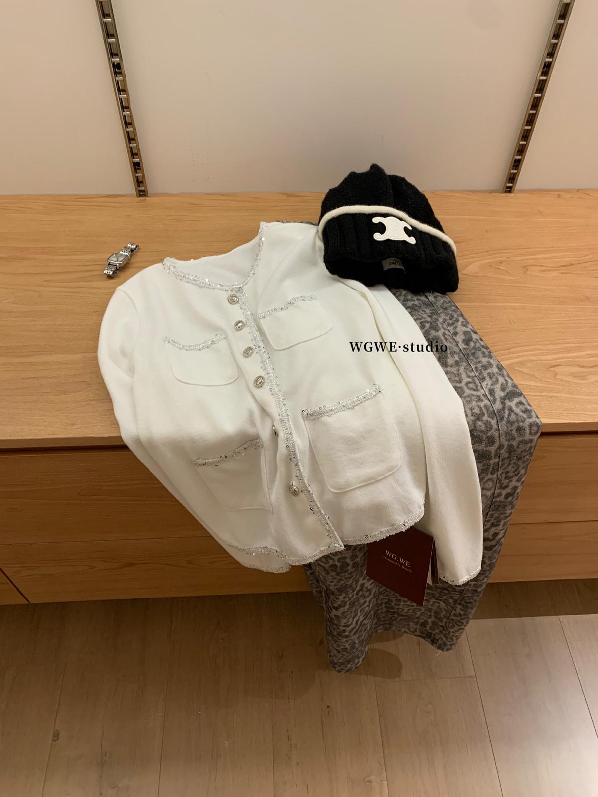 【C7407】口袋拼接長袖女小香風氣質顯瘦百搭開衫上衣針織開衫