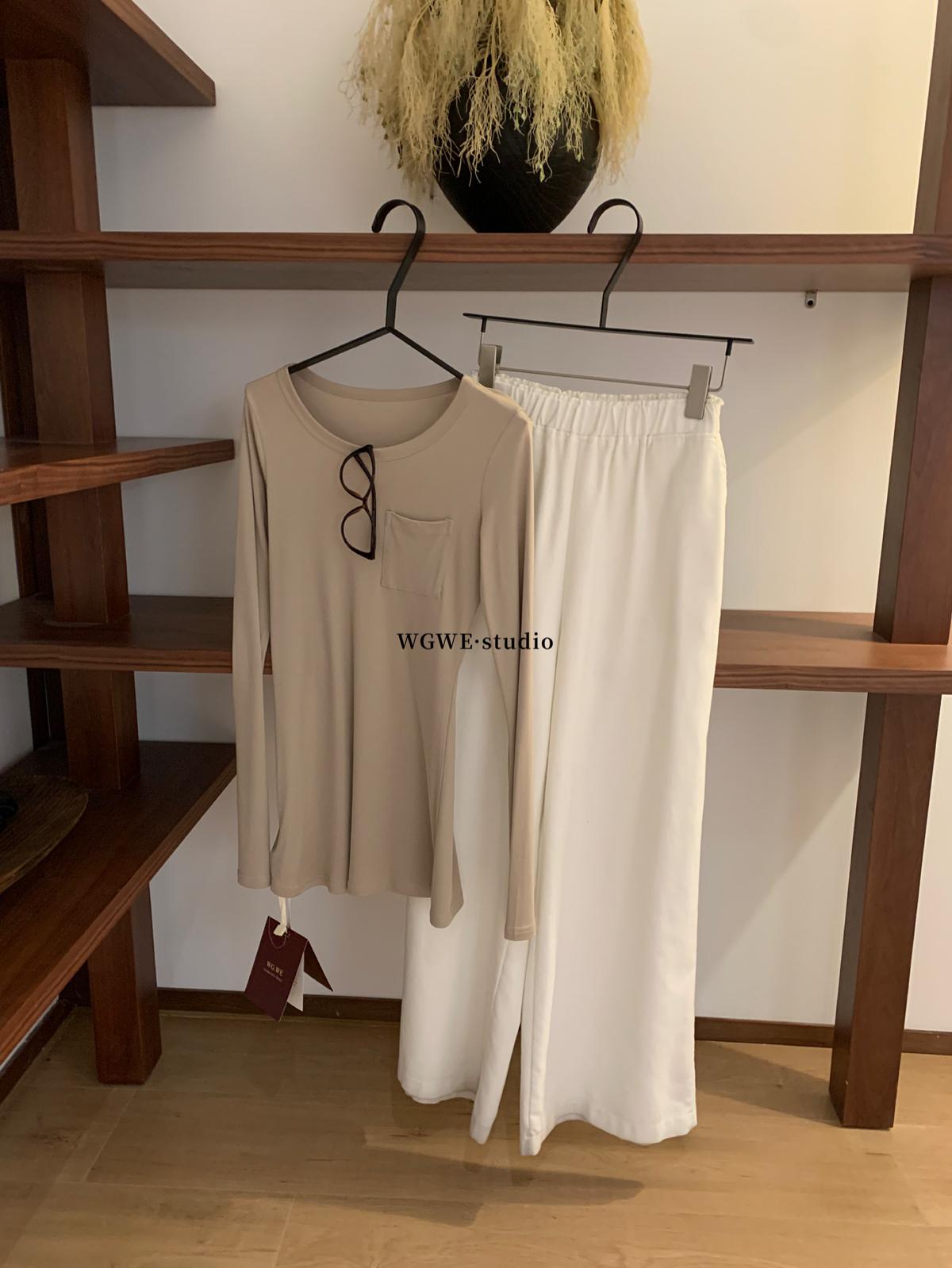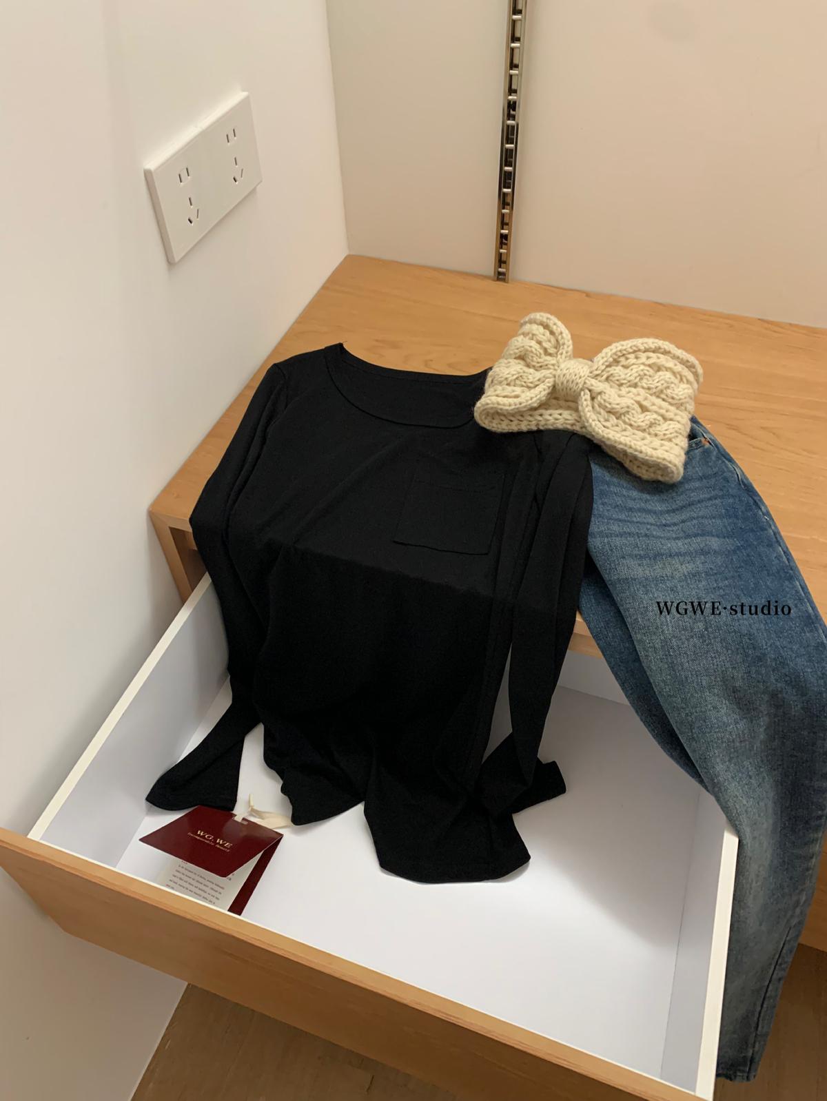 3. 【C7408】法式長袖t恤女內搭打底衫修身顯瘦氣質設計感百搭上衣長袖T恤