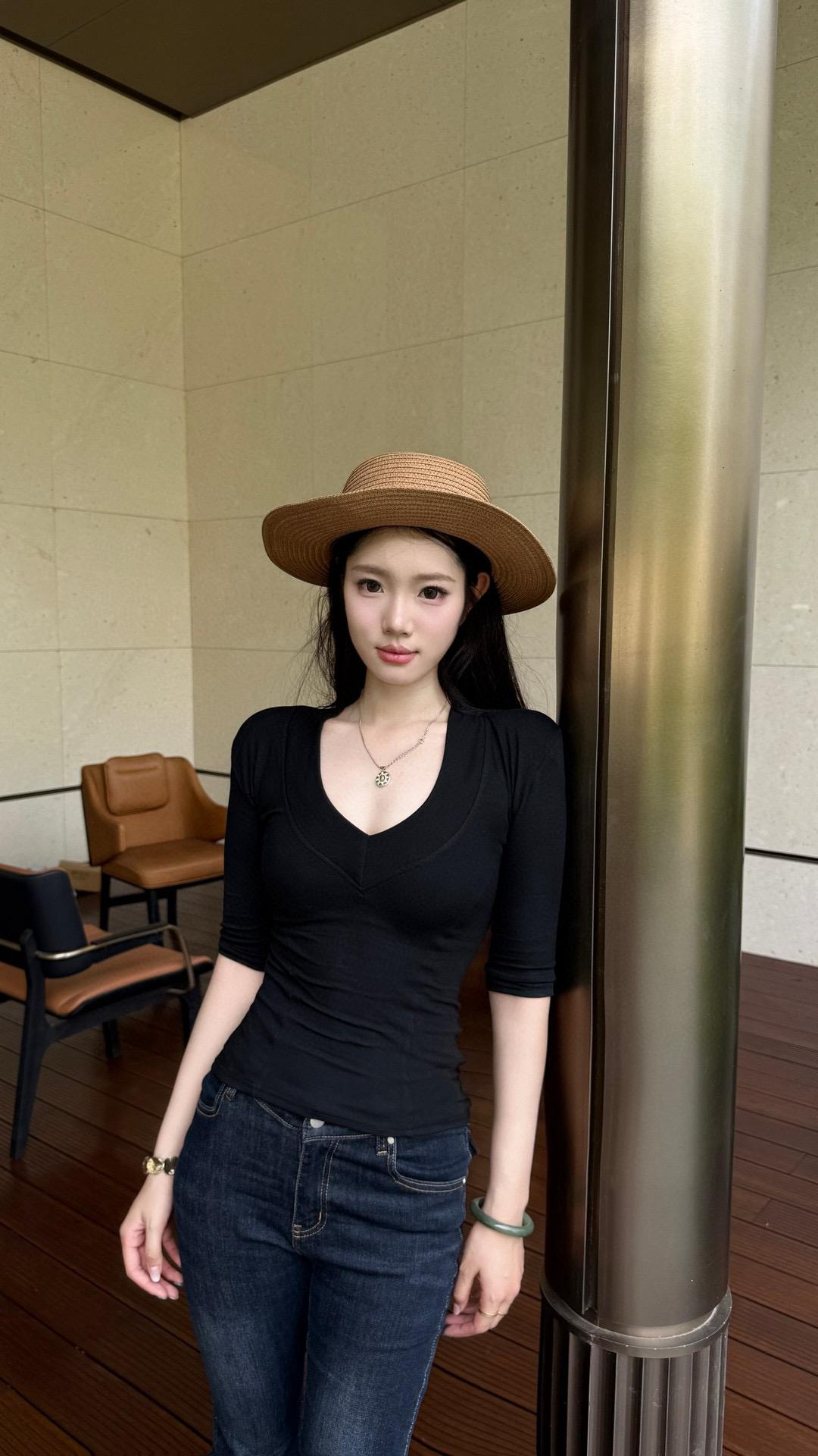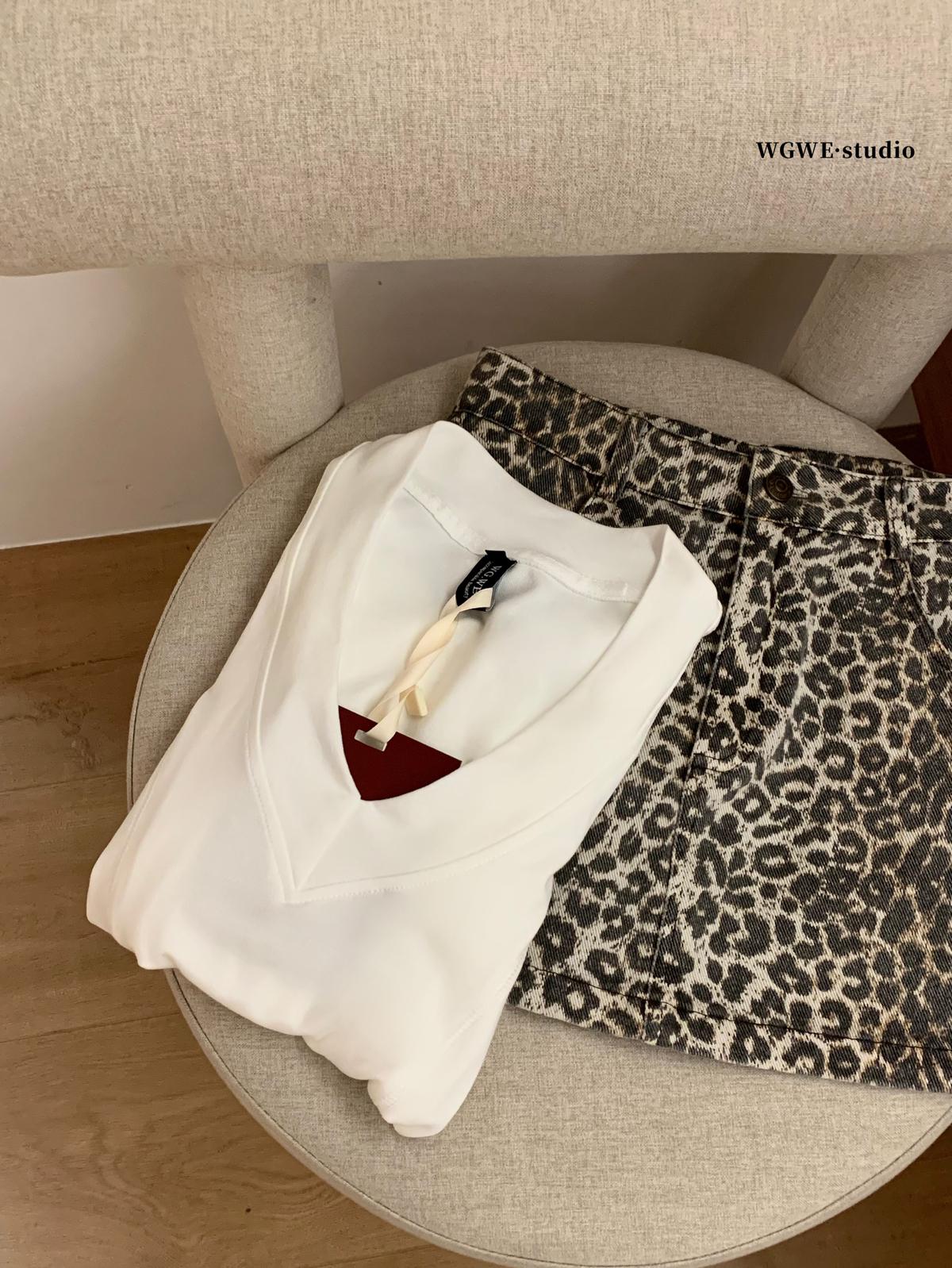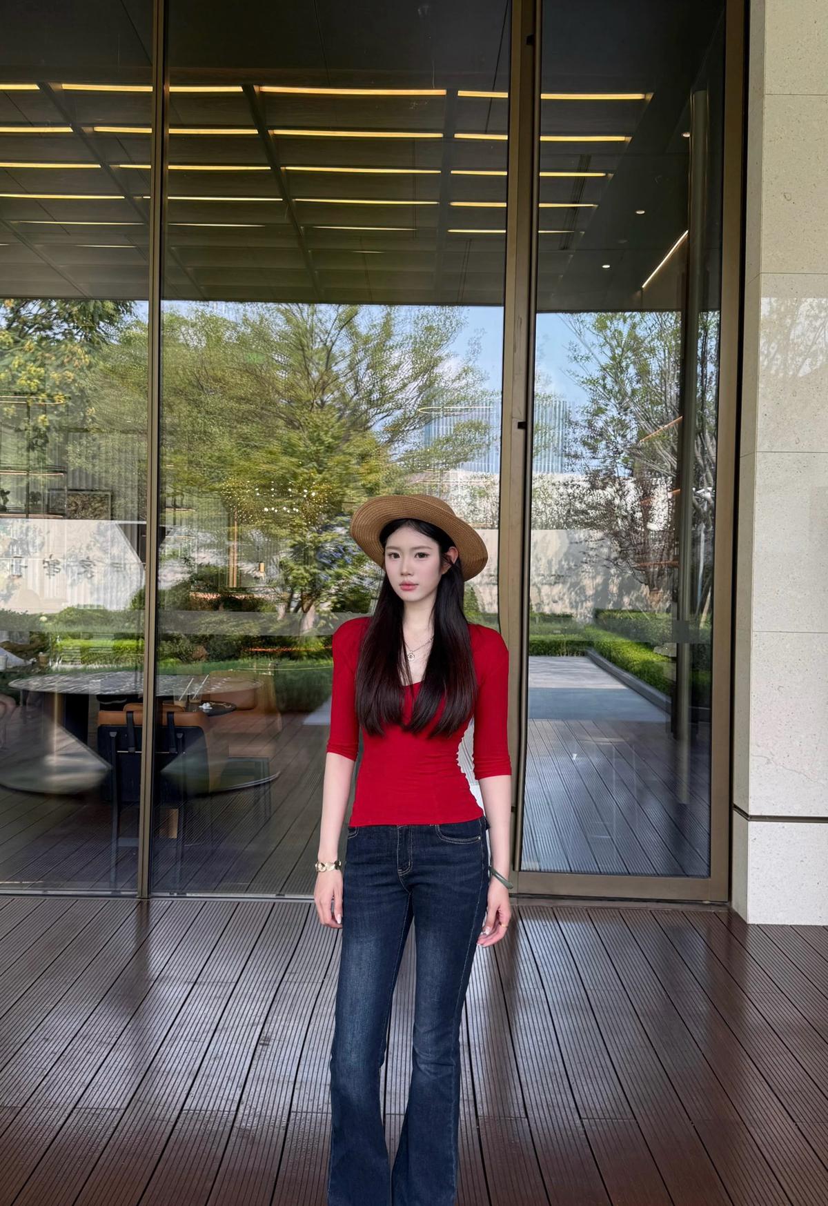 3. 【C7409】韓系辣妹深V領正肩中袖輕熟純欲修身顯瘦內搭短袖T恤