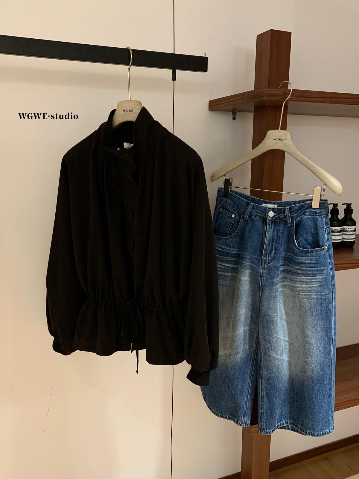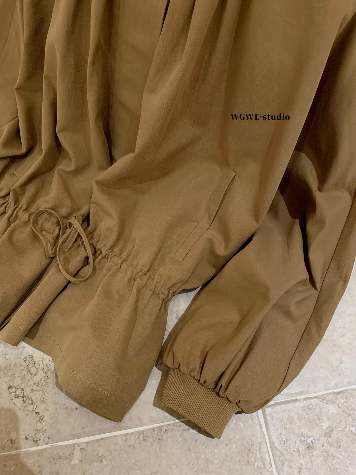 【C7410】立領燈籠袖風衣抽繩收腰設計感小個子時尚風衣