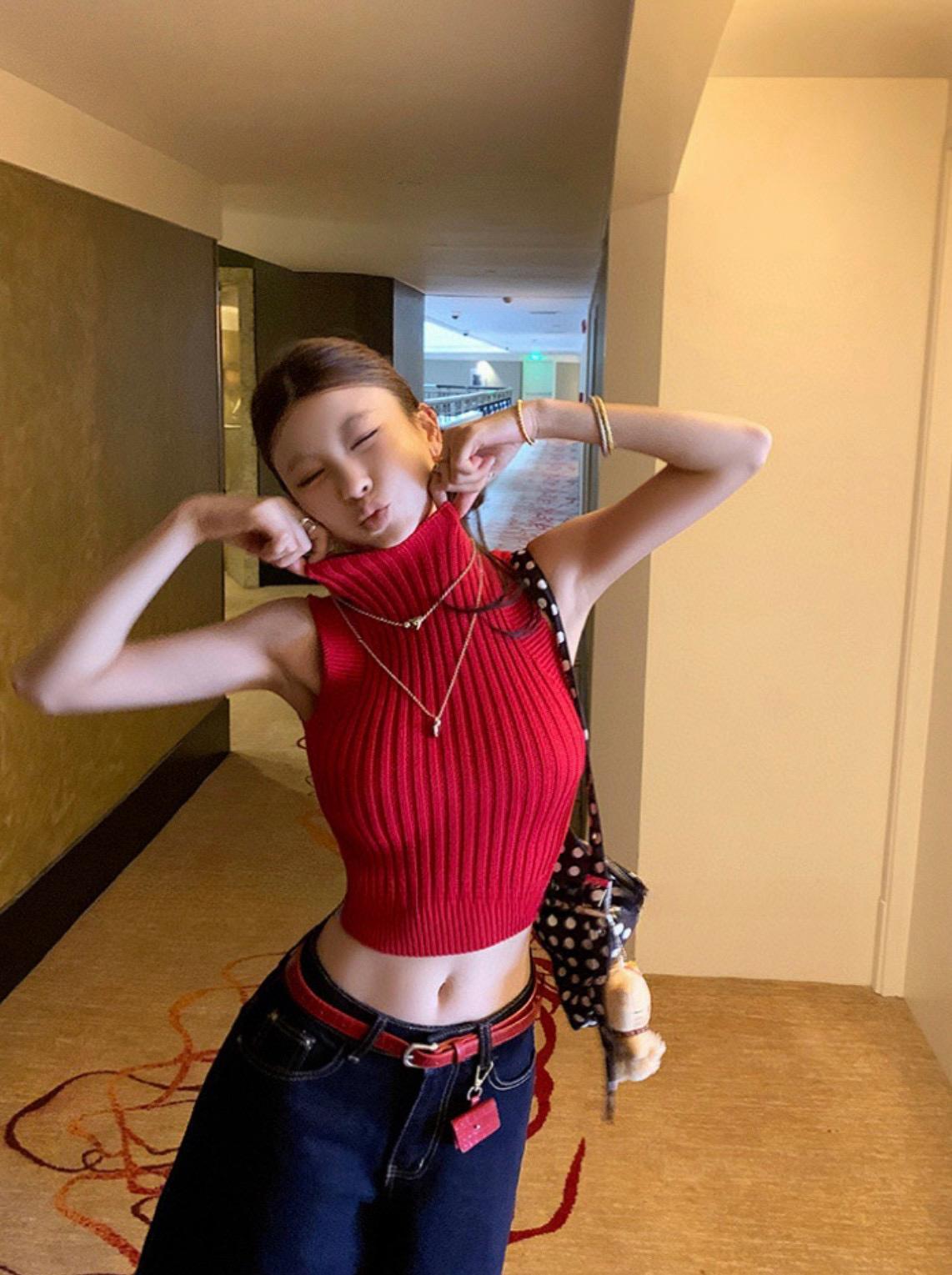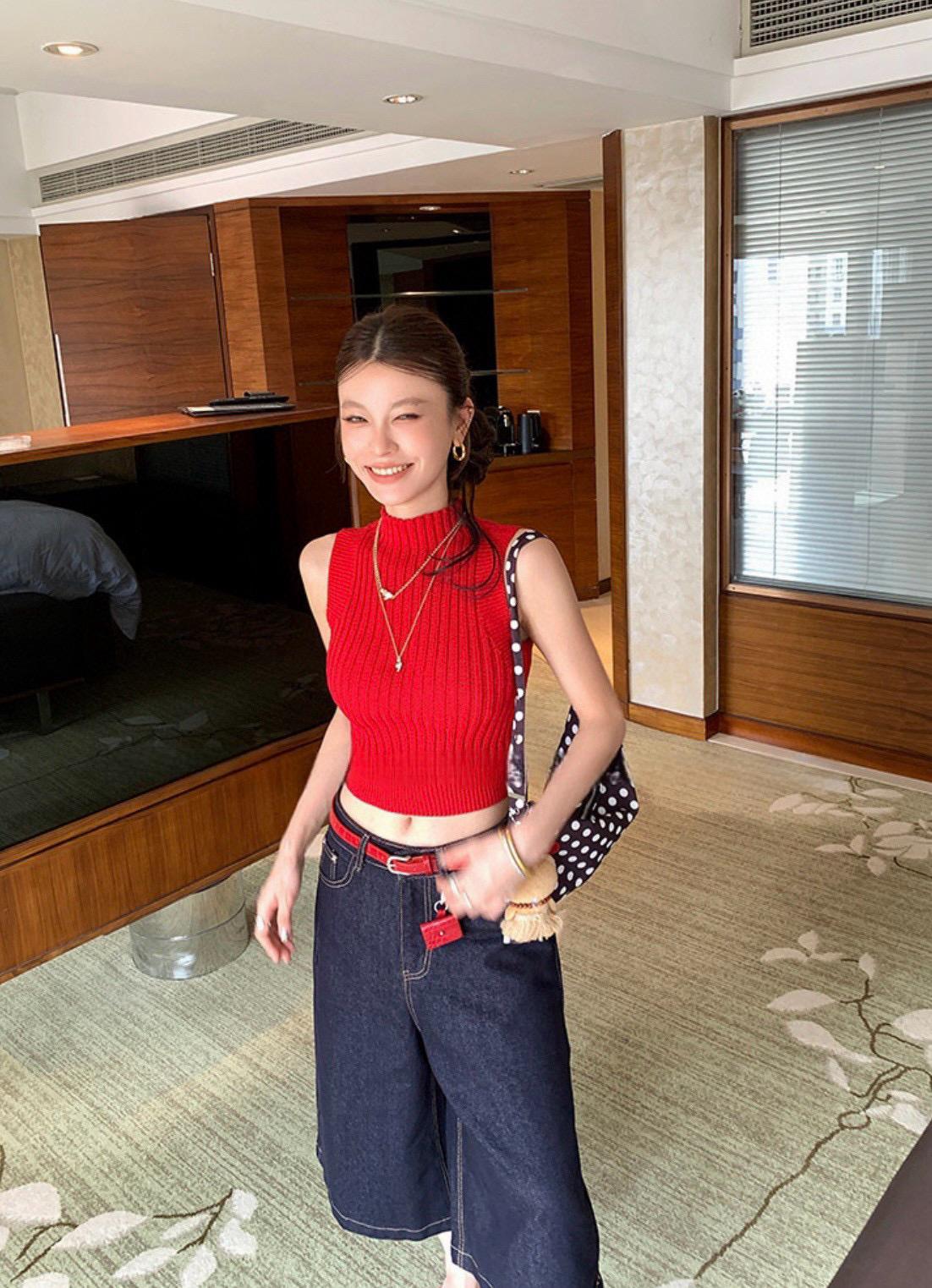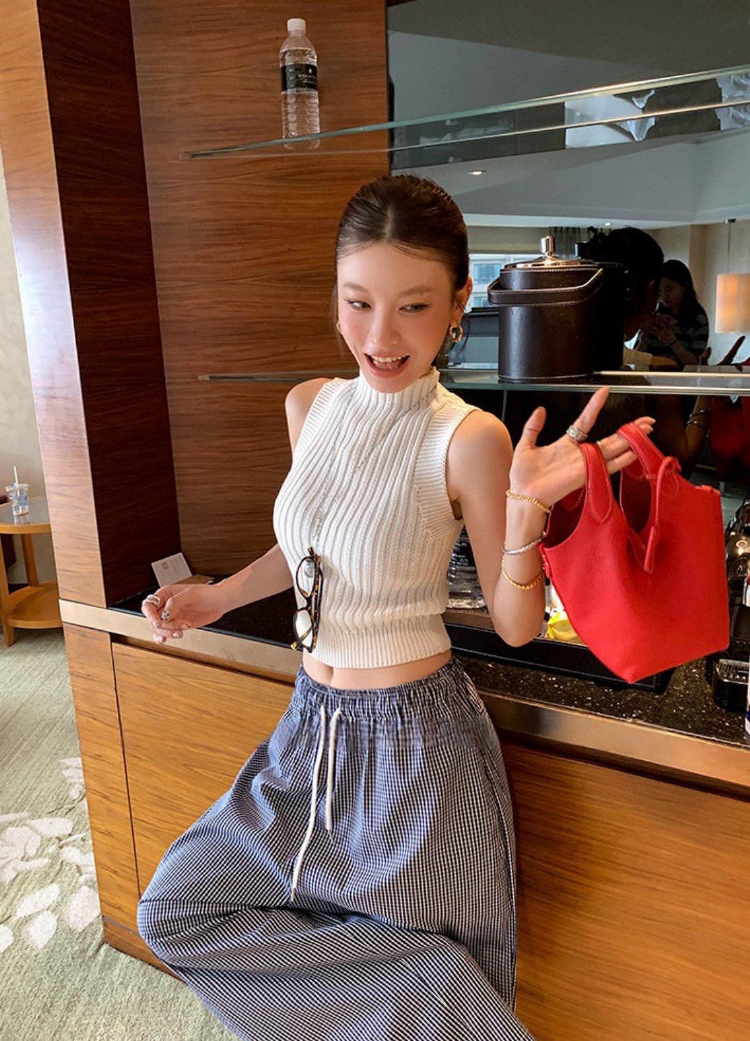 【C7411】簡約風顯瘦針織立領修身甜美氣質背心