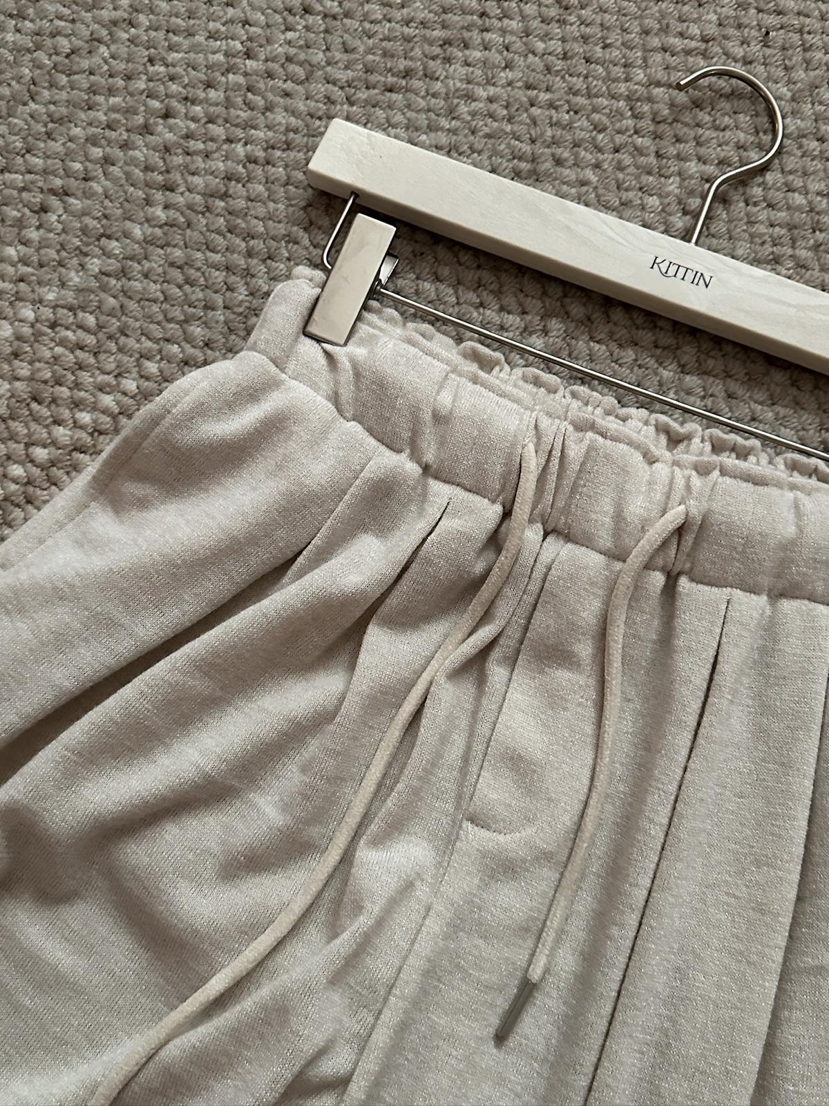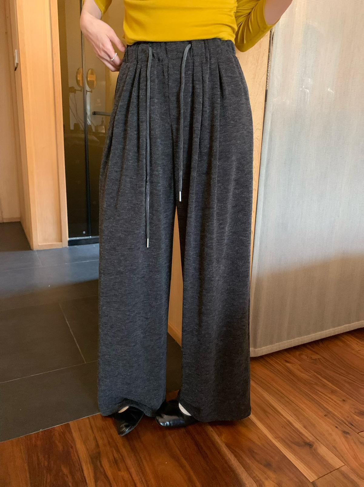 3. 【C7437】簡約軟糯花紗質感鬆緊腰抽繩休閒褲