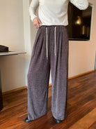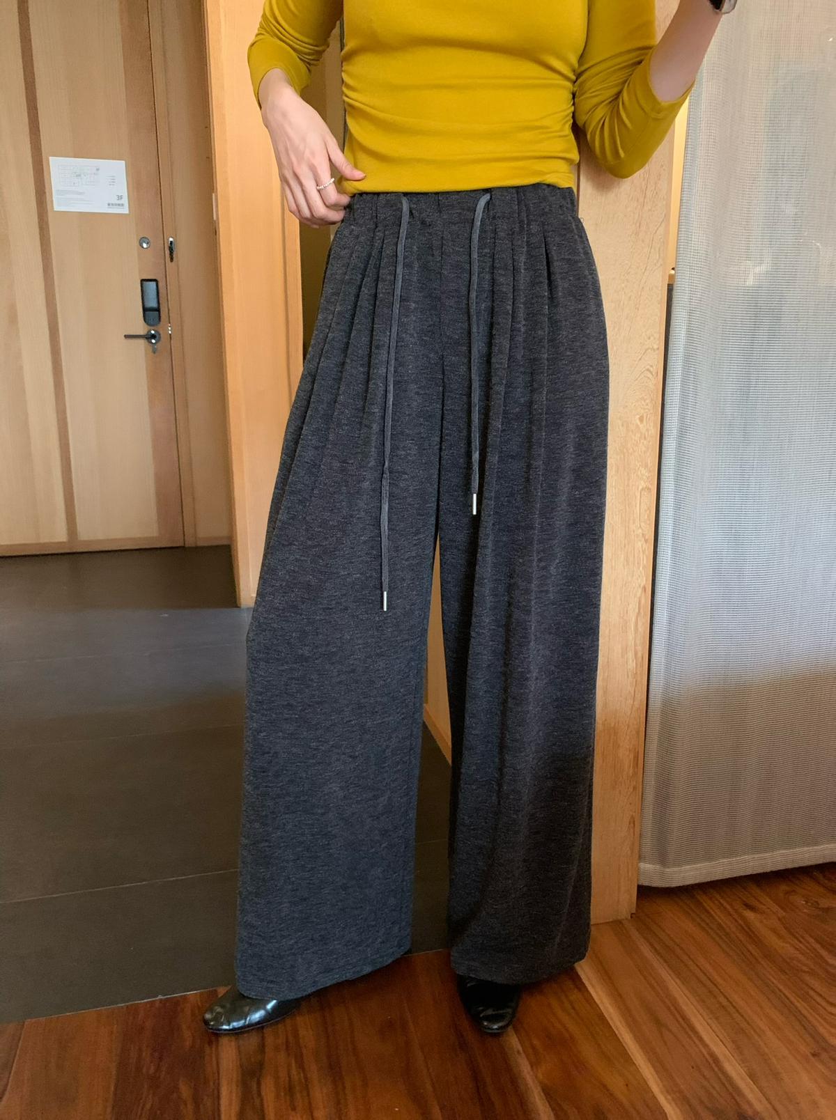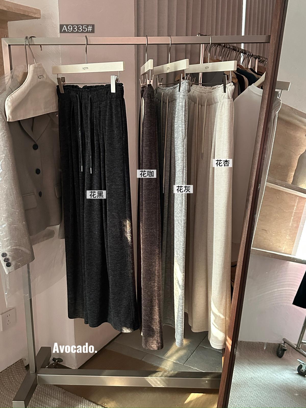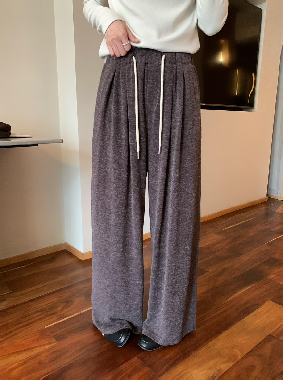 【C7437】簡約軟糯花紗質感鬆緊腰抽繩休閒褲
