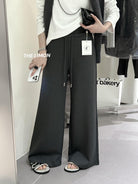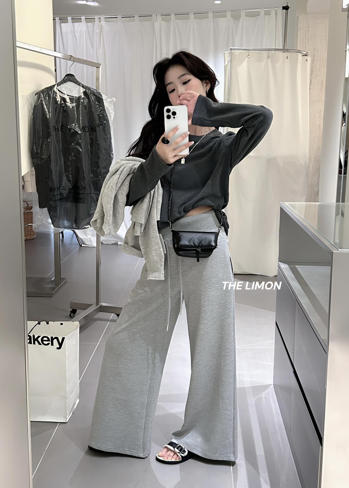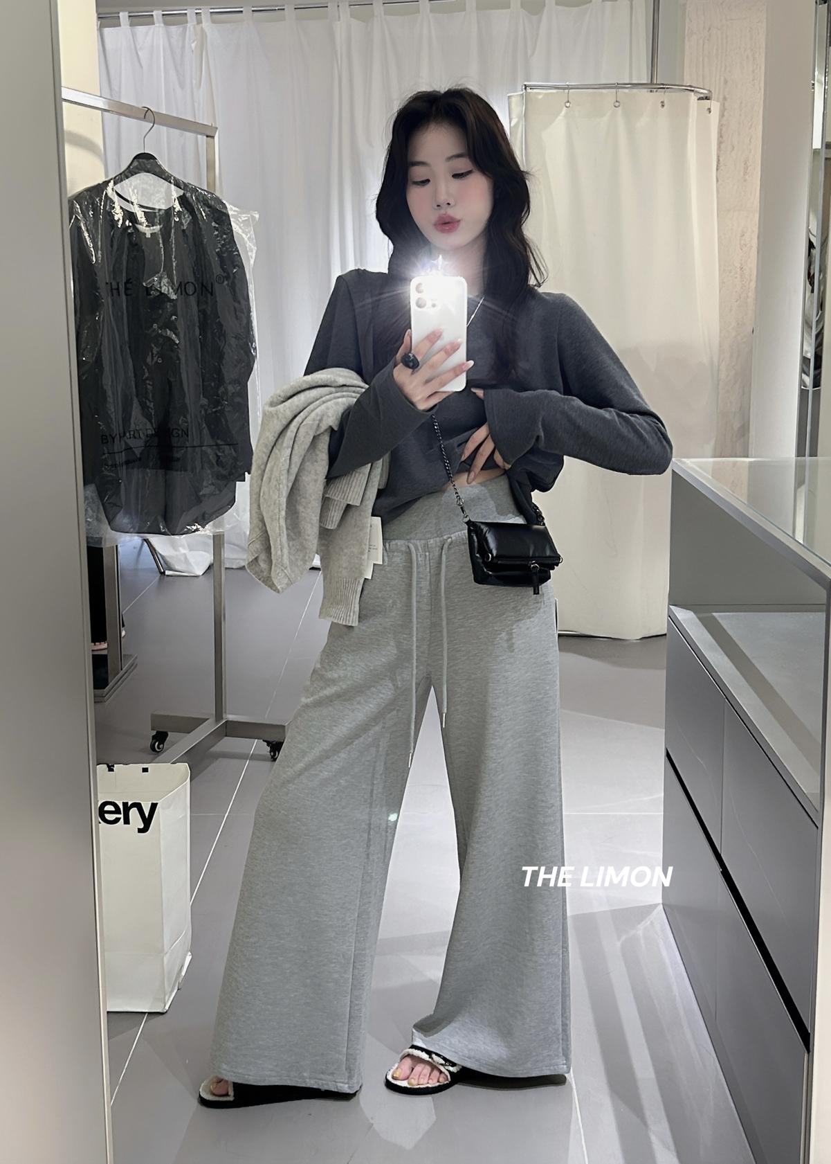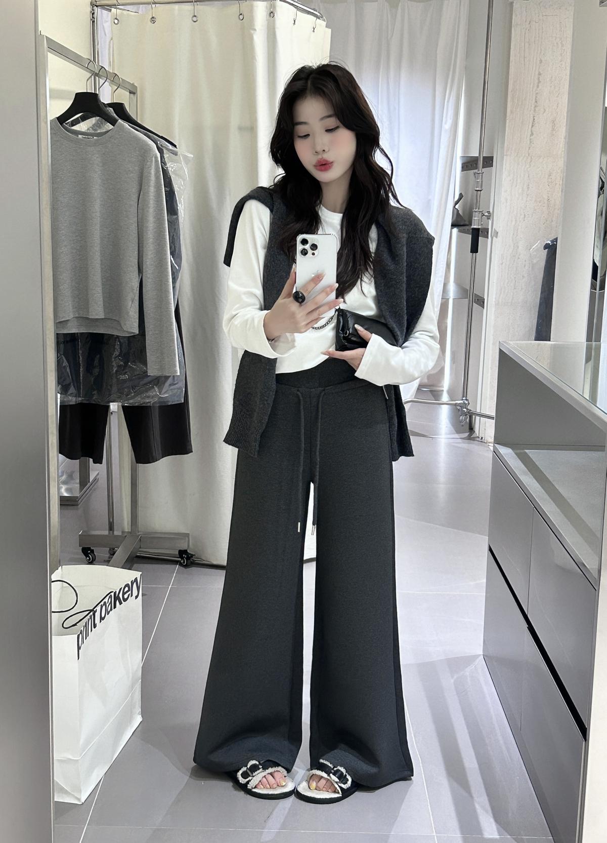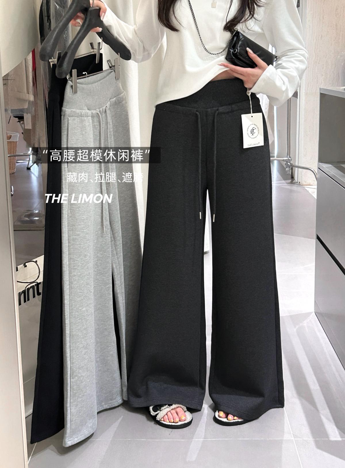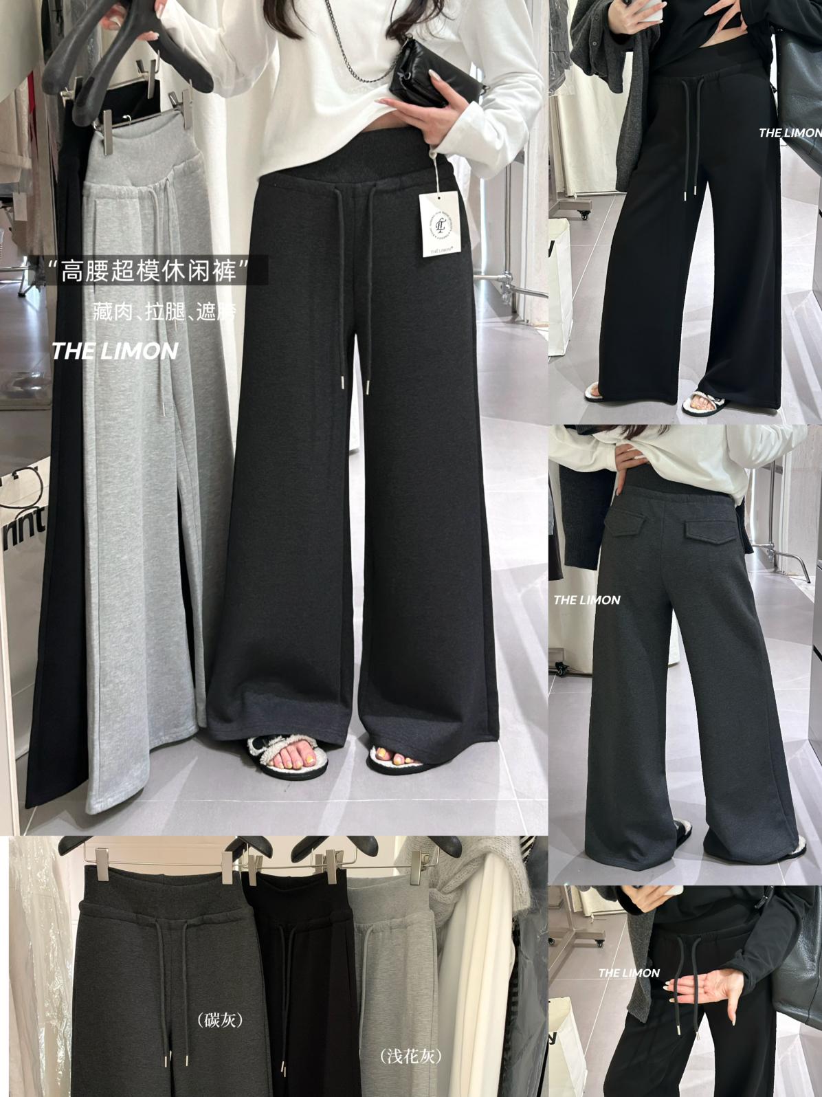 【C7446】超模褲!蛋白糯糯顯瘦抽繩闊腿休閒褲