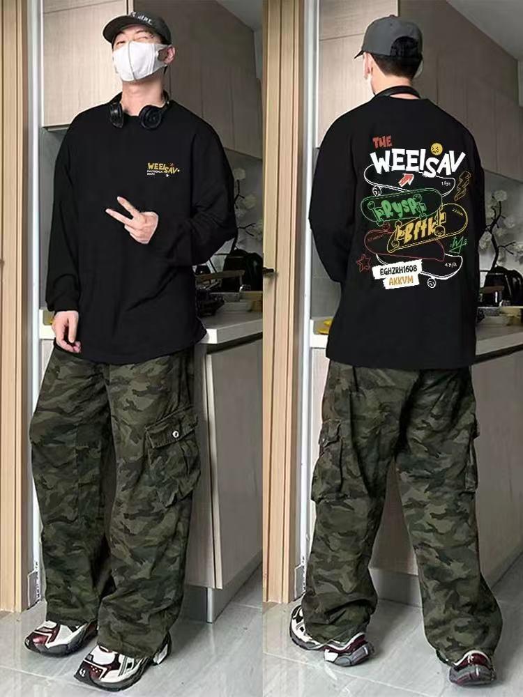 【YS2345】美式時尚潮流寬鬆休閒長袖T恤