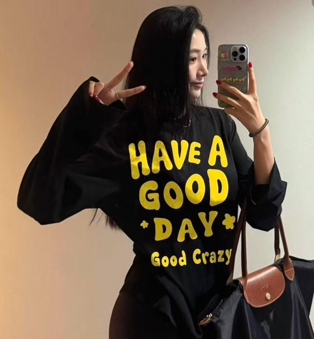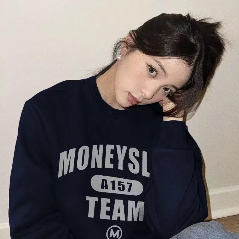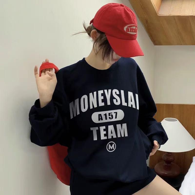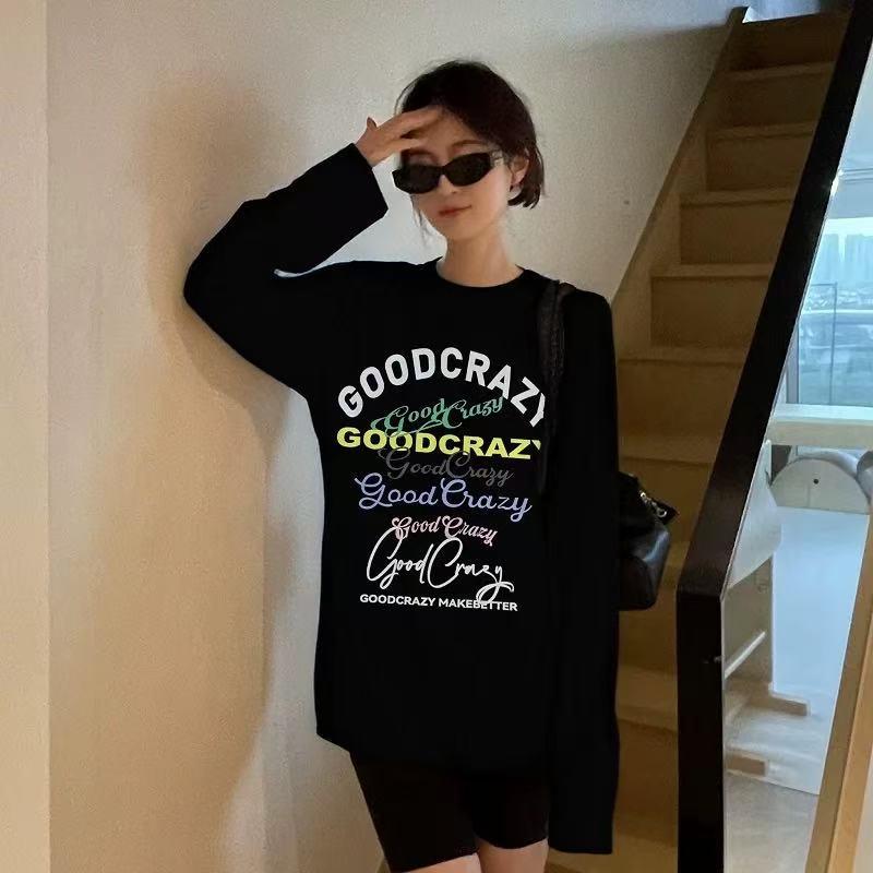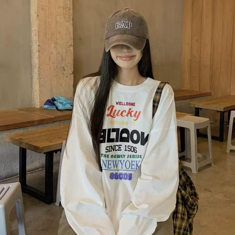 【YS2347】美式圓領寬鬆休閒百搭長袖T恤