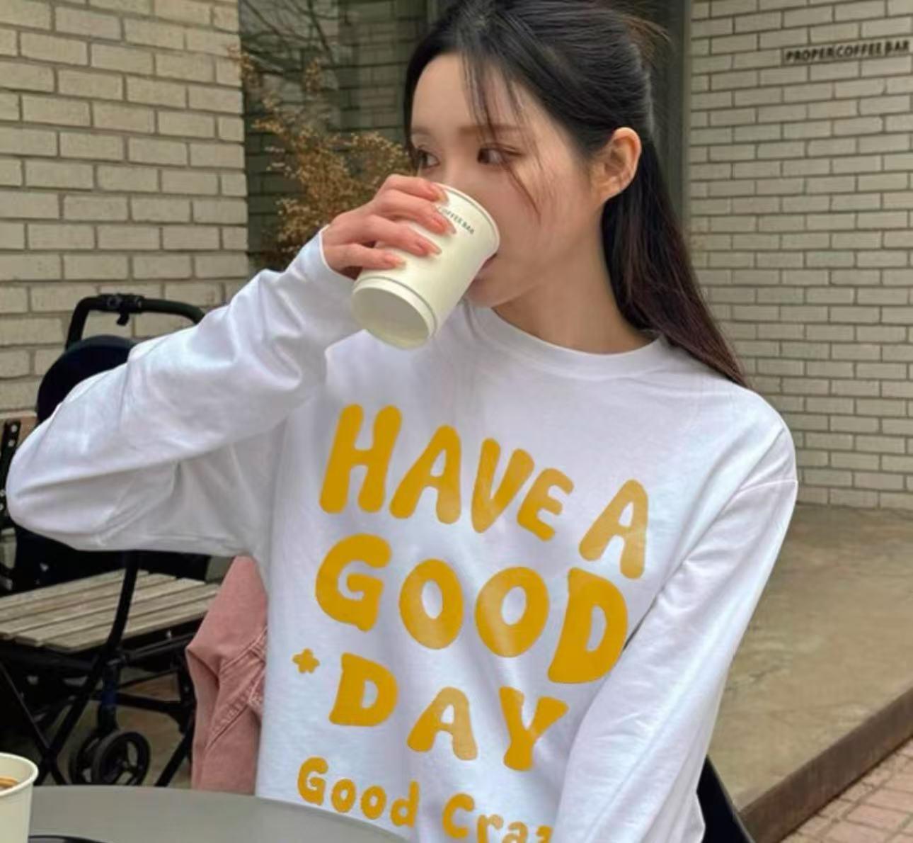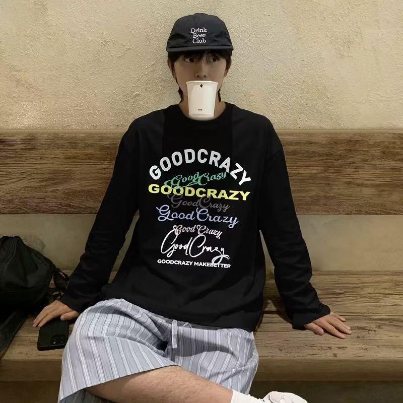 【YS2344】美式時尚潮流休閒字母印花時尚長袖T恤