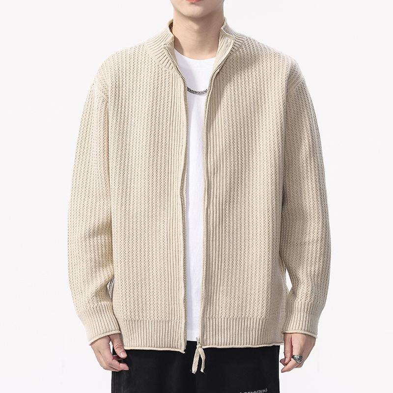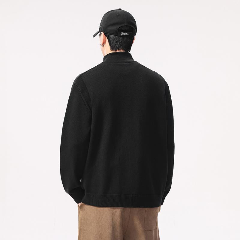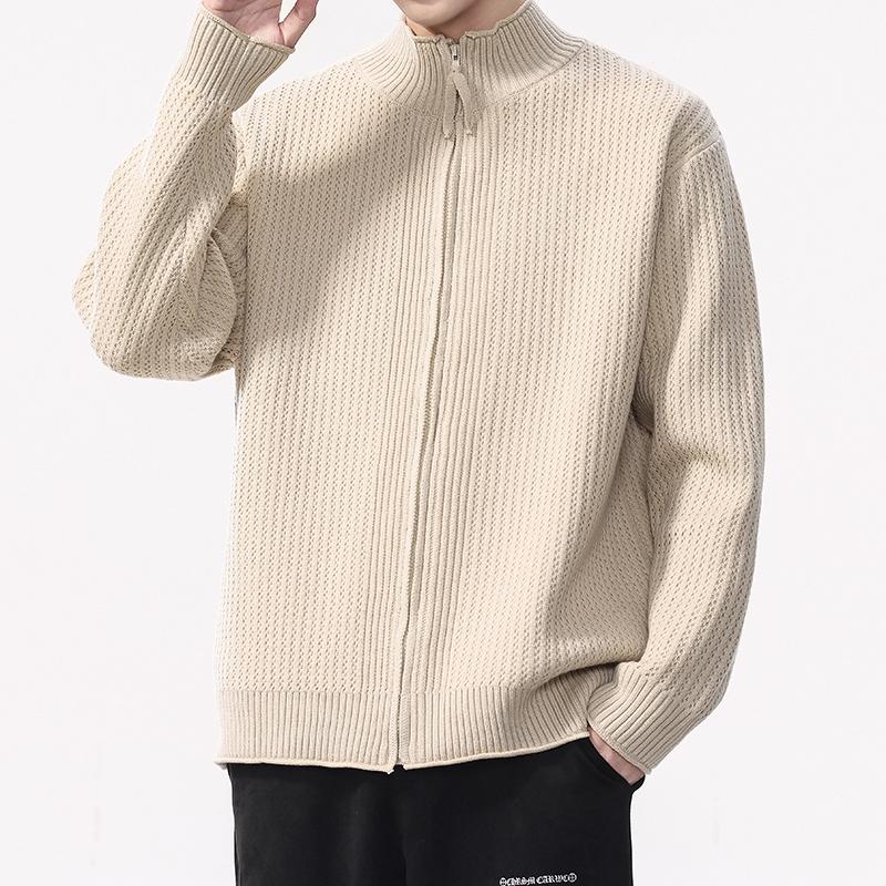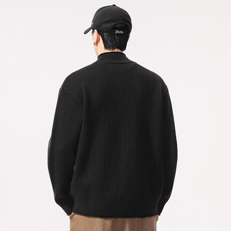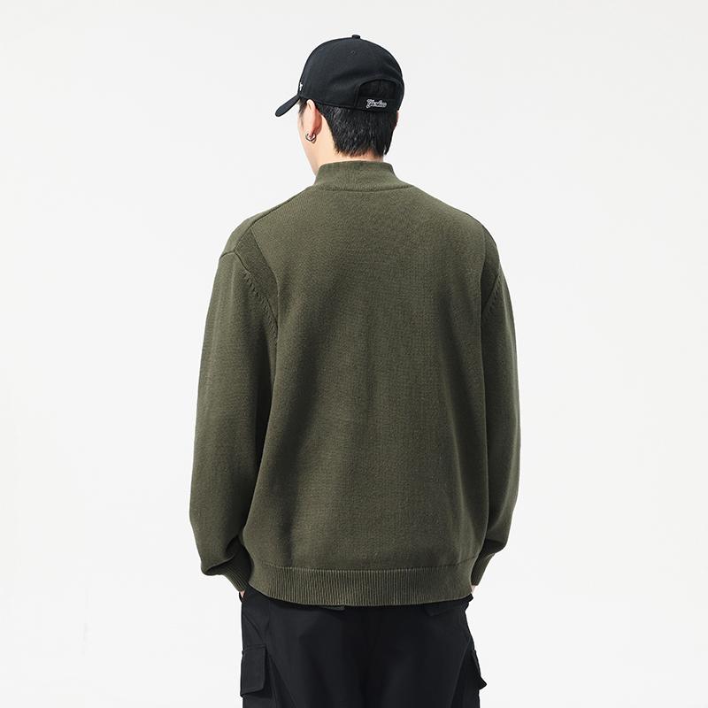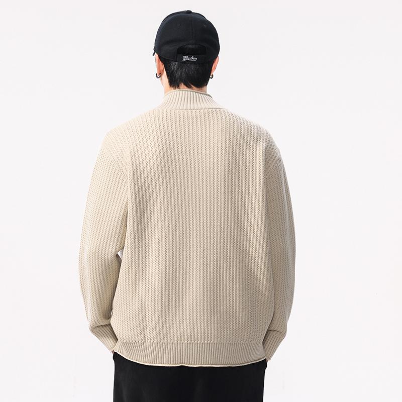 【YS2355】潮牌慵懶感寬鬆舒適半高領拉鍊開衫保暖毛衣
