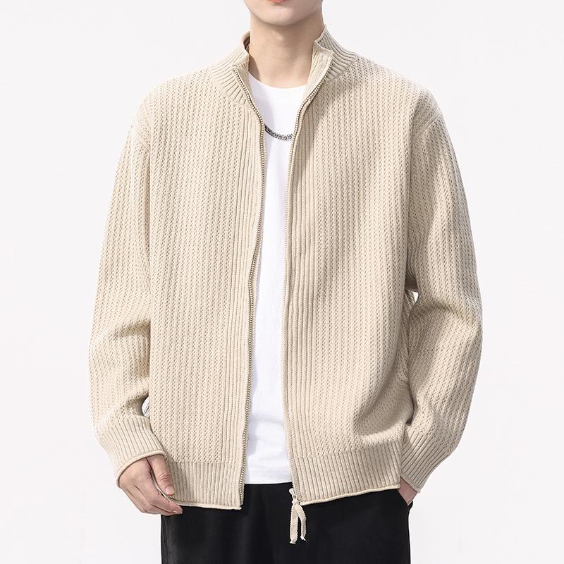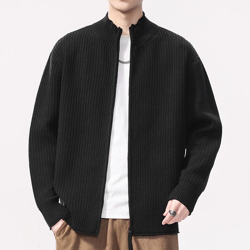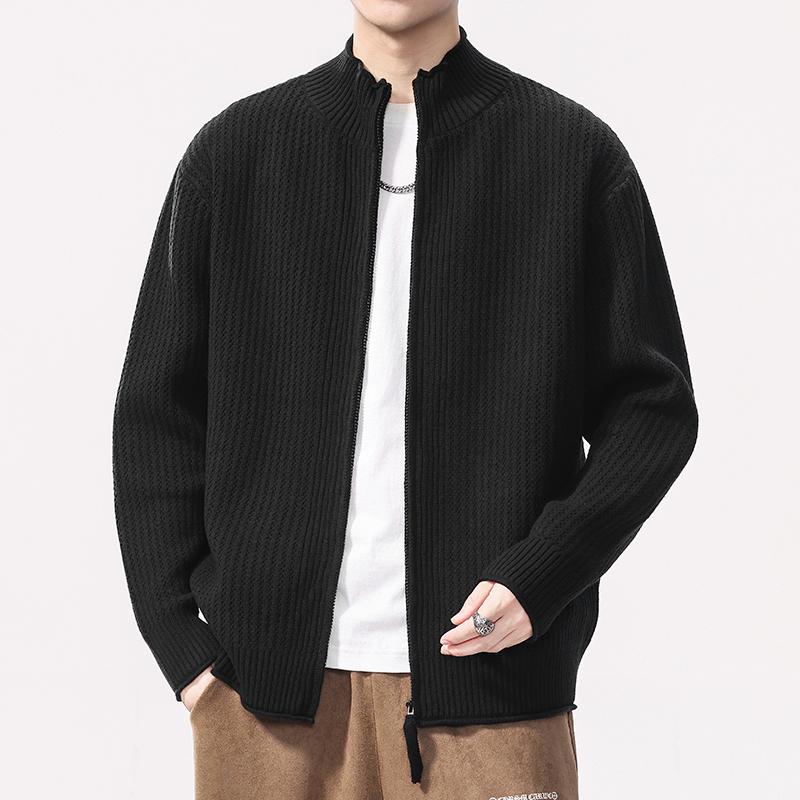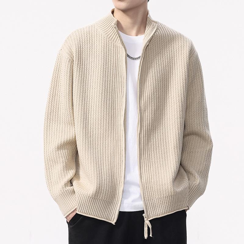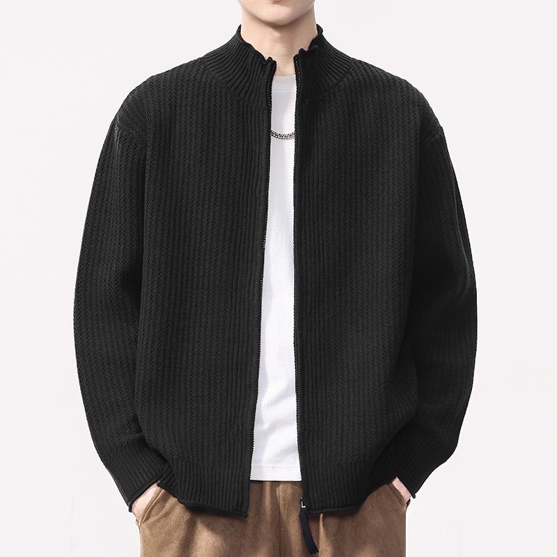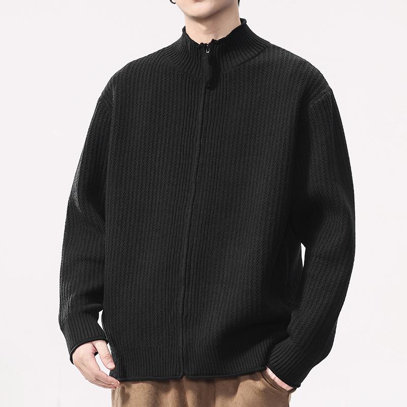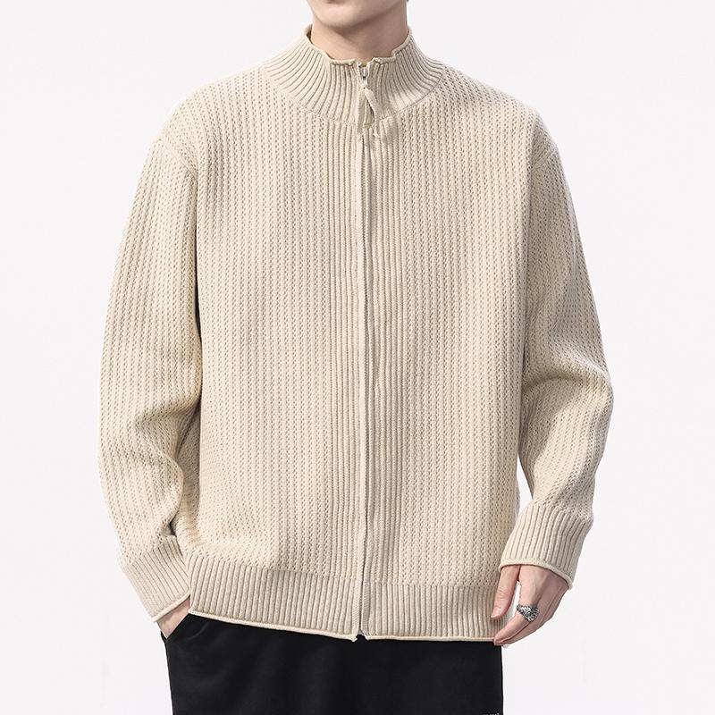 【YS2355】潮牌慵懶感寬鬆舒適半高領拉鍊開衫保暖毛衣