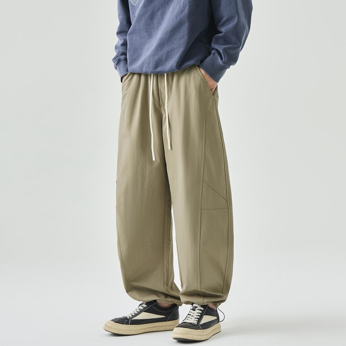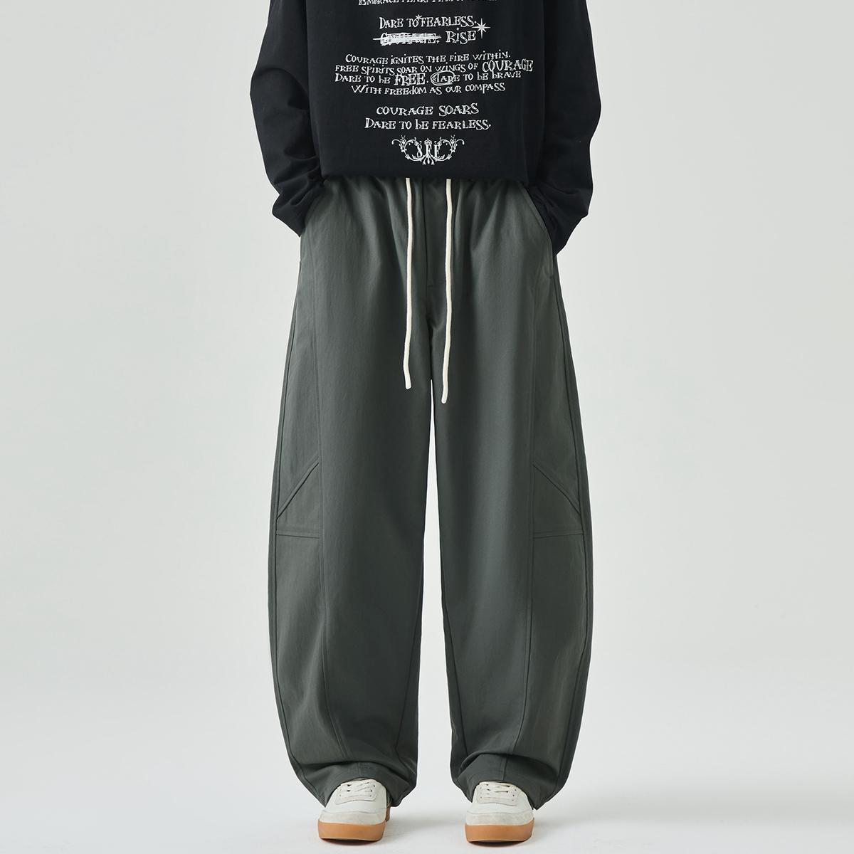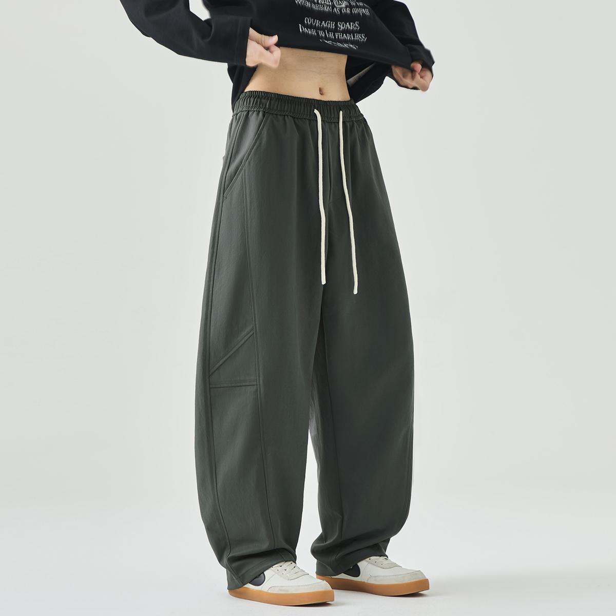 【YS2358】潮牌大彎刀包容性強寬鬆鬆緊腰休閒褲(配腰繩)