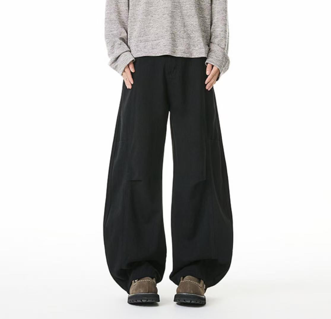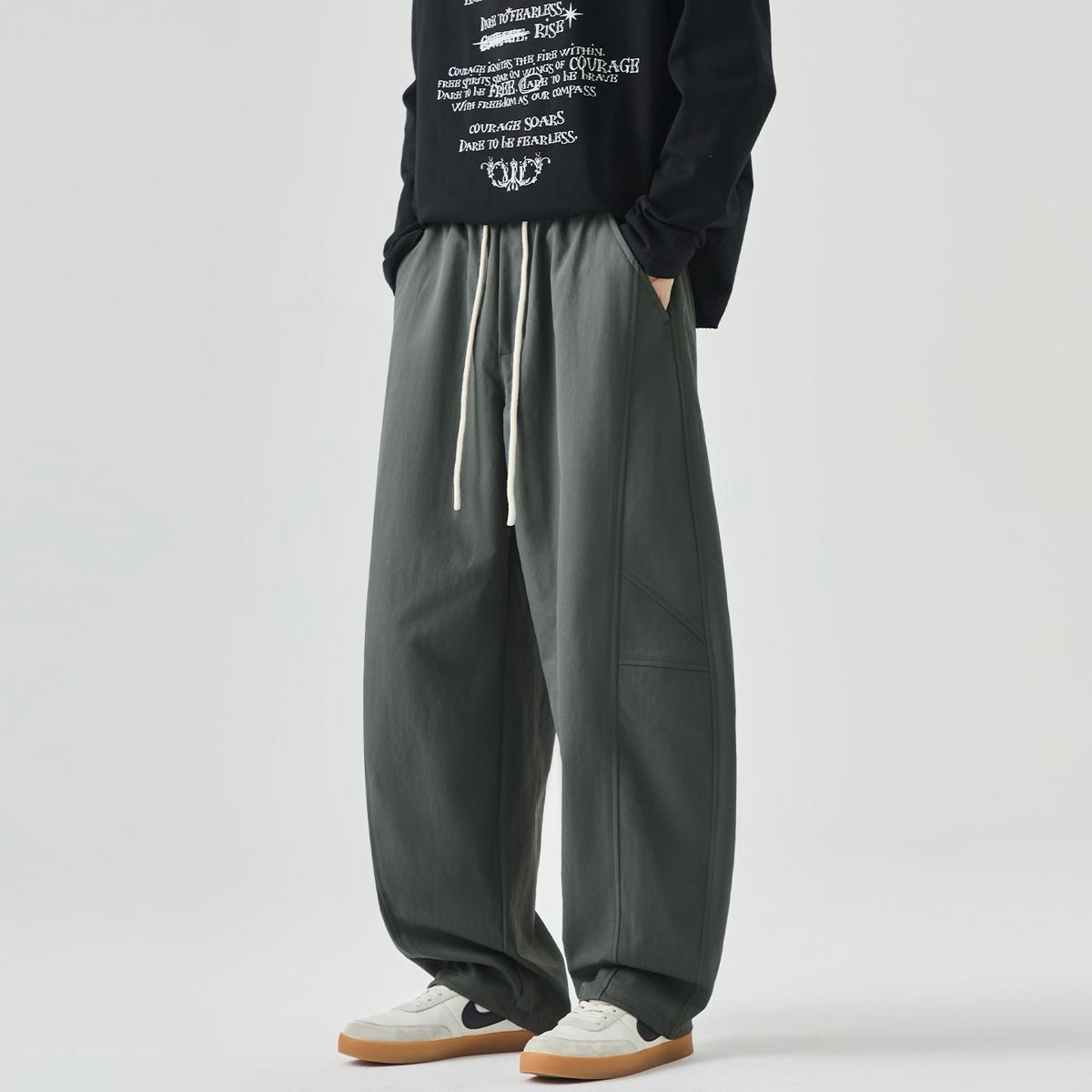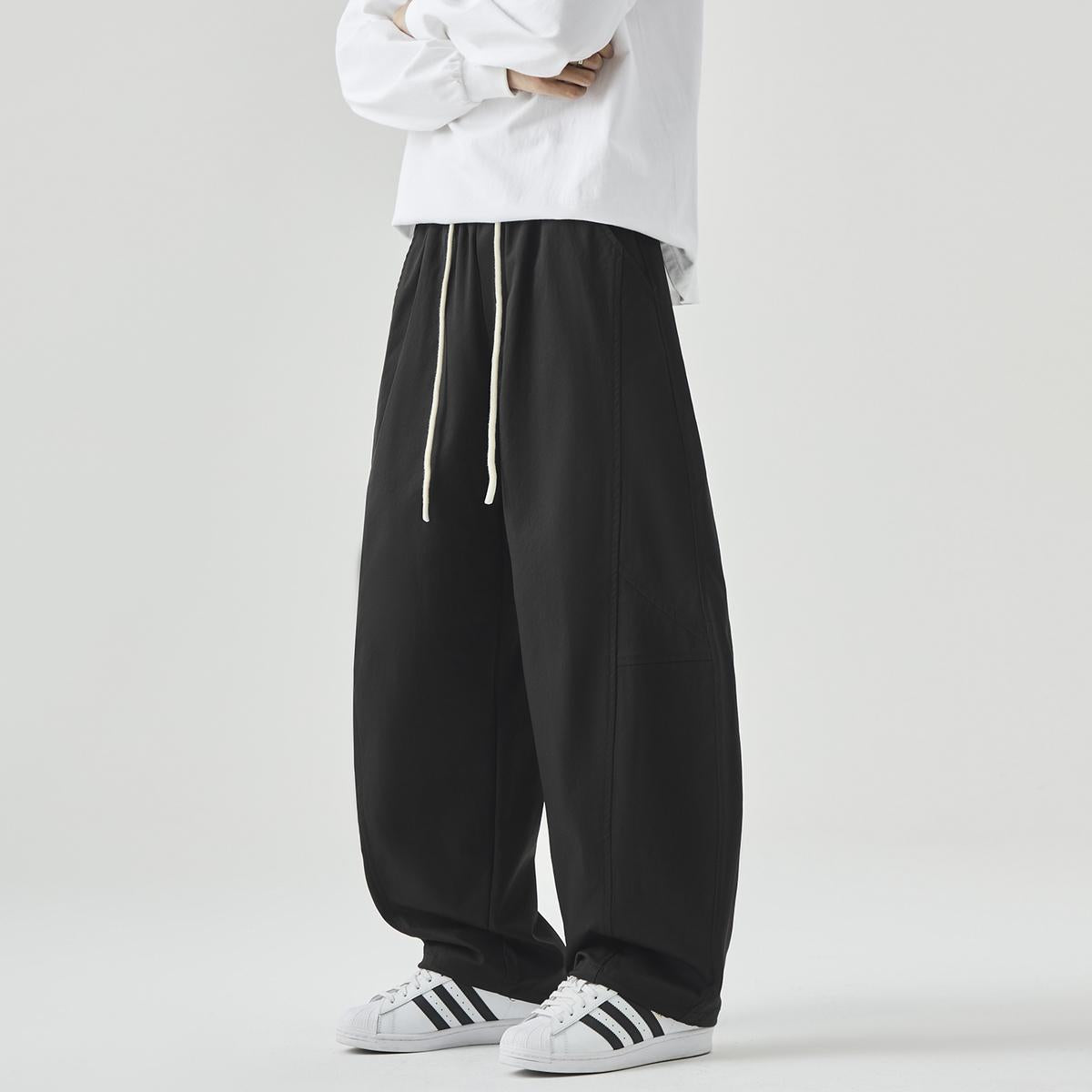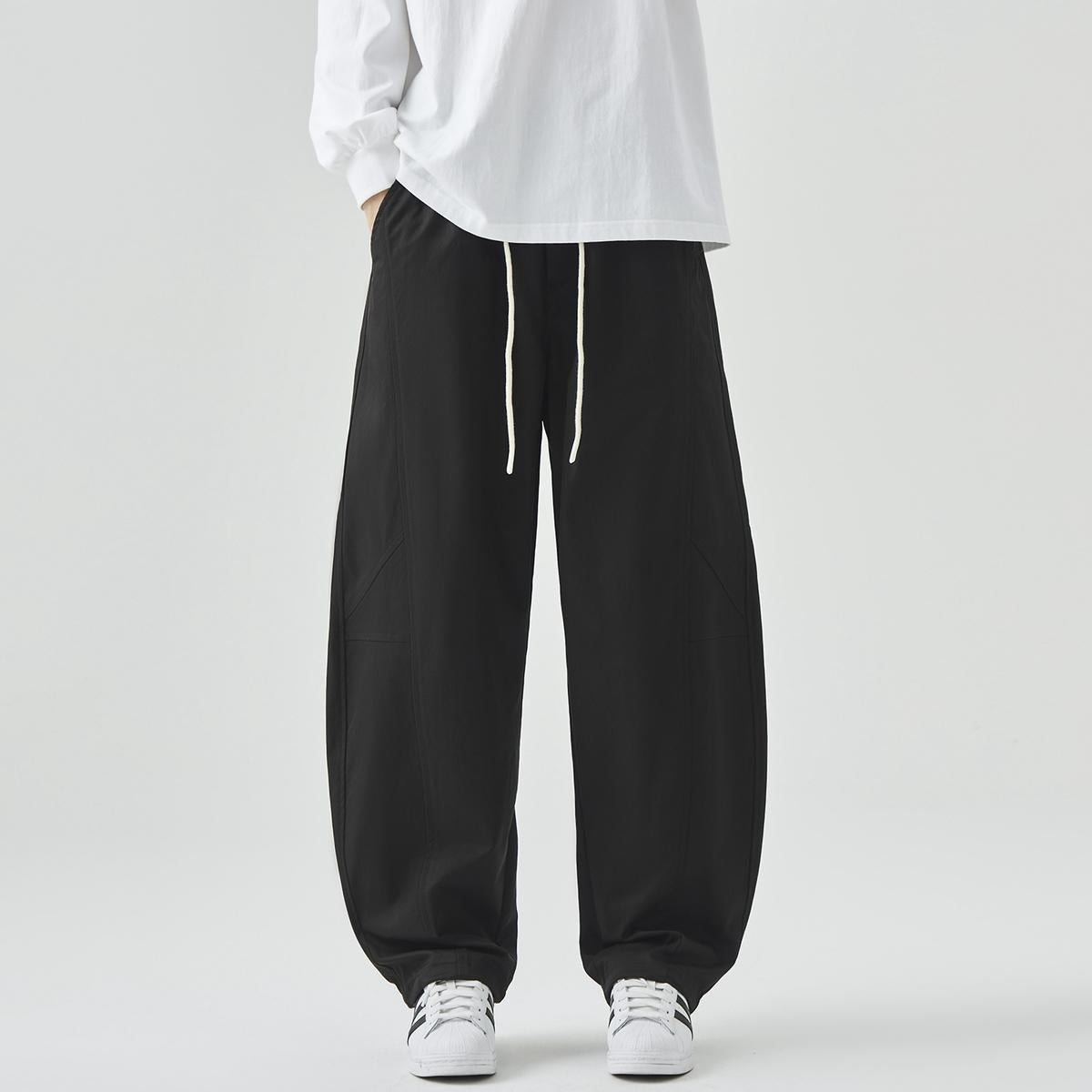 【YS2358】潮牌大彎刀包容性強寬鬆鬆緊腰休閒褲(配腰繩)