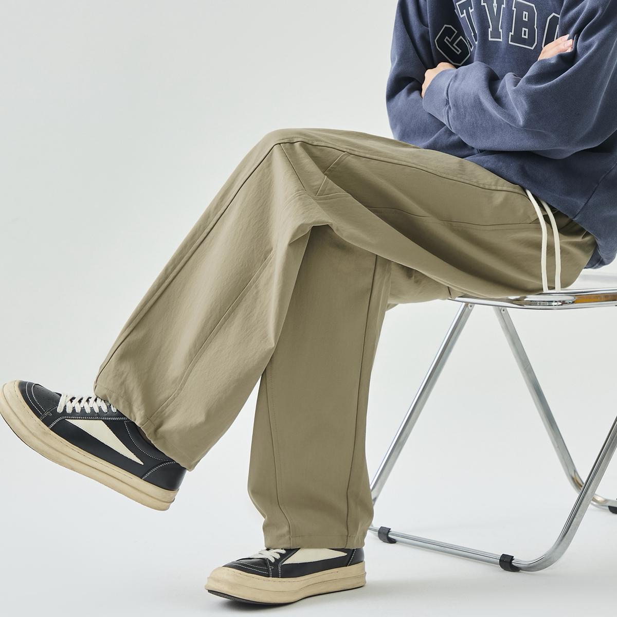 【YS2359】2025新款休閒褲褶皺側條紋華棉衛褲男休閒褲
