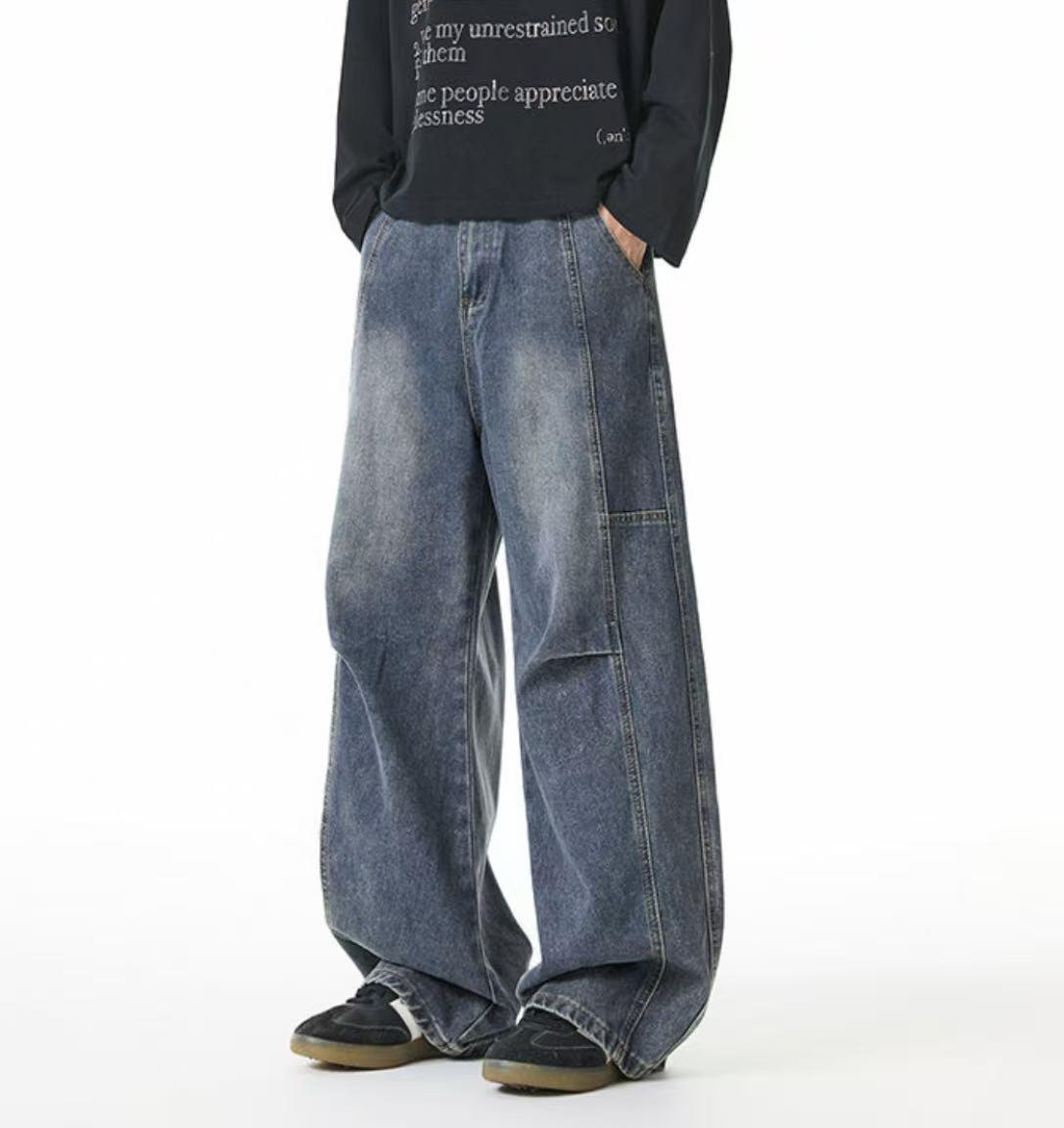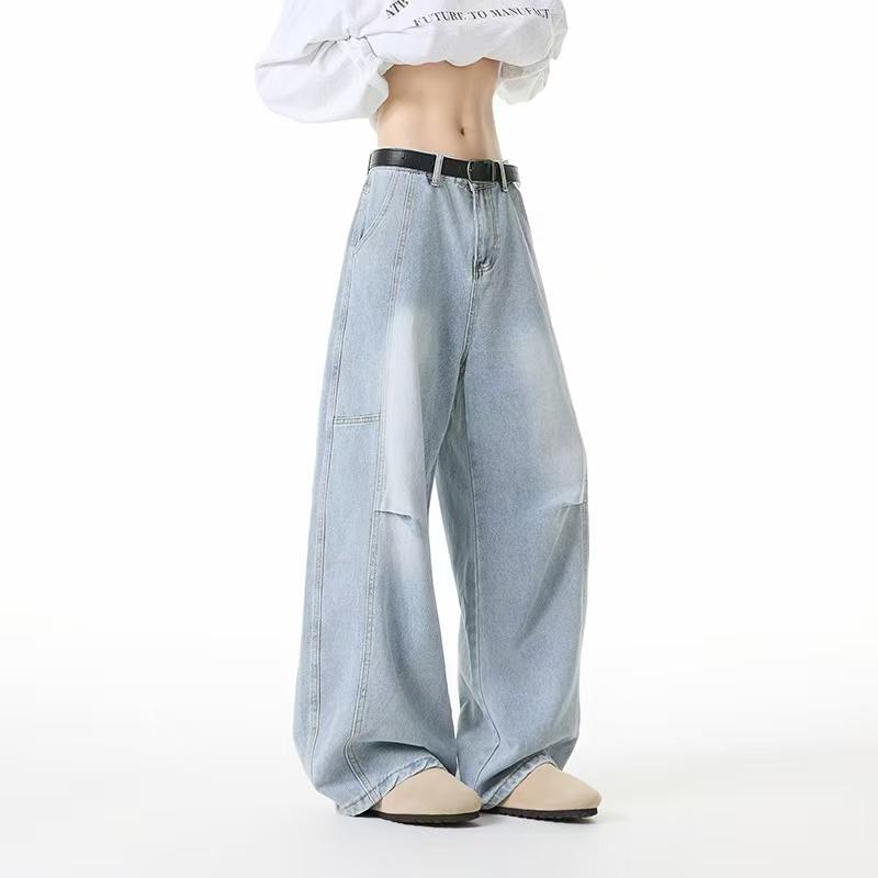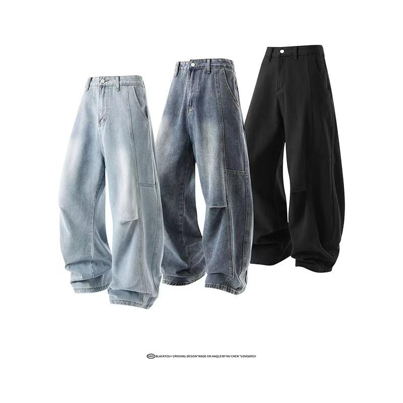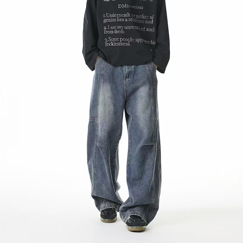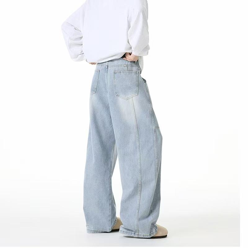 【YS2363】美式復古慵懶水洗潮流直筒休閒牛仔褲