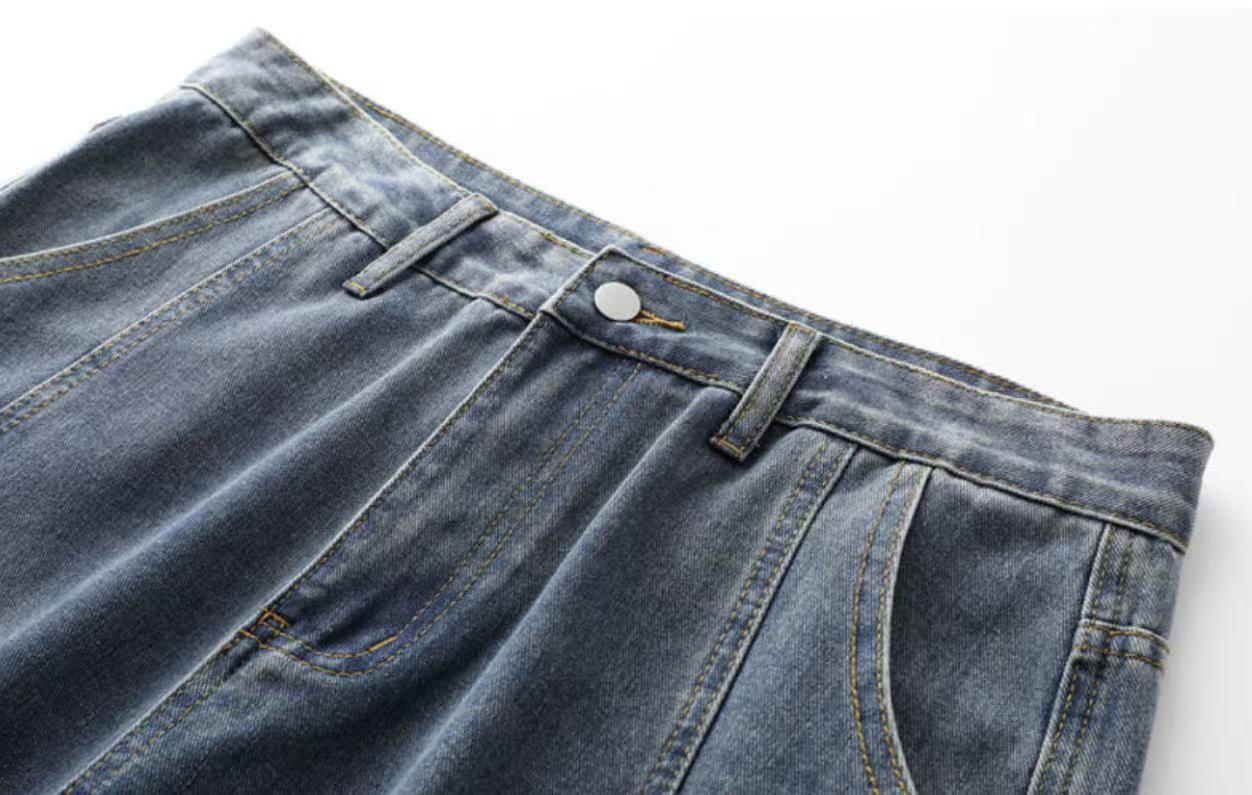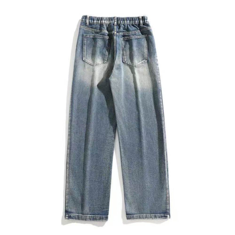 【YS2366】美式復古水洗做舊直筒牛仔褲