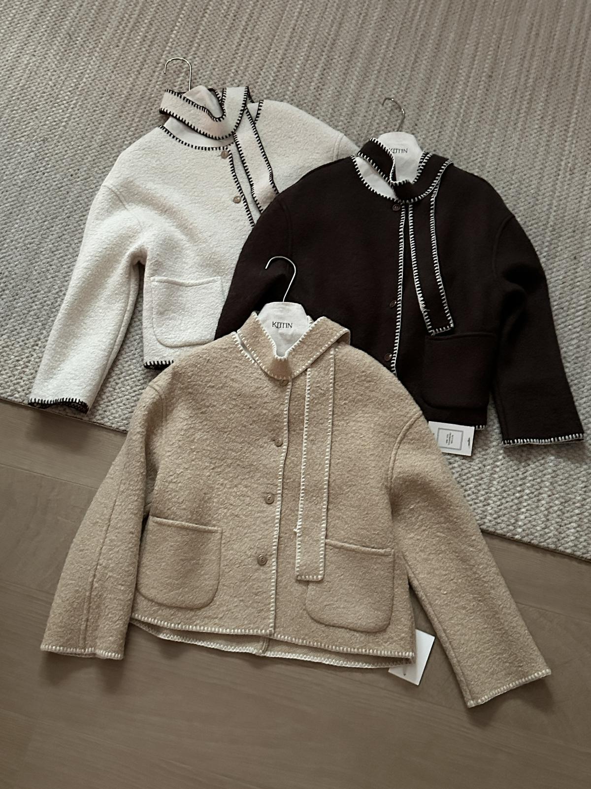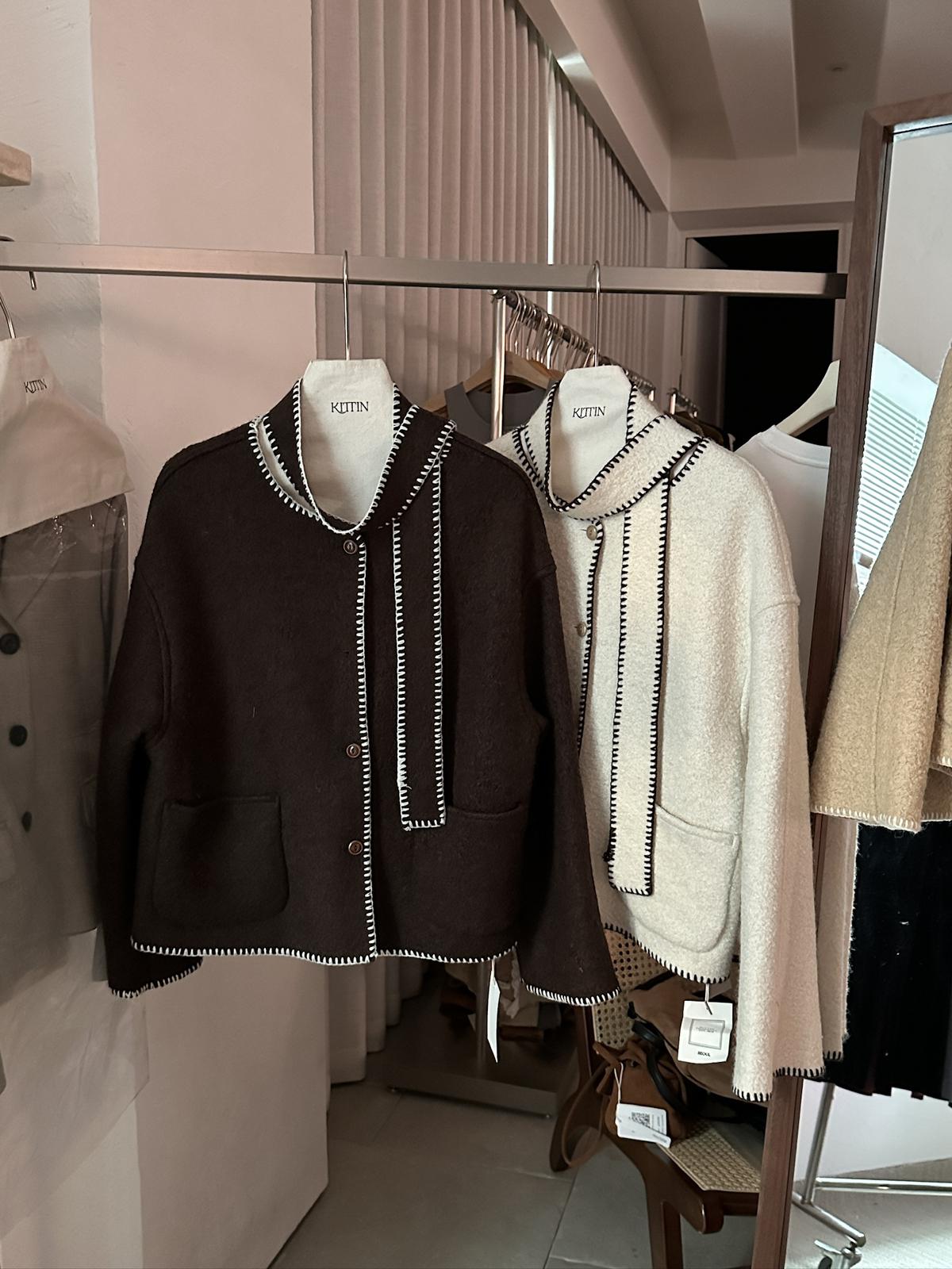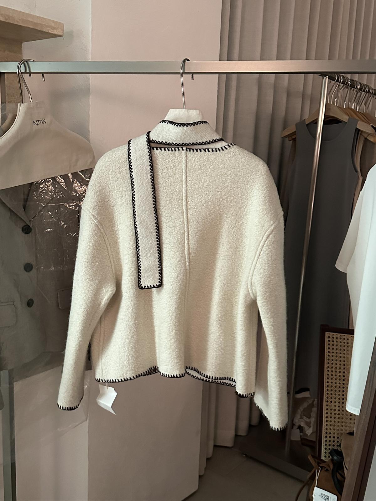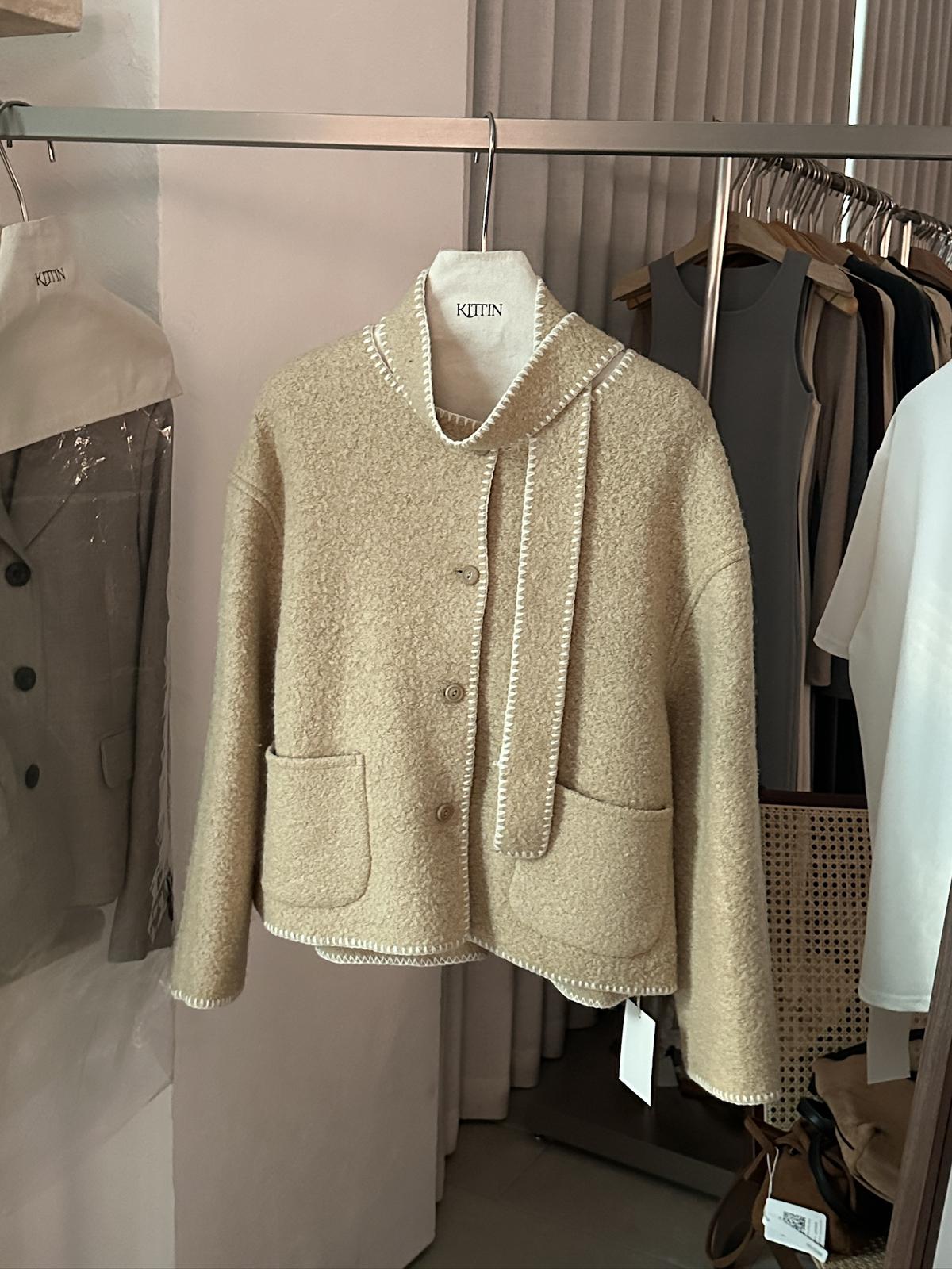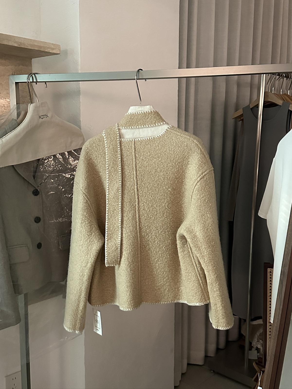 3. 【C7456】韓系小香風肌理感毛呢料短外套(配飄帶)